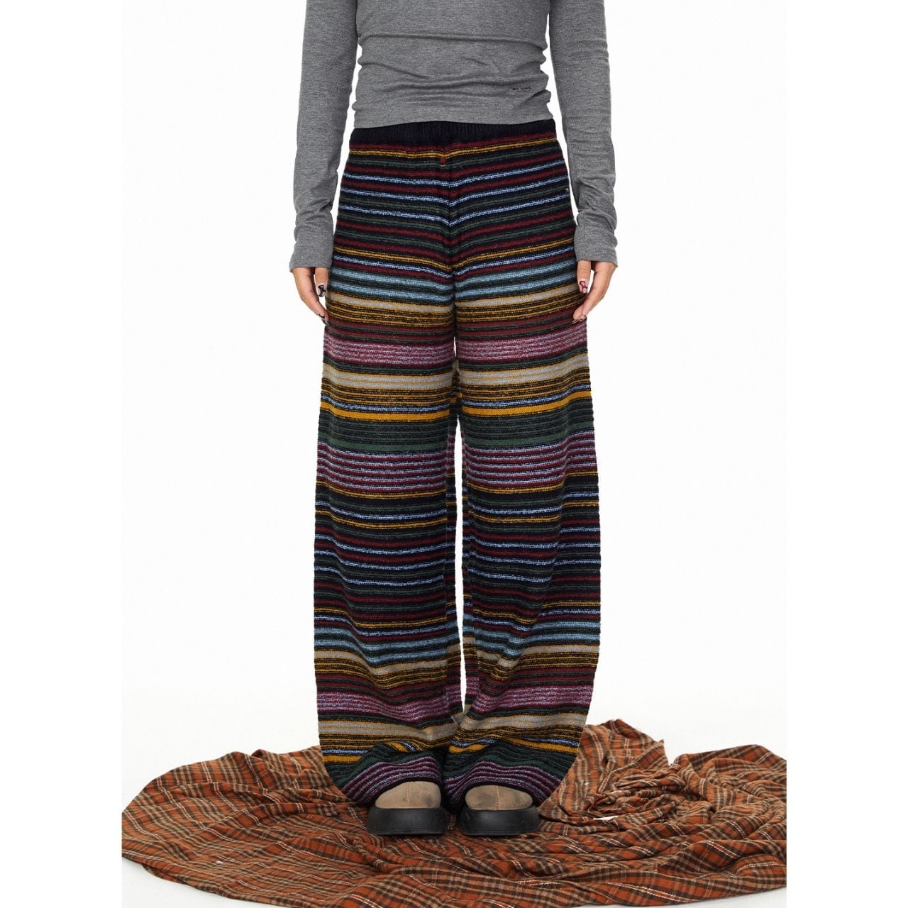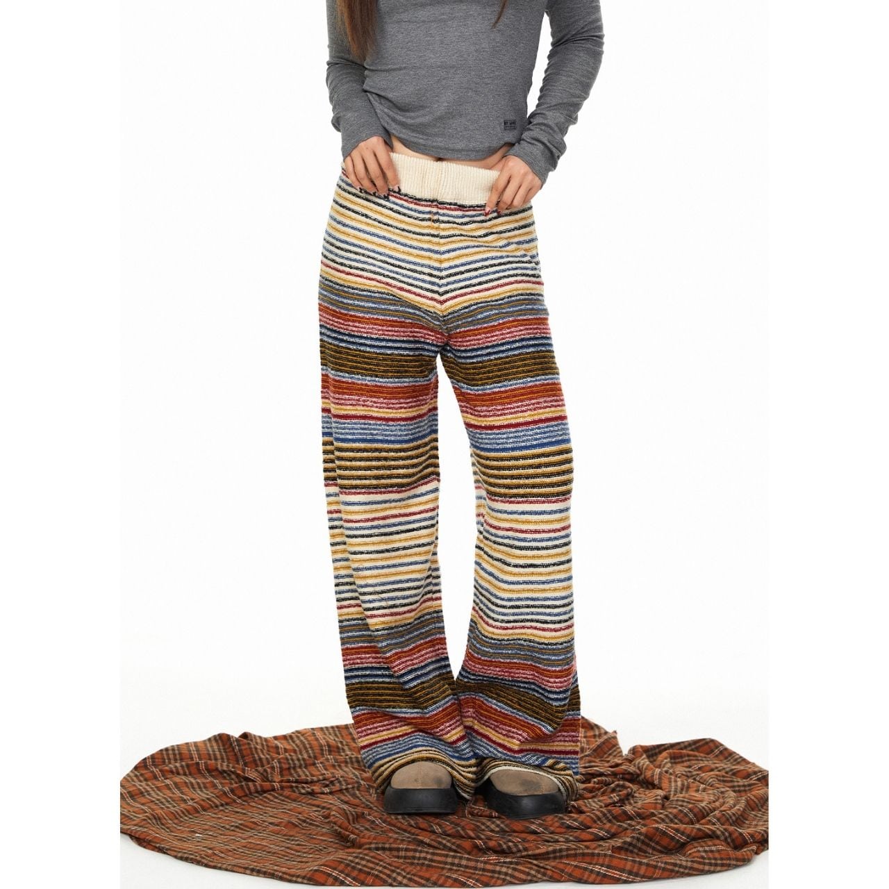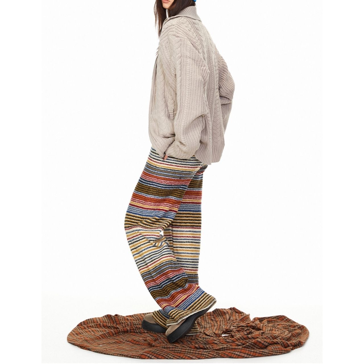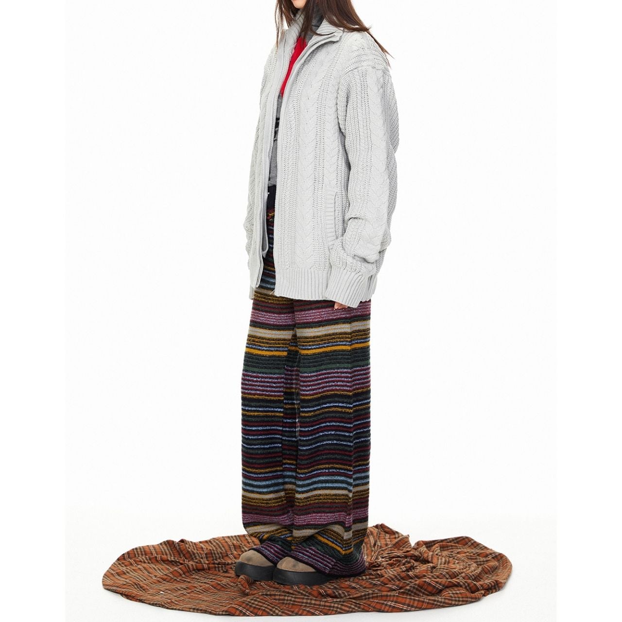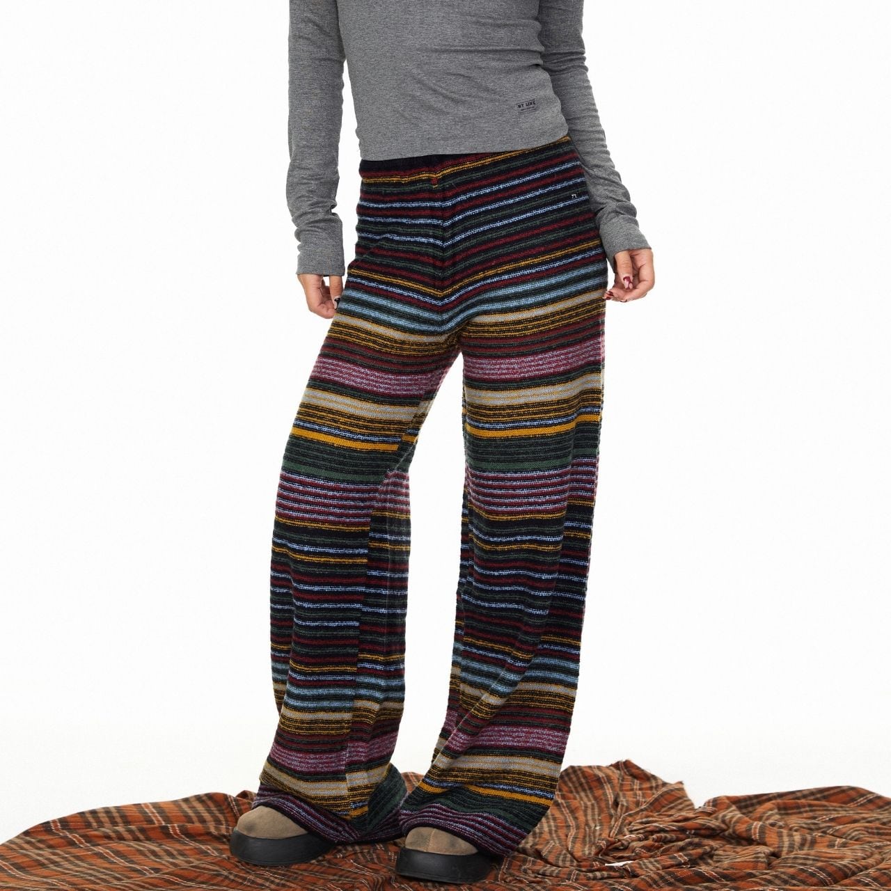 カラフルなボーダーが視線を引き寄せる、主役級ワイドパンツ。