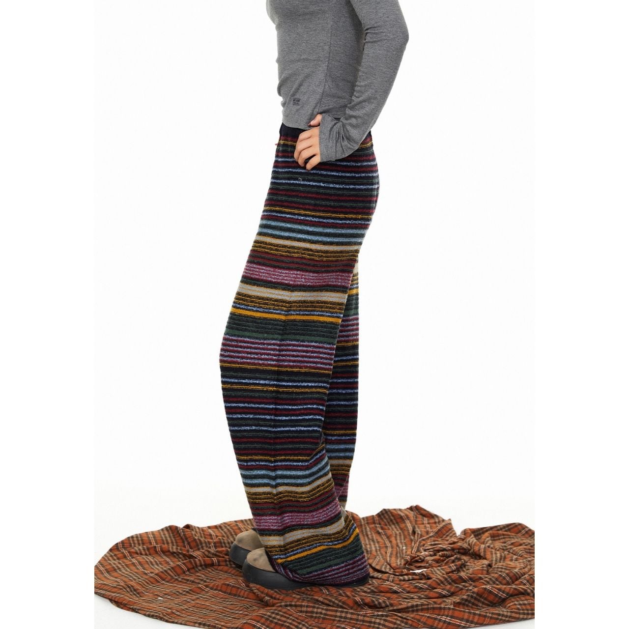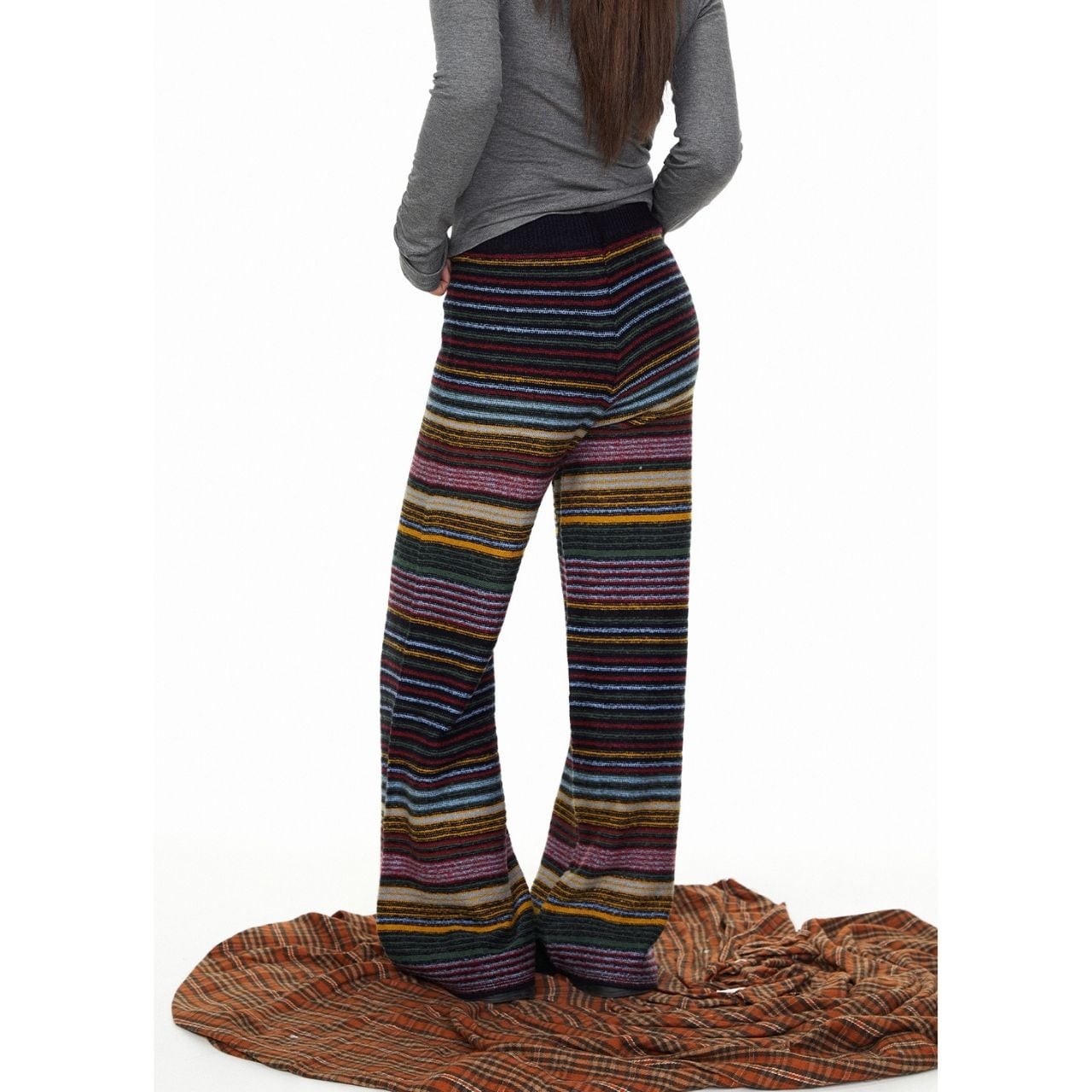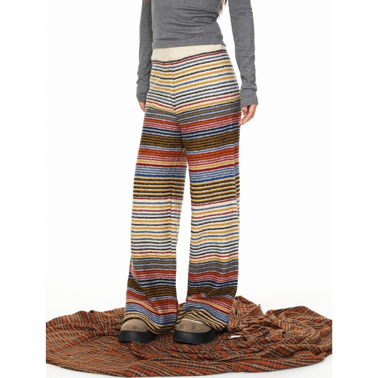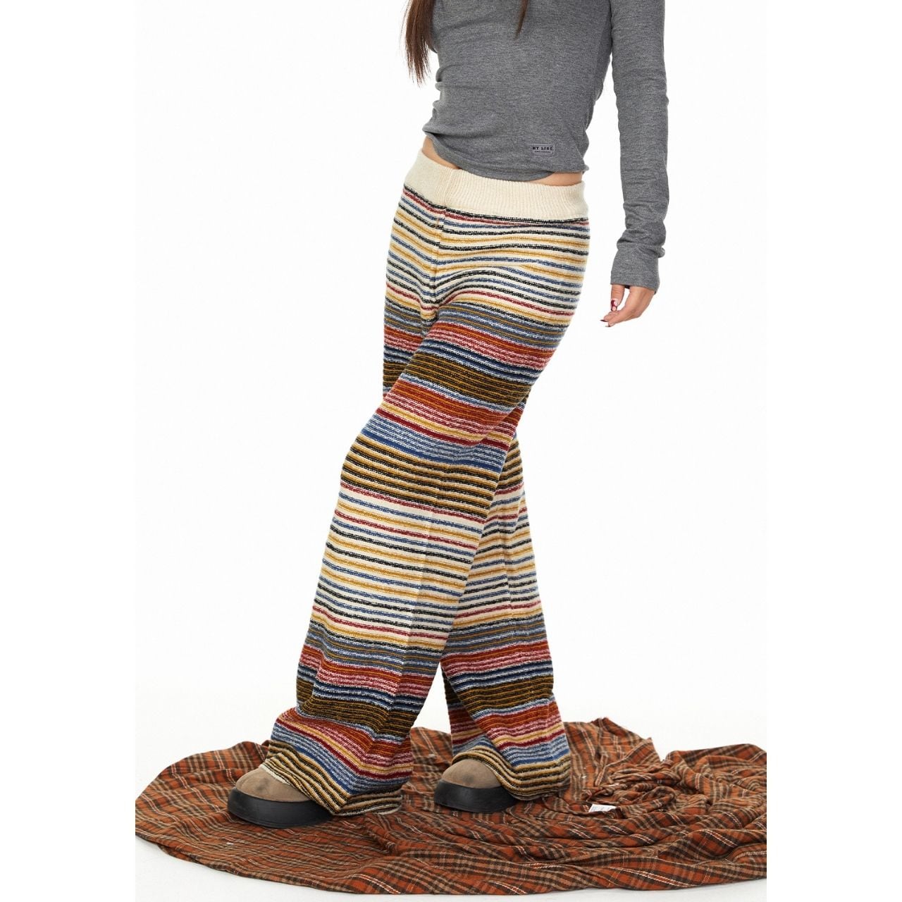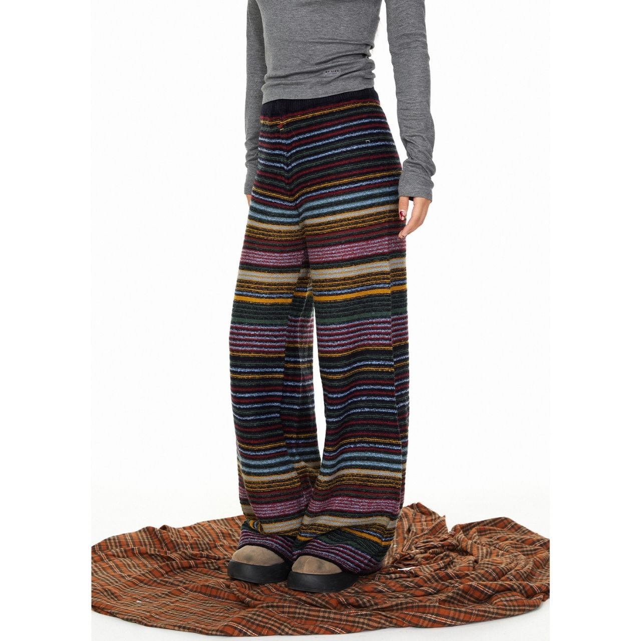 カラフルなボーダーが視線を引き寄せる、主役級ワイドパンツ。