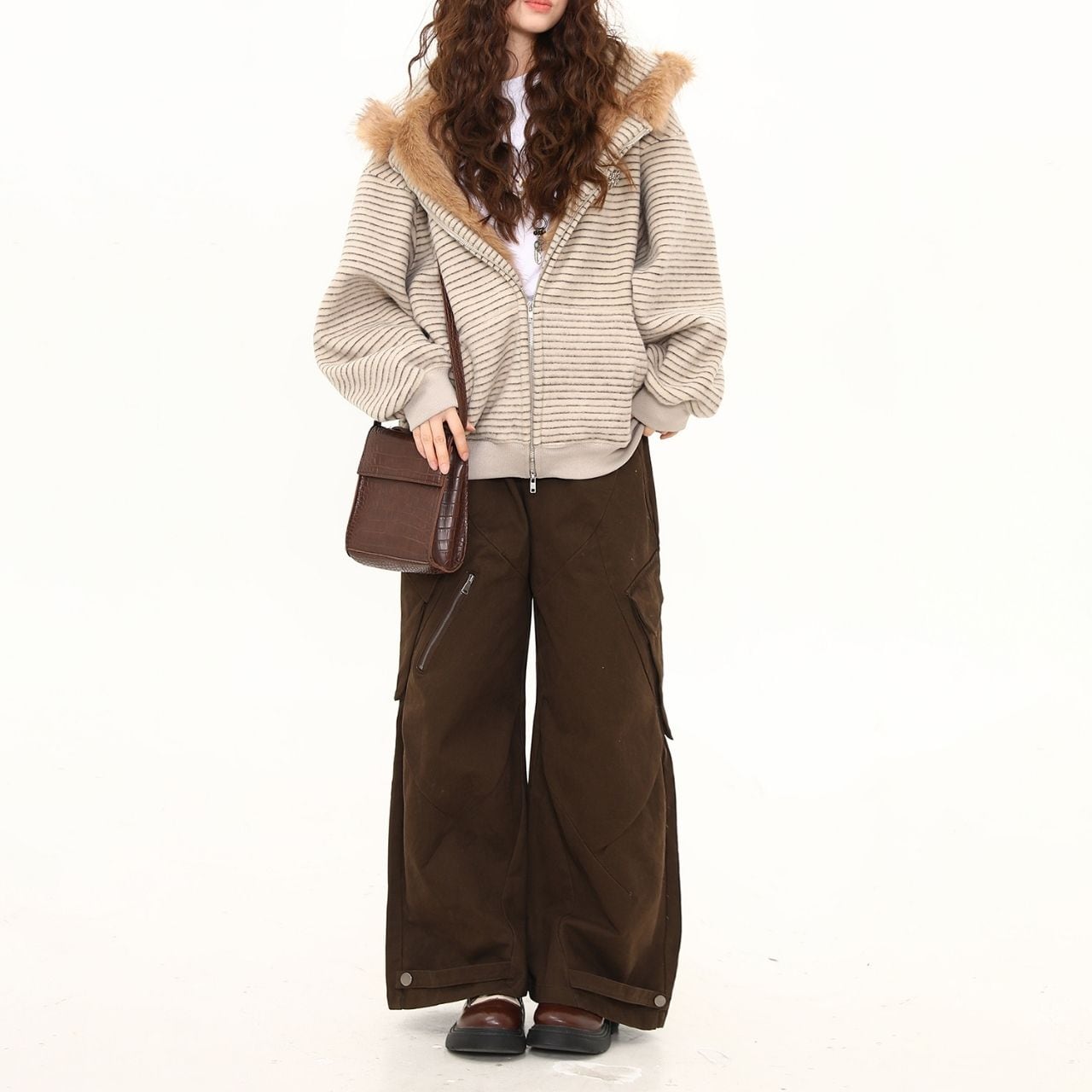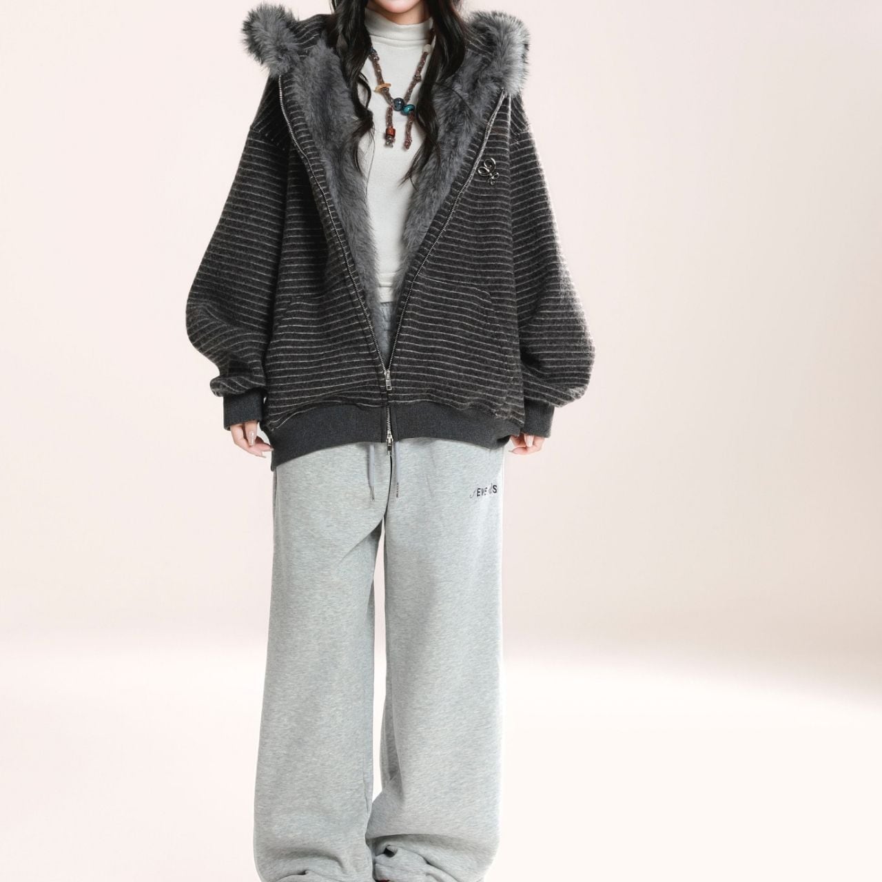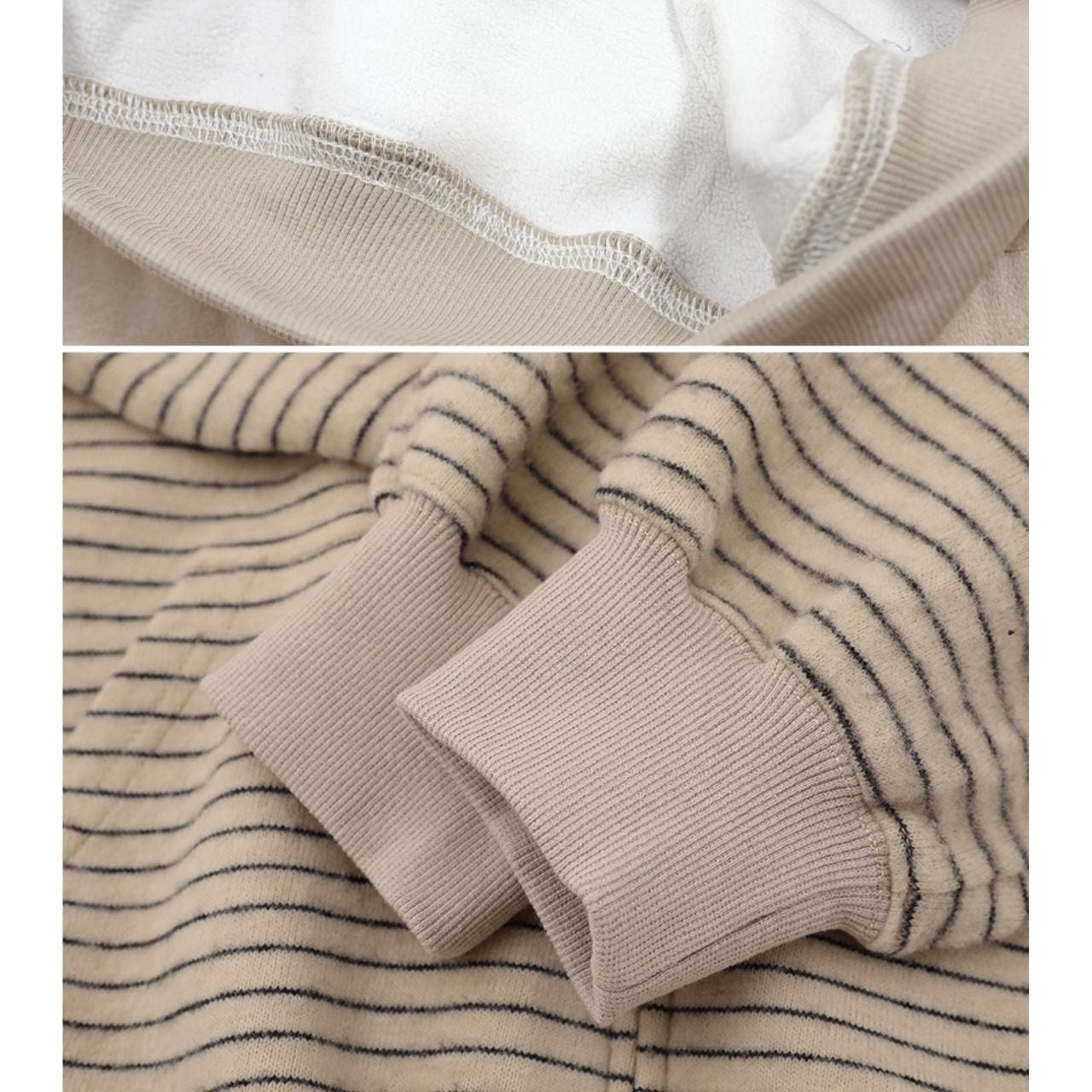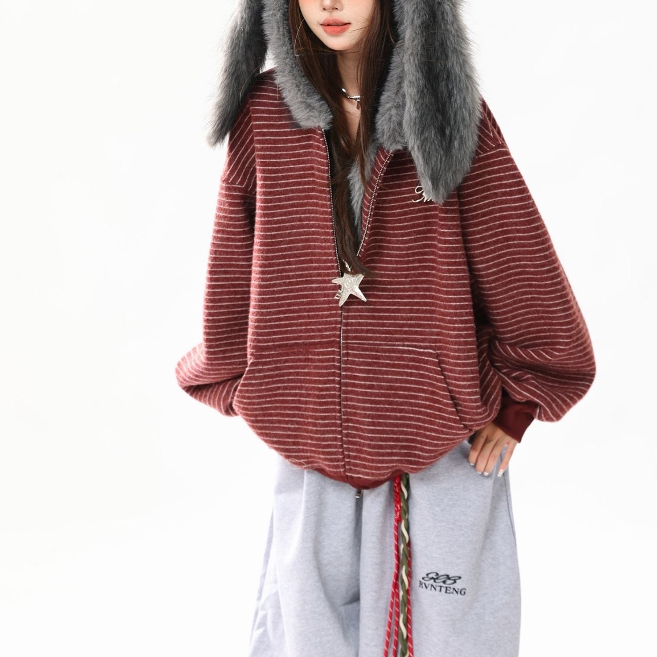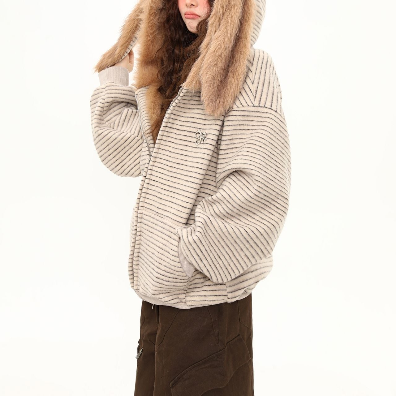 うさ耳フードがワンポイントのポップなボーダージップパーカー。