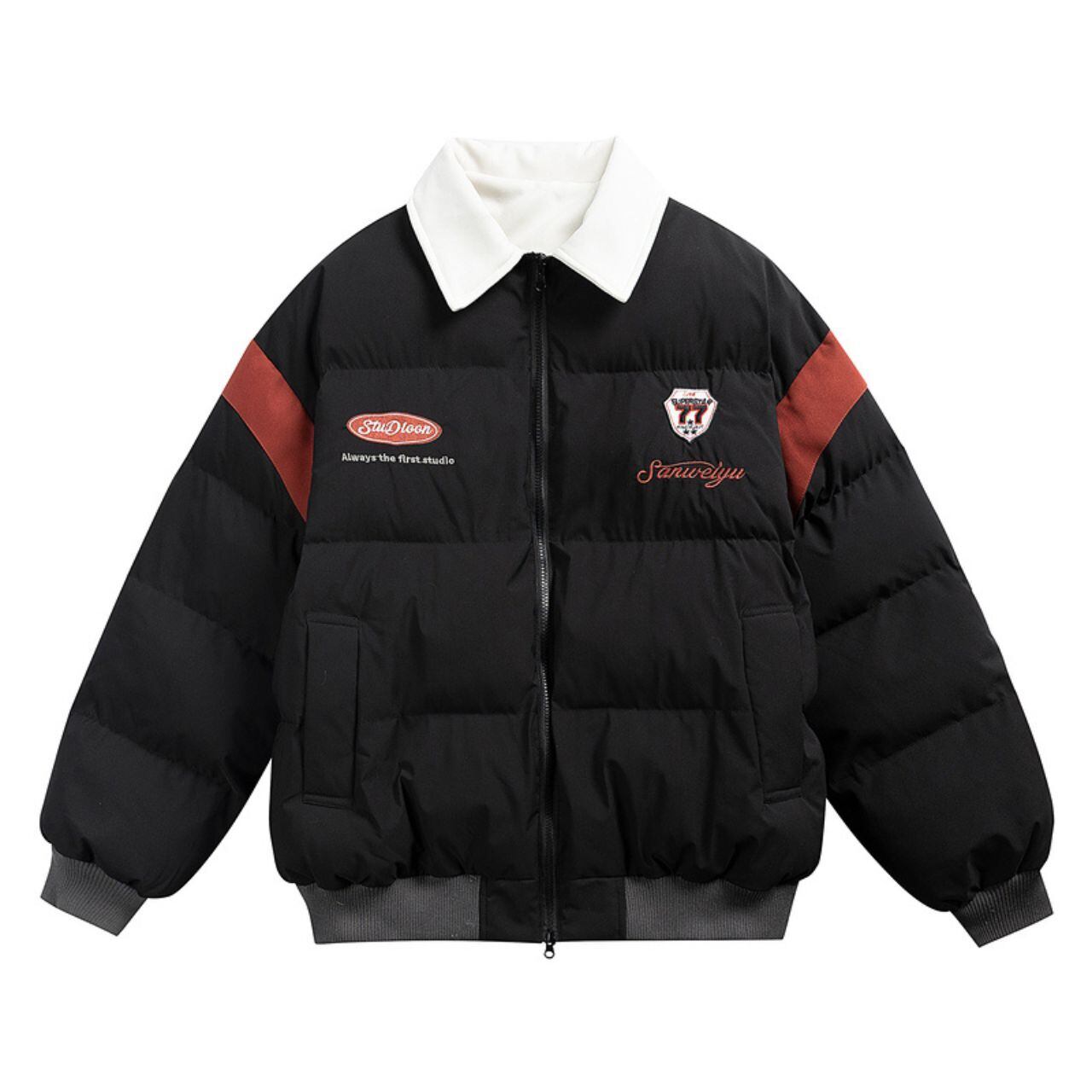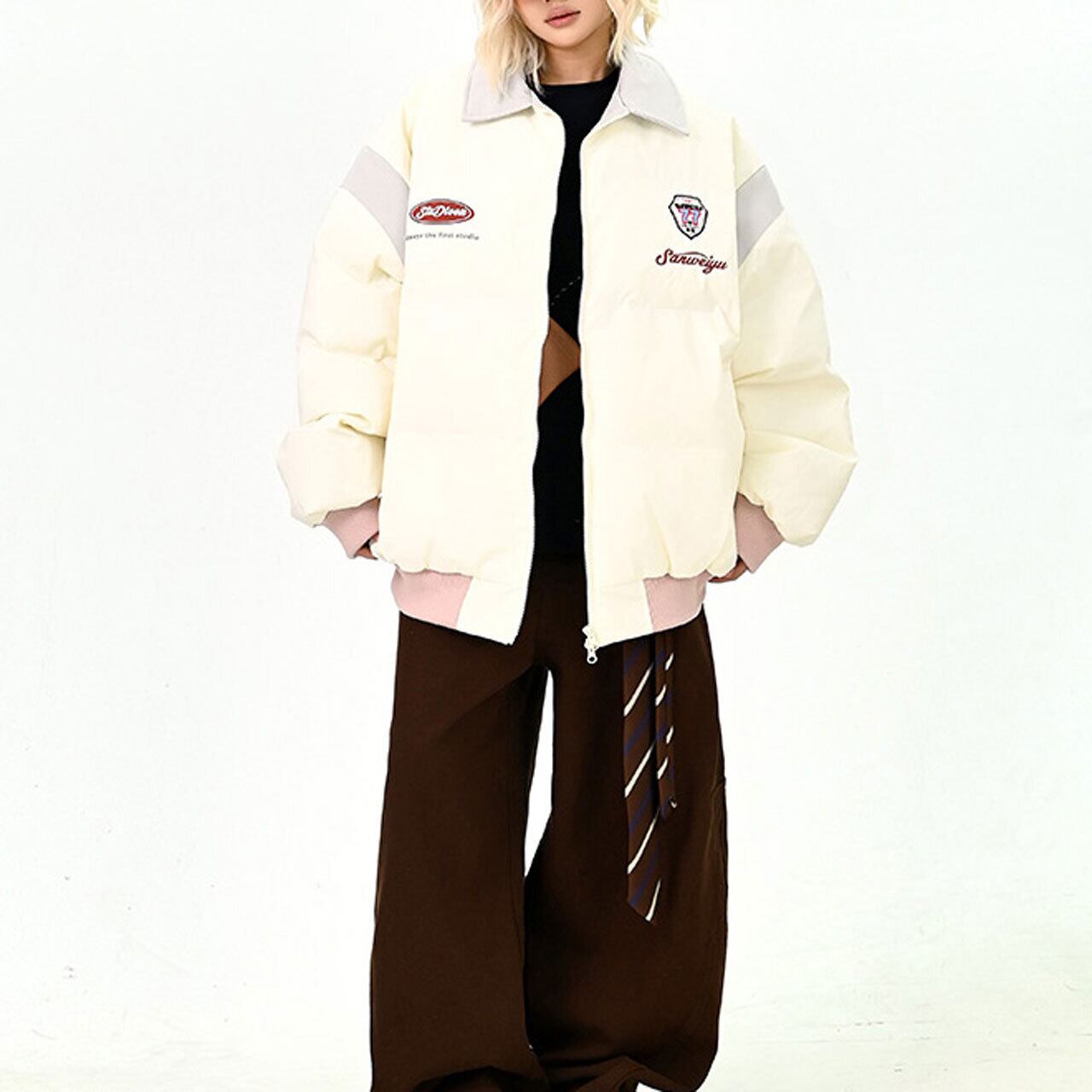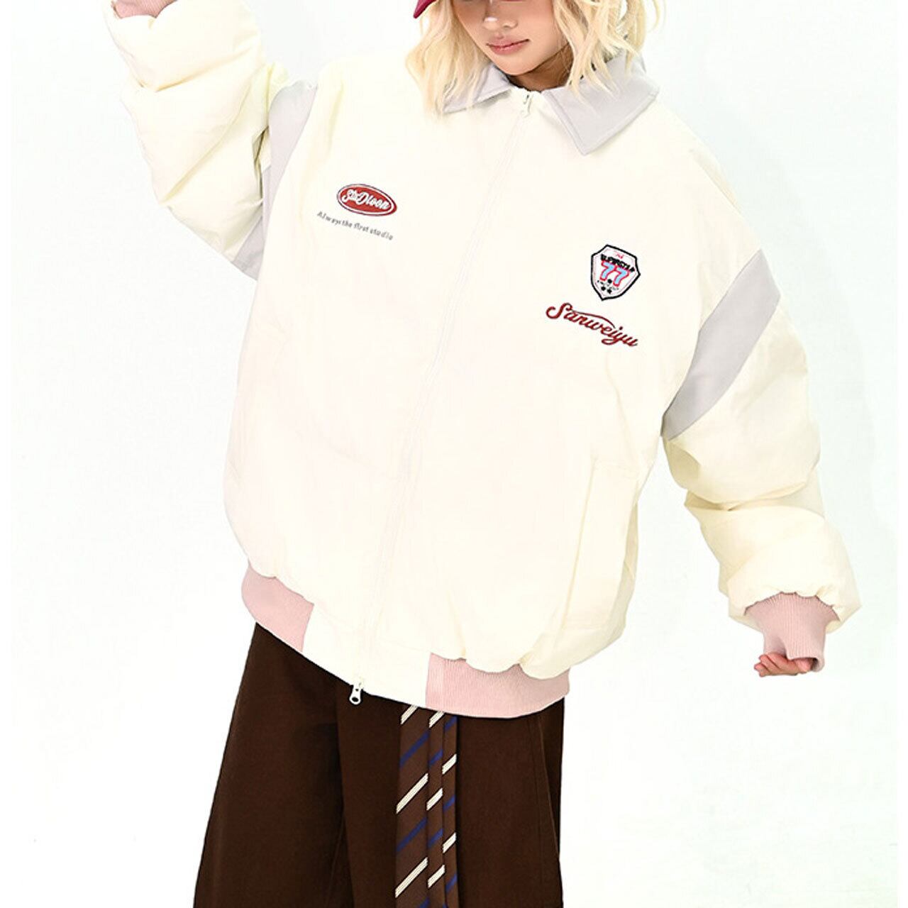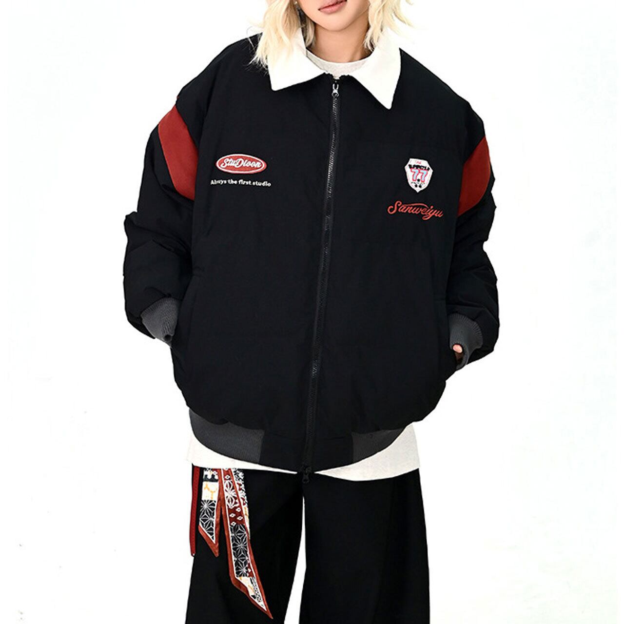 フロントのワッペンデザインが映えるストリートムード満点の1枚。