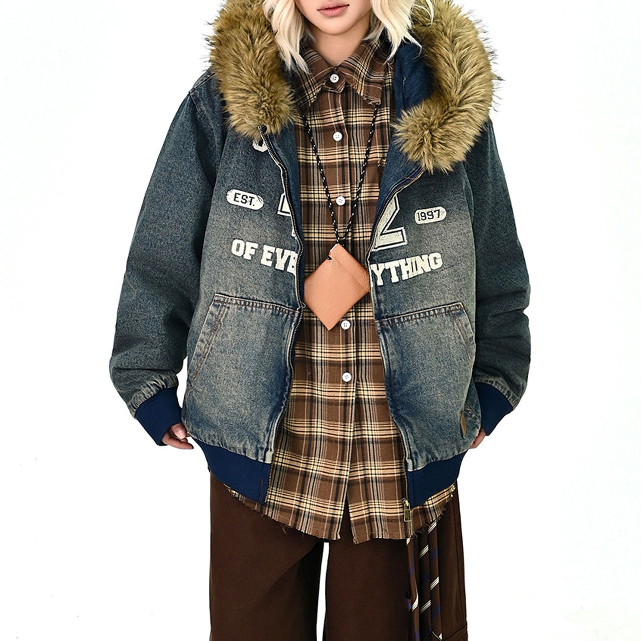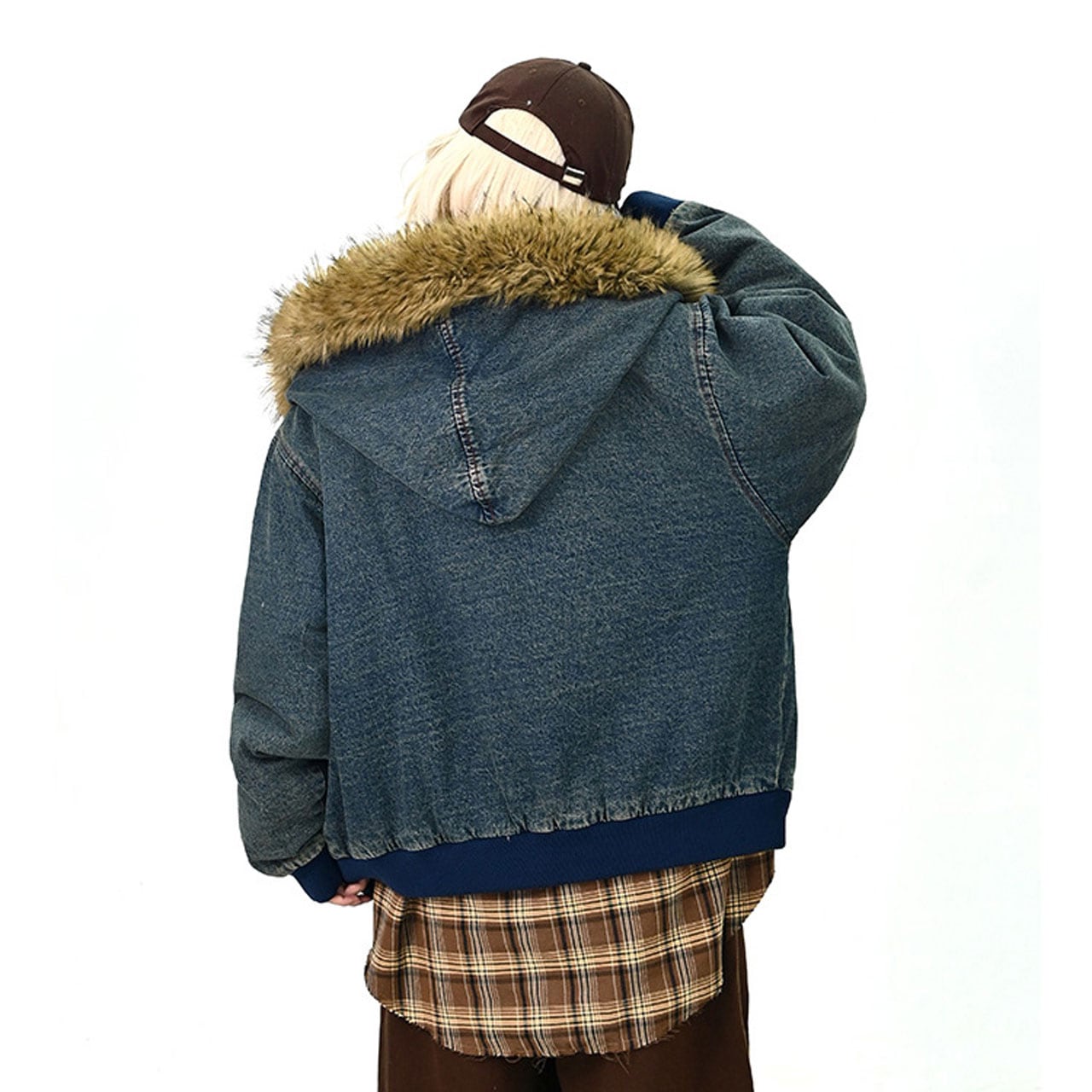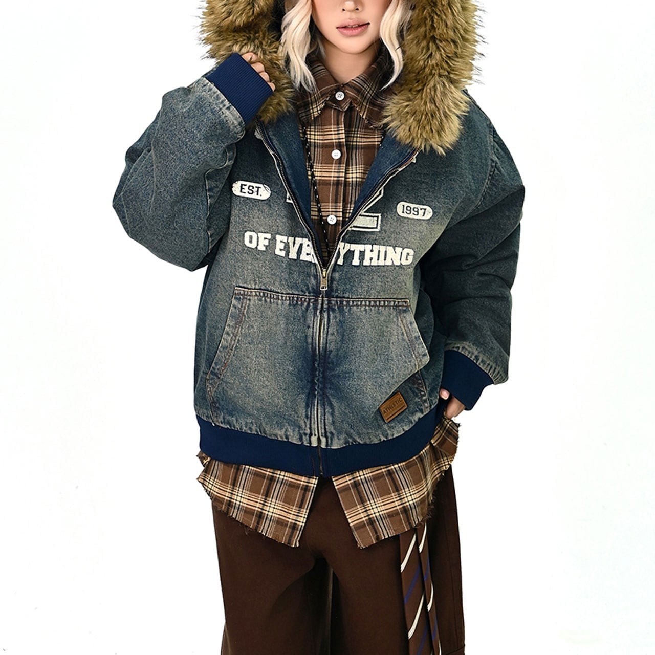 デニムライクロゴボリュームフードブルゾン 1col R01249