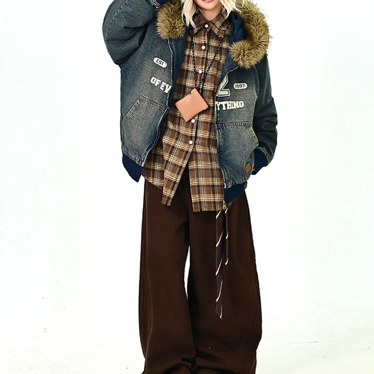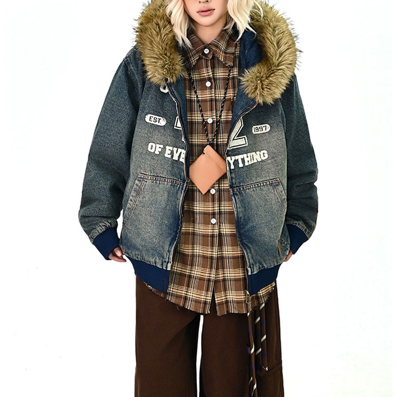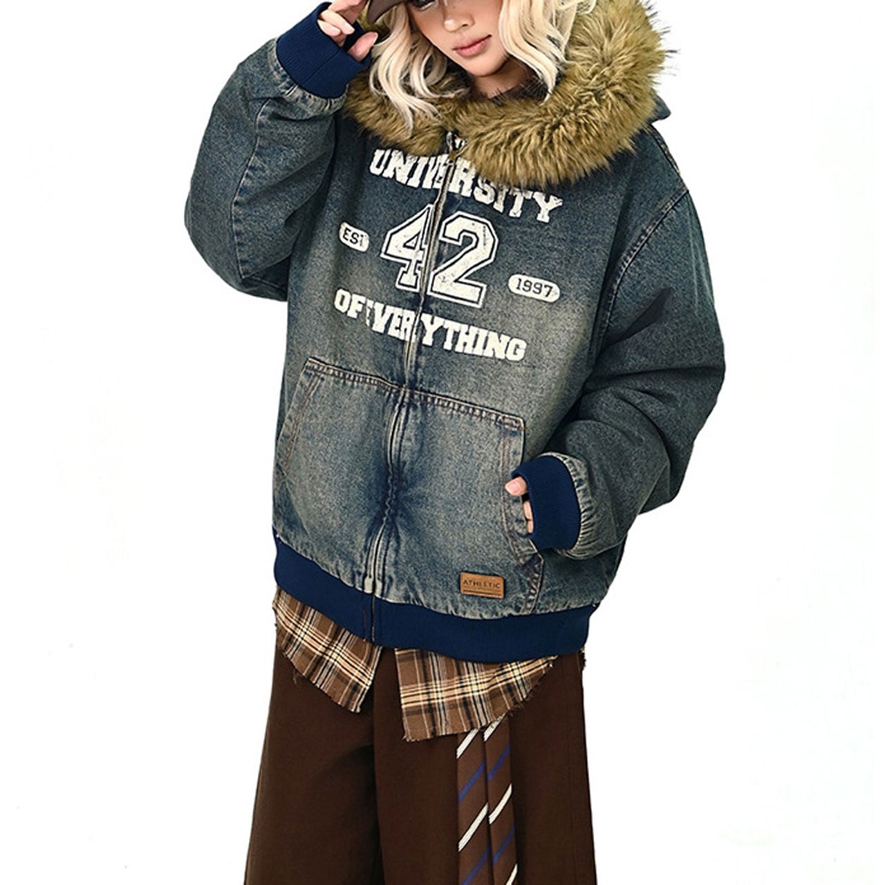 デニムライクロゴボリュームフードブルゾン 1col R01249
