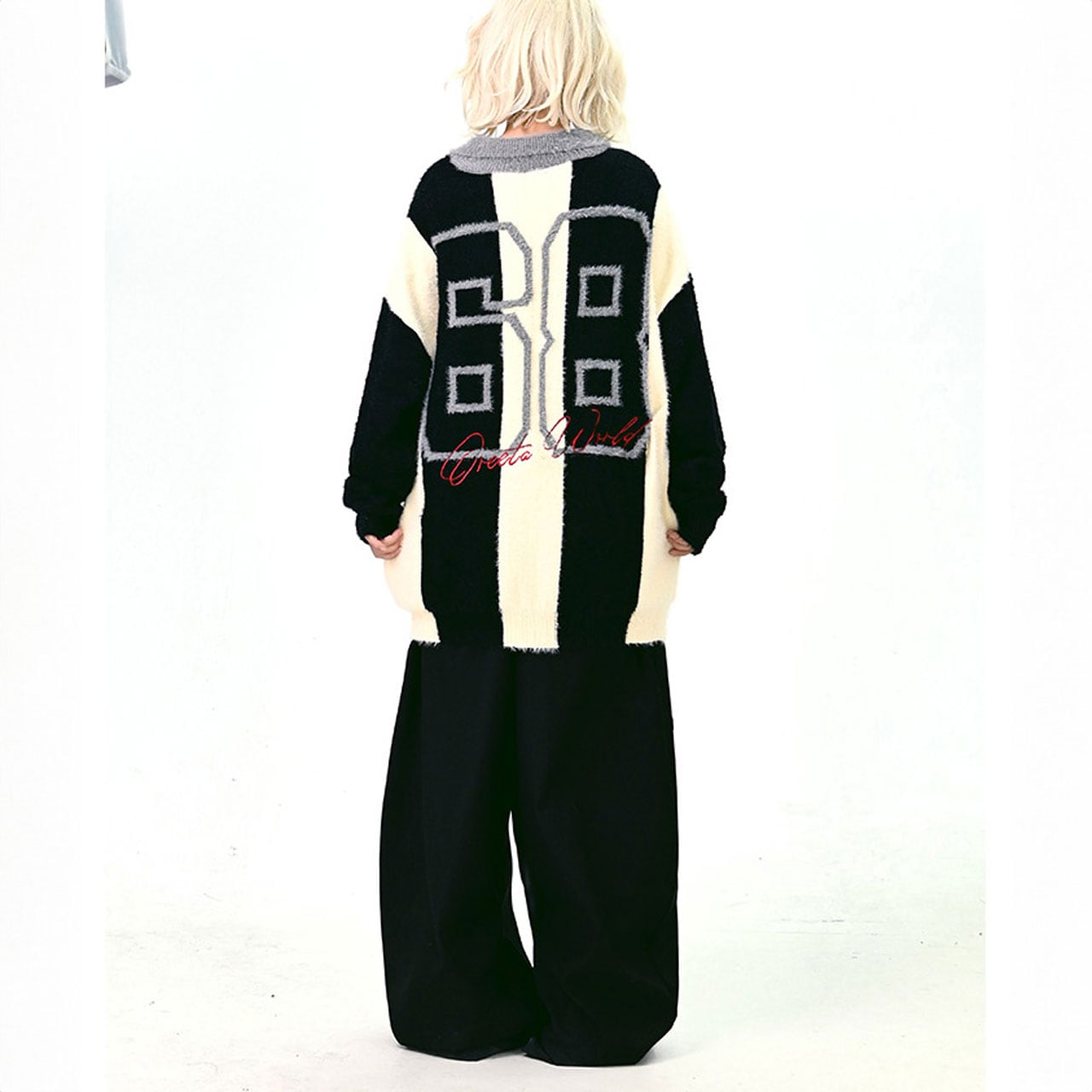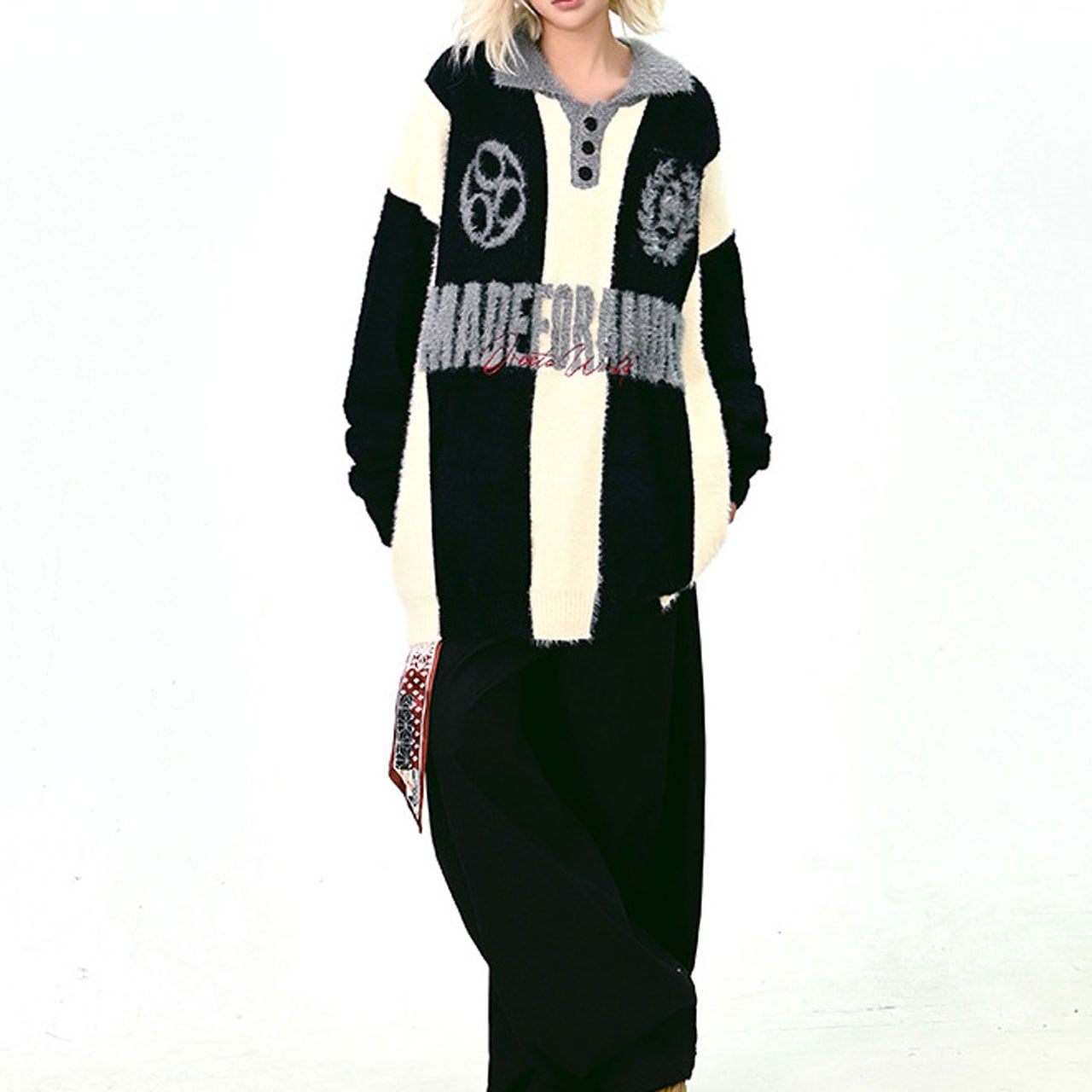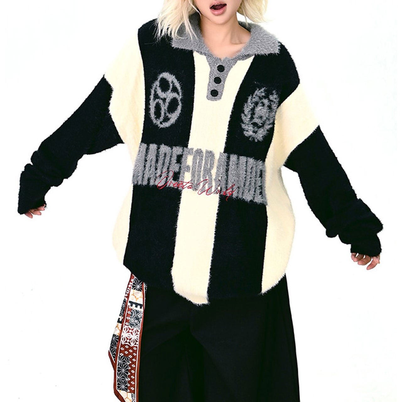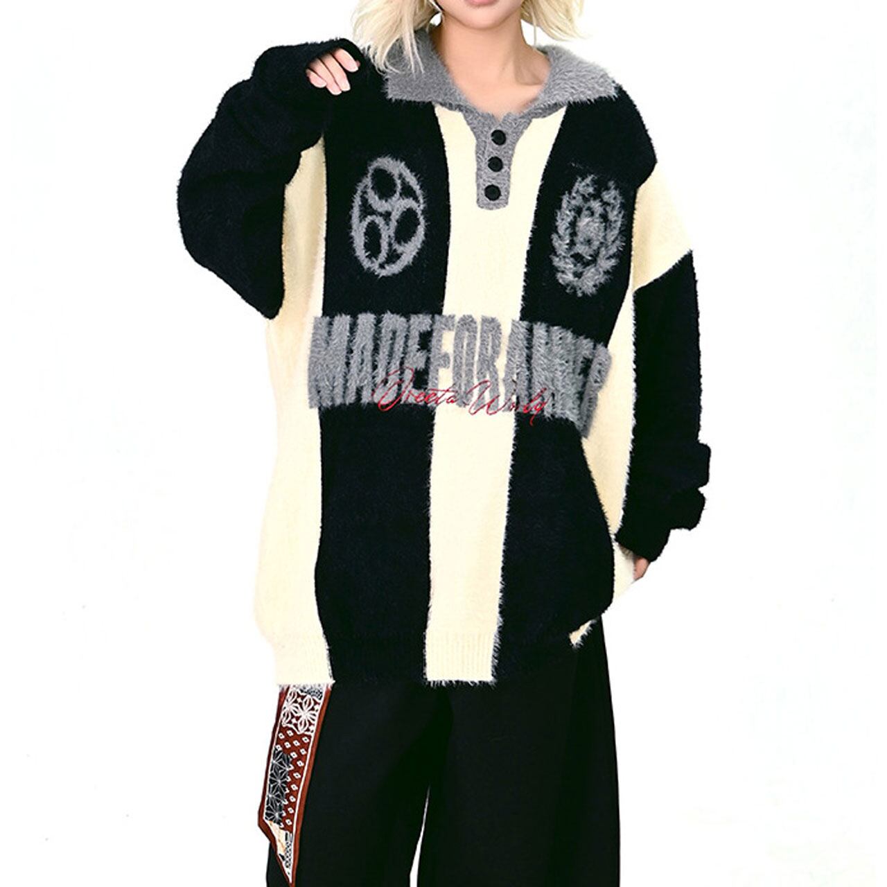 ふわっとした質感と大ぶりの柄が印象的な、キャッチーなデザインニット。