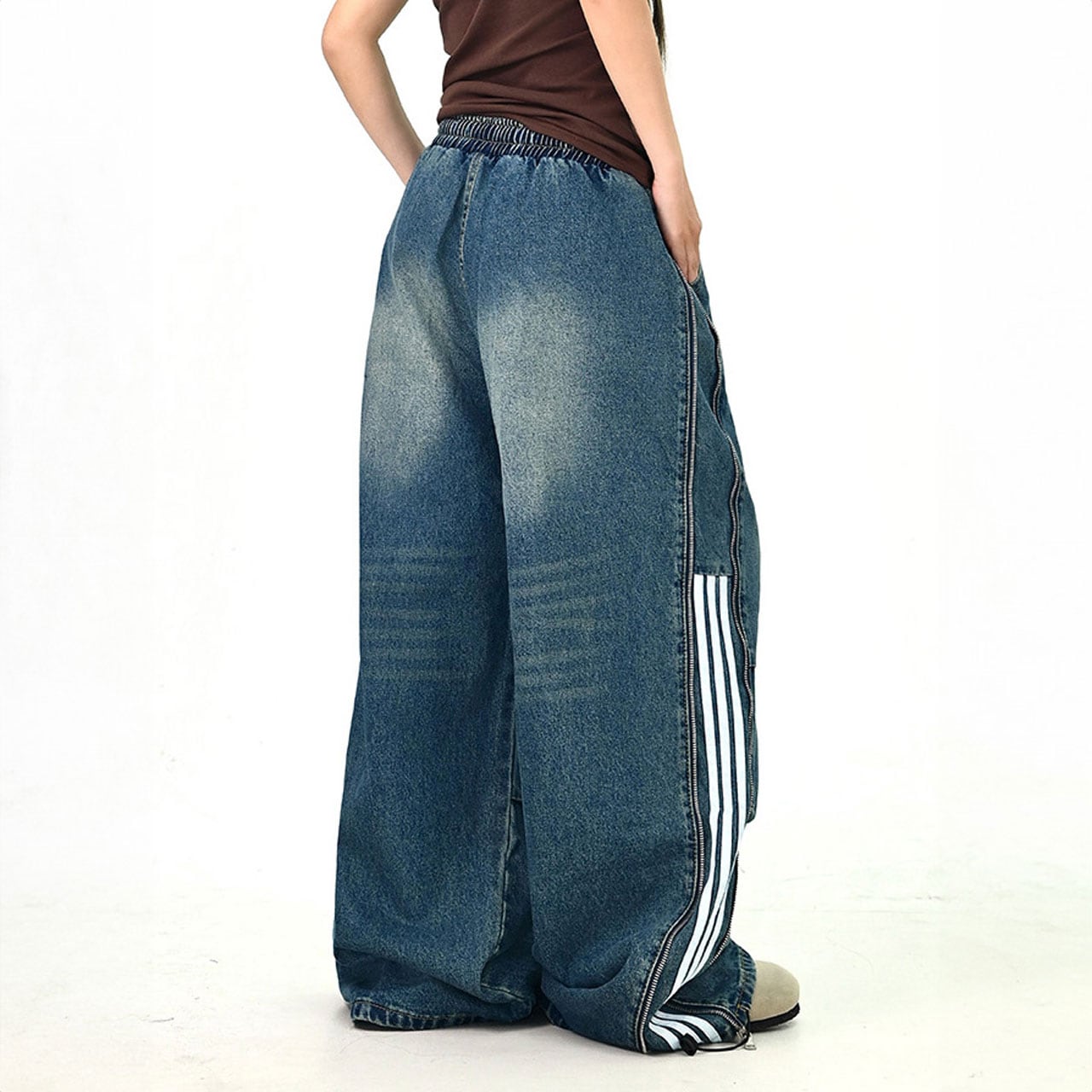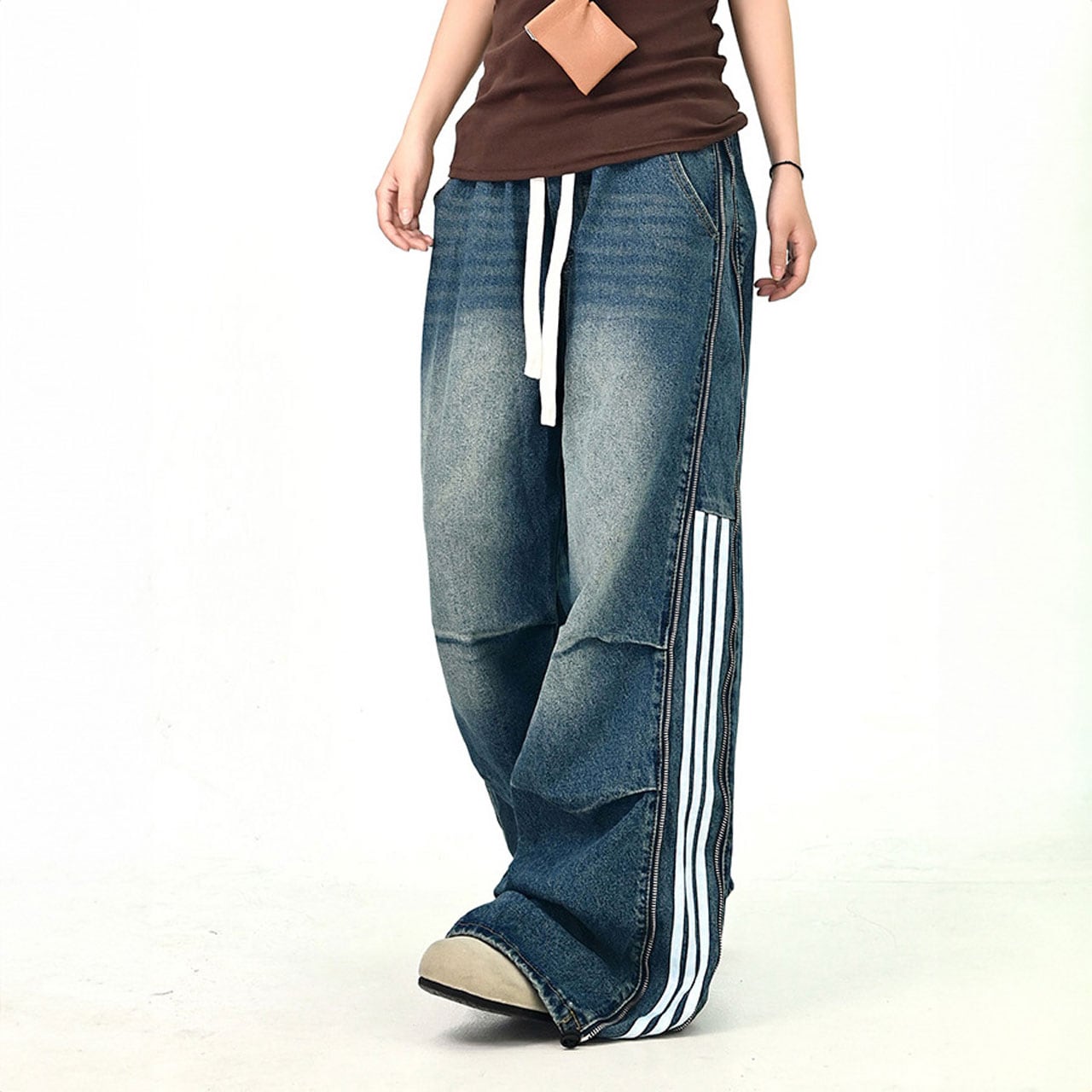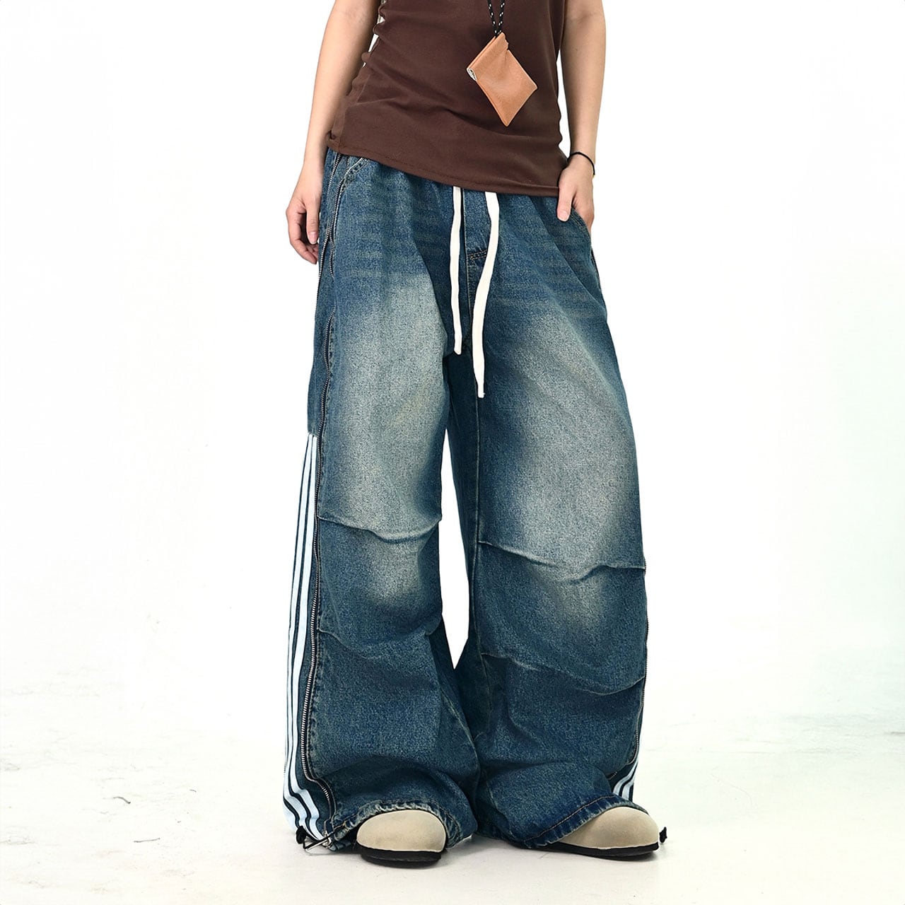 サイドのラインでスポーティさをミックスしたワイドデニム。