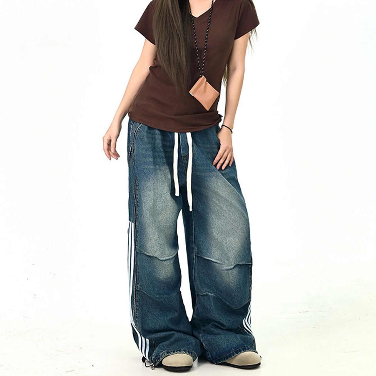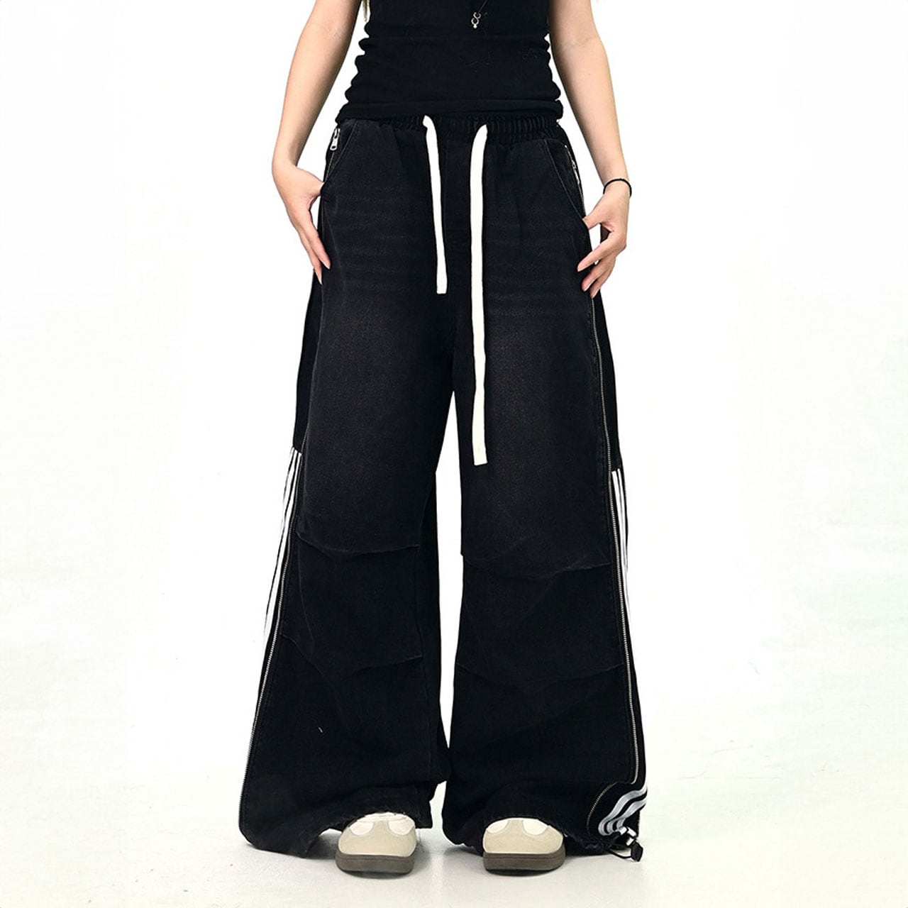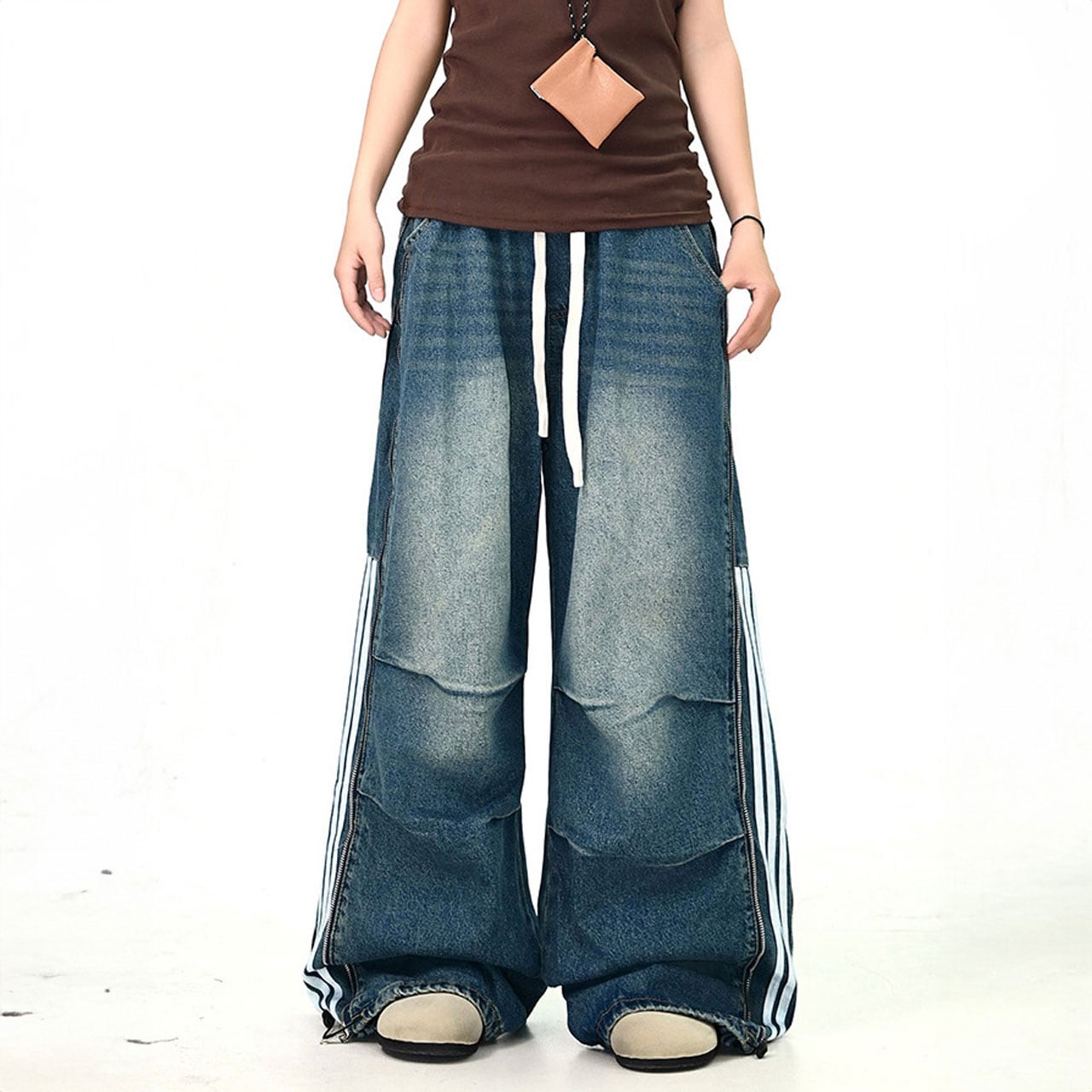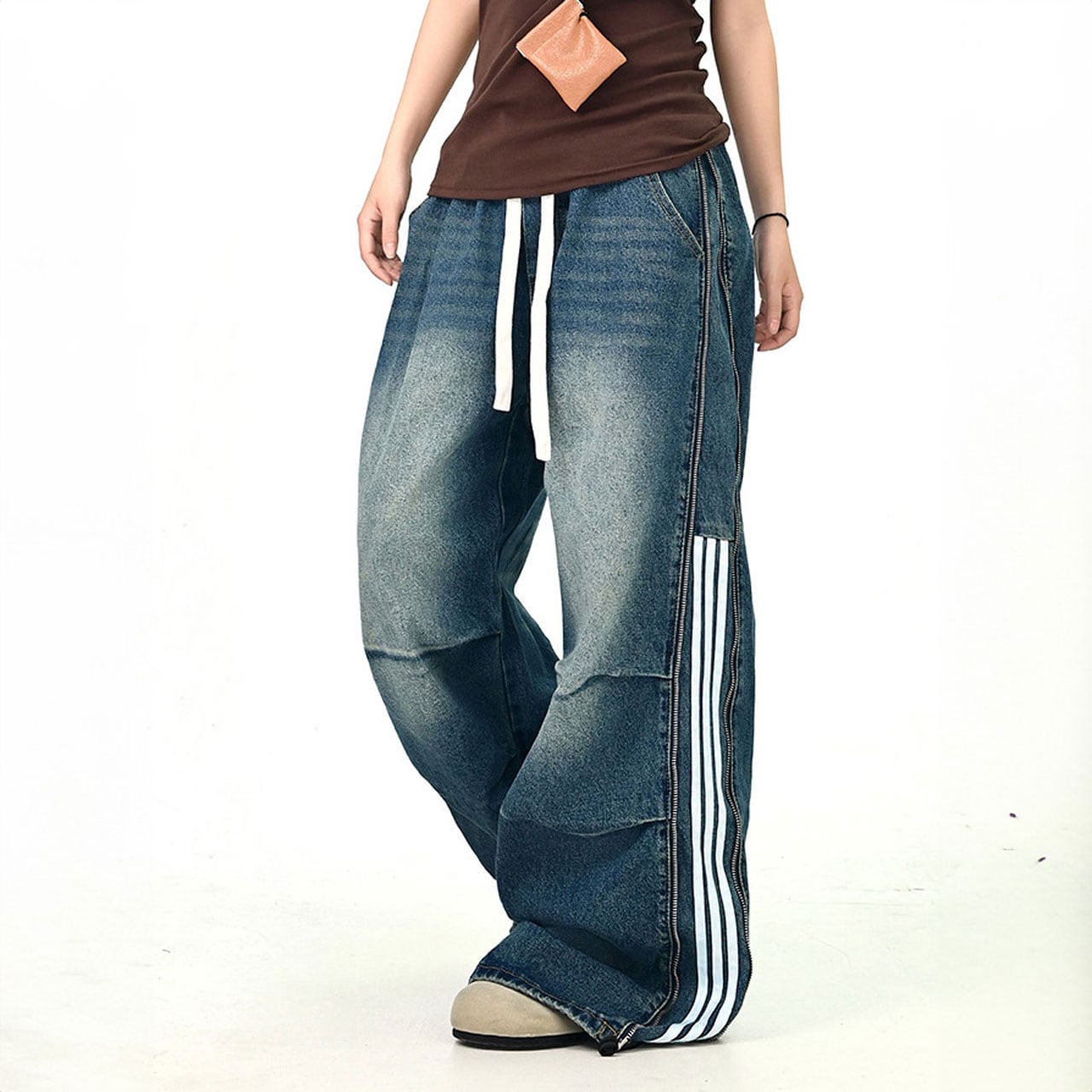サイドのラインでスポーティさをミックスしたワイドデニム。