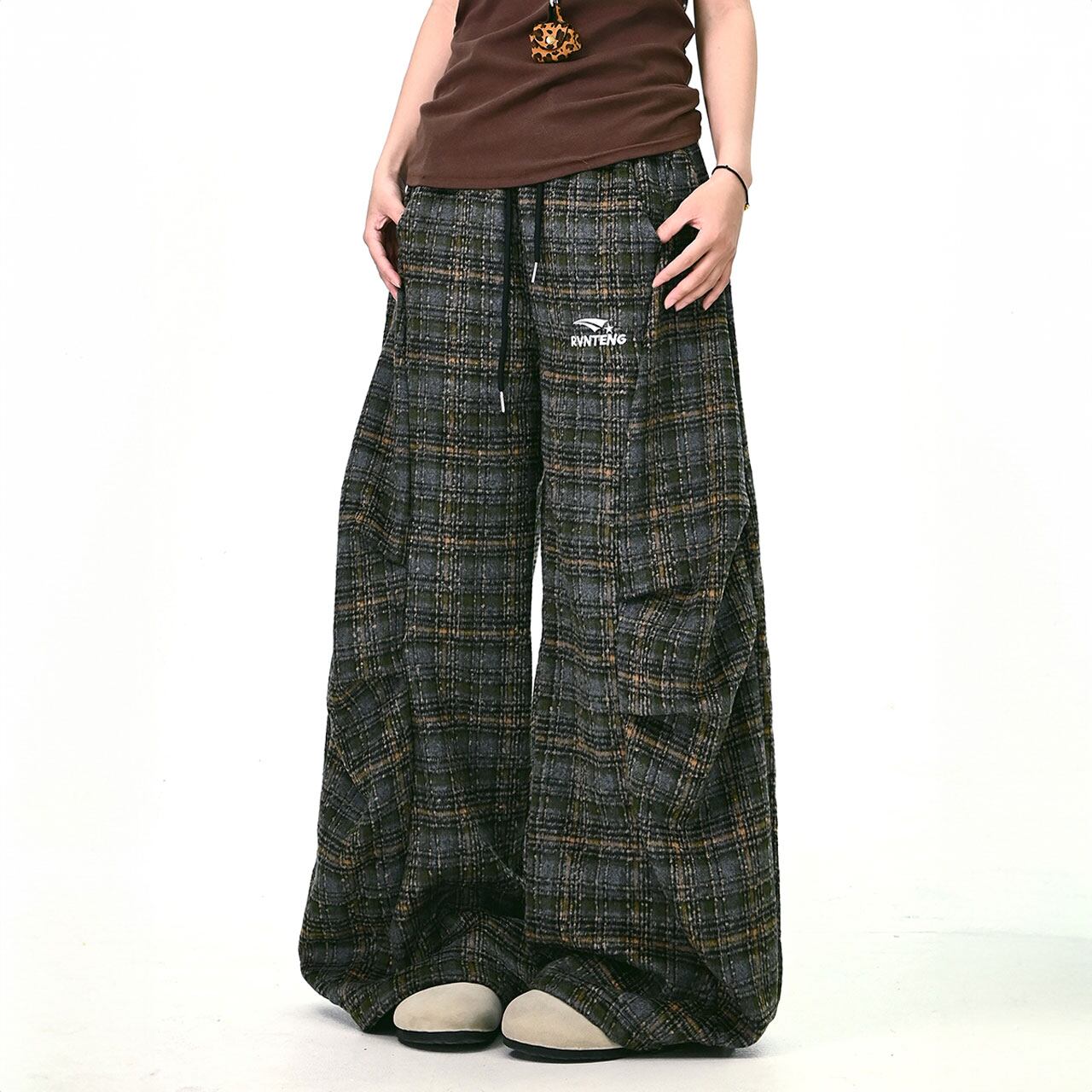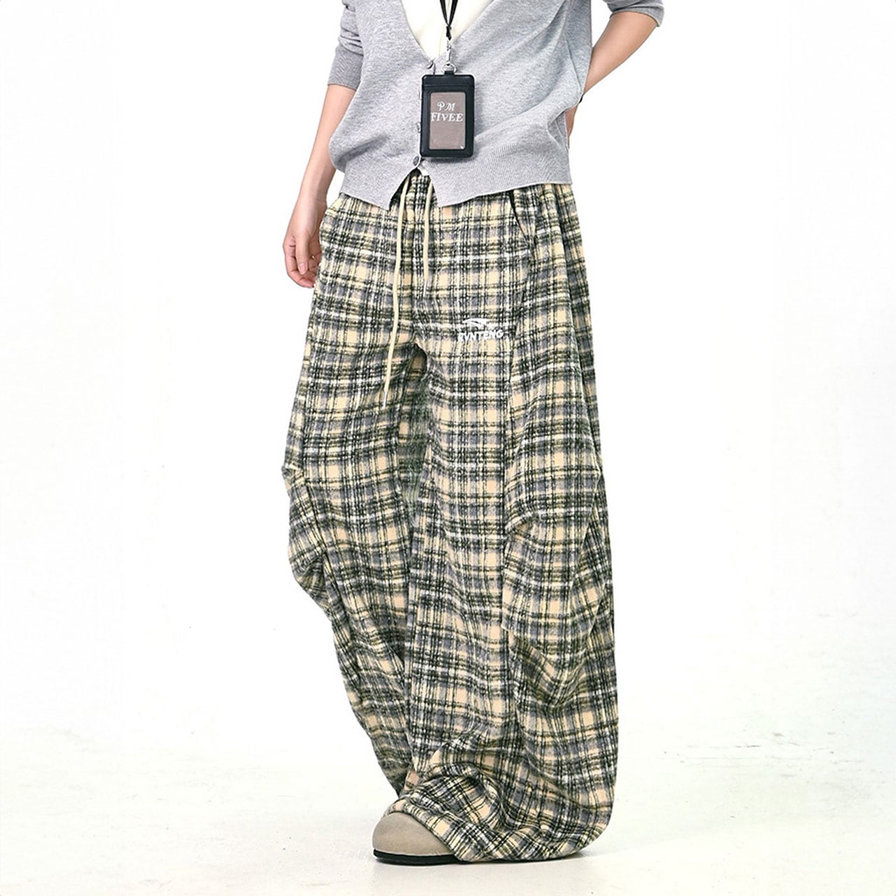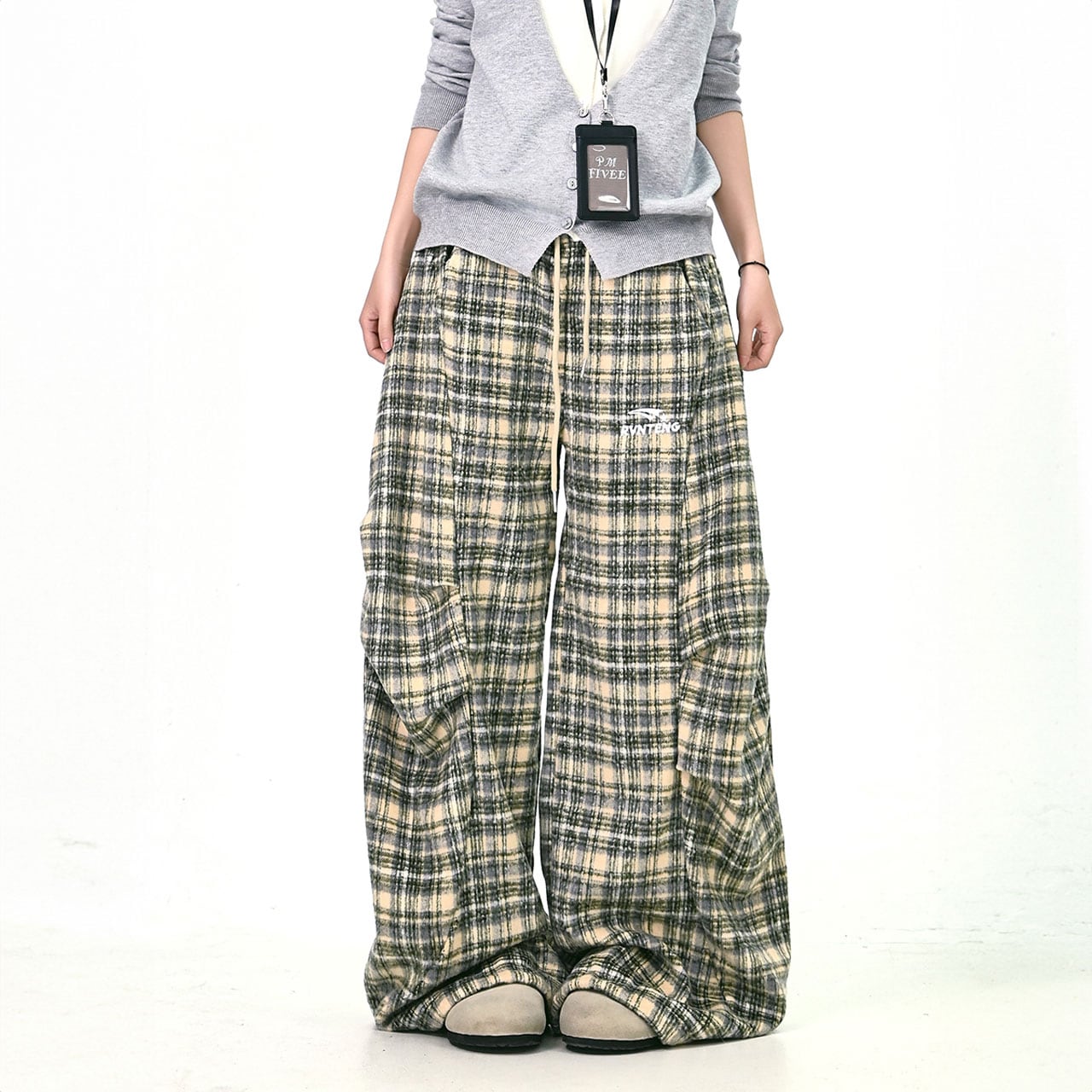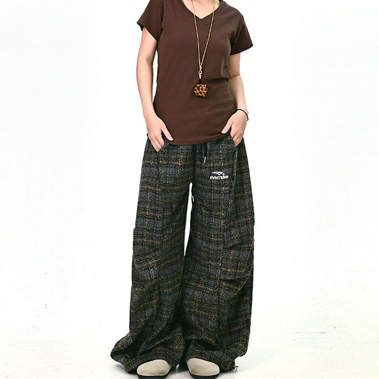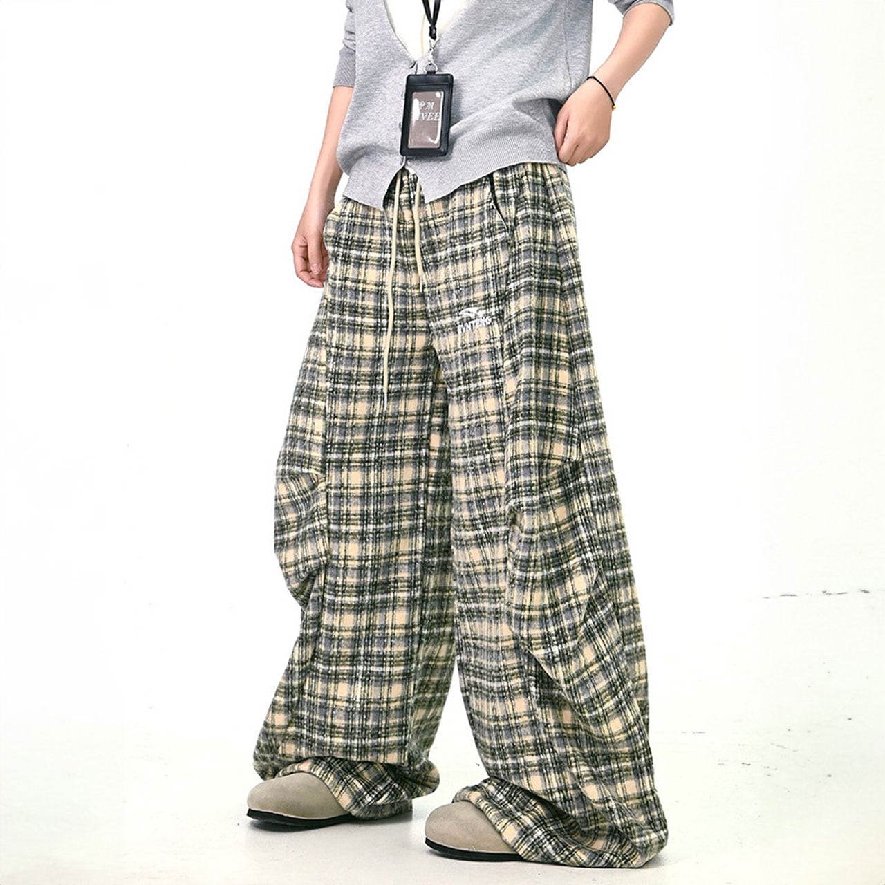 ゆるく落ちるワイドシルエットが、ラフな抜け感をつくるチェックパンツ。
