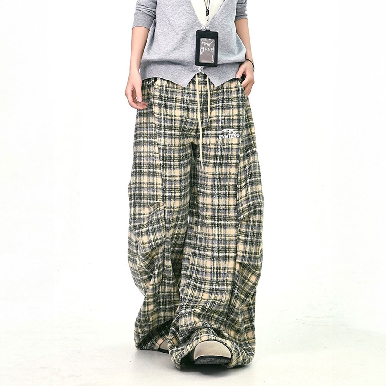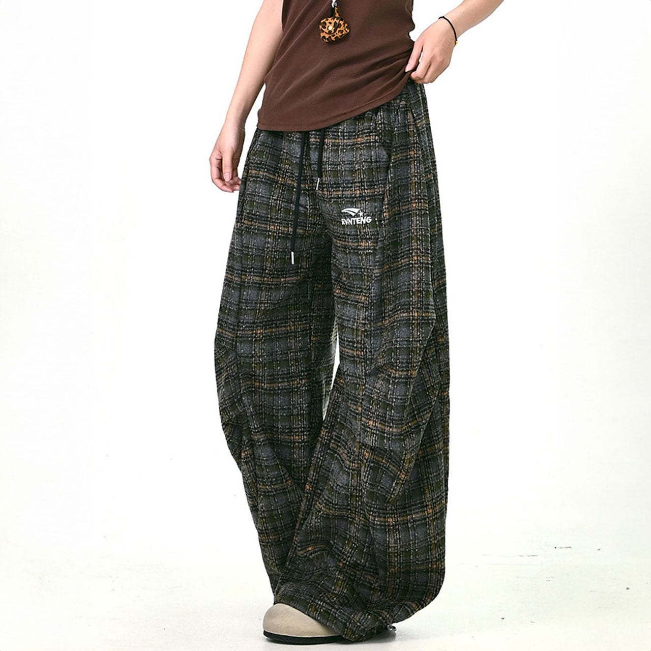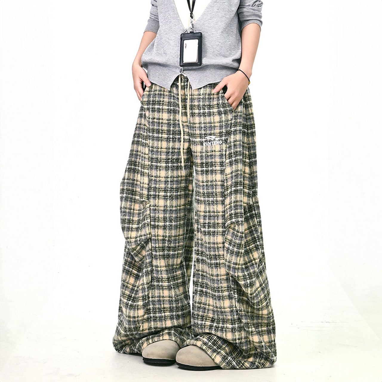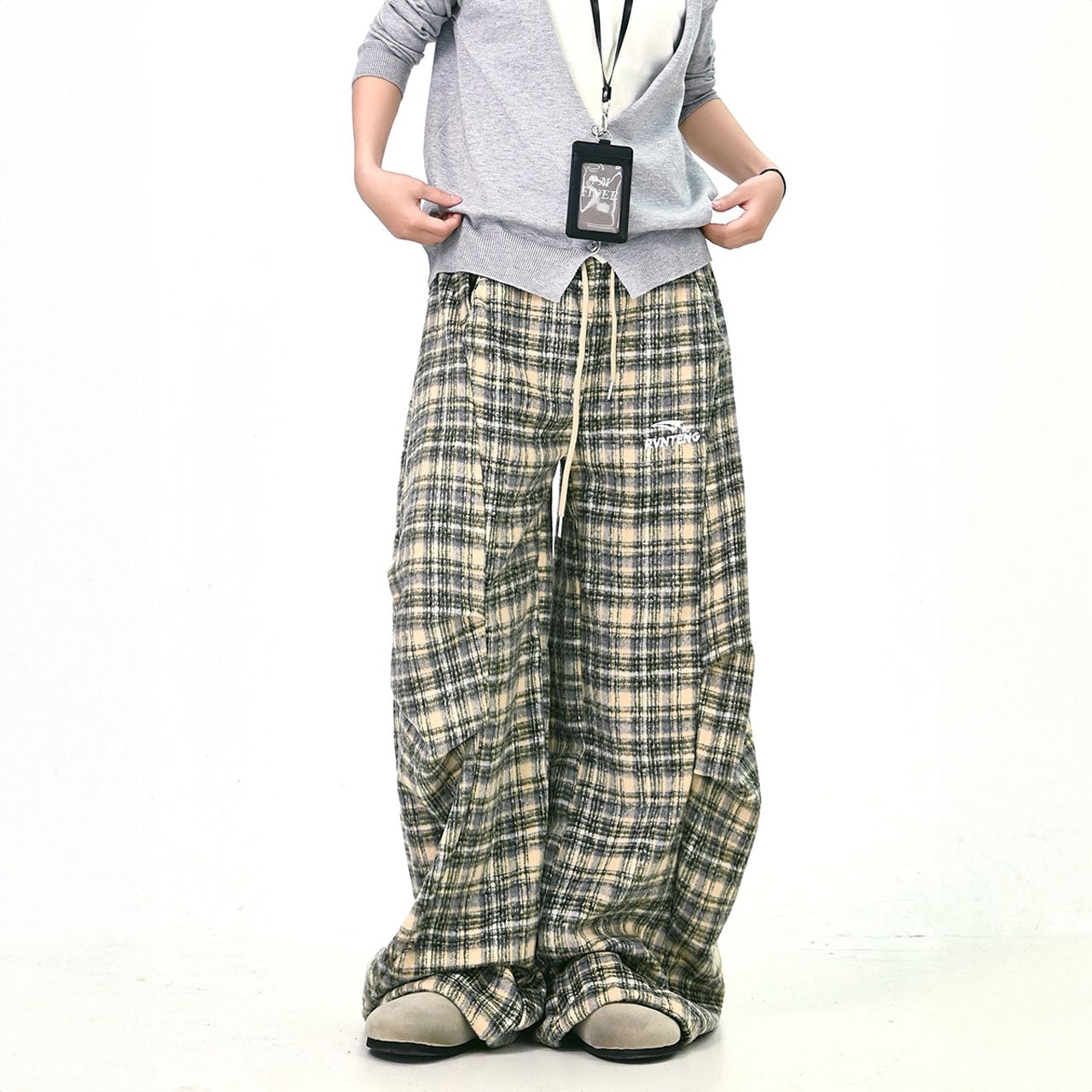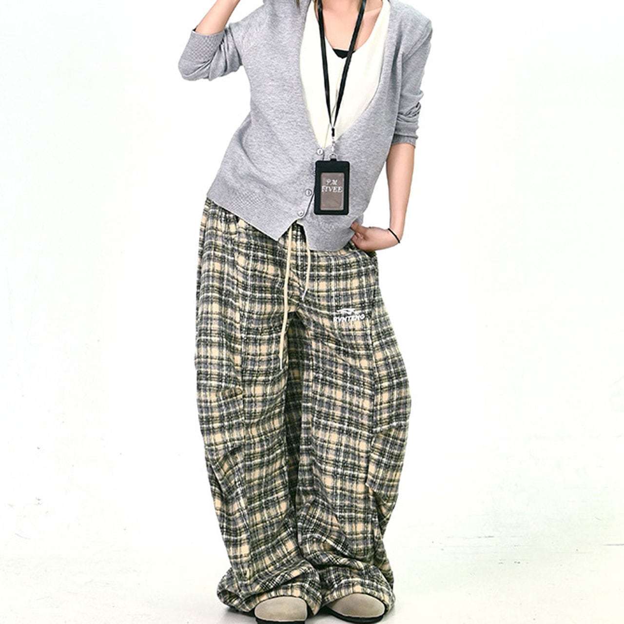 ゆるく落ちるワイドシルエットが、ラフな抜け感をつくるチェックパンツ。