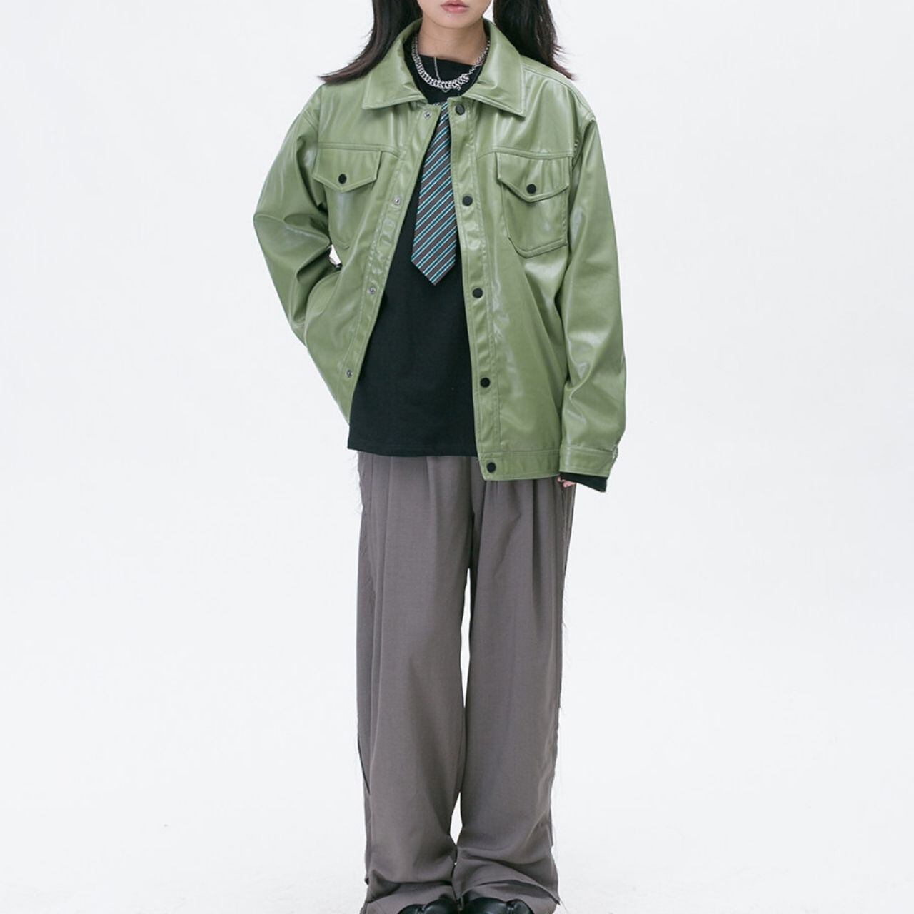 ワークレトロフェイクレザーシャツ 4col R01350