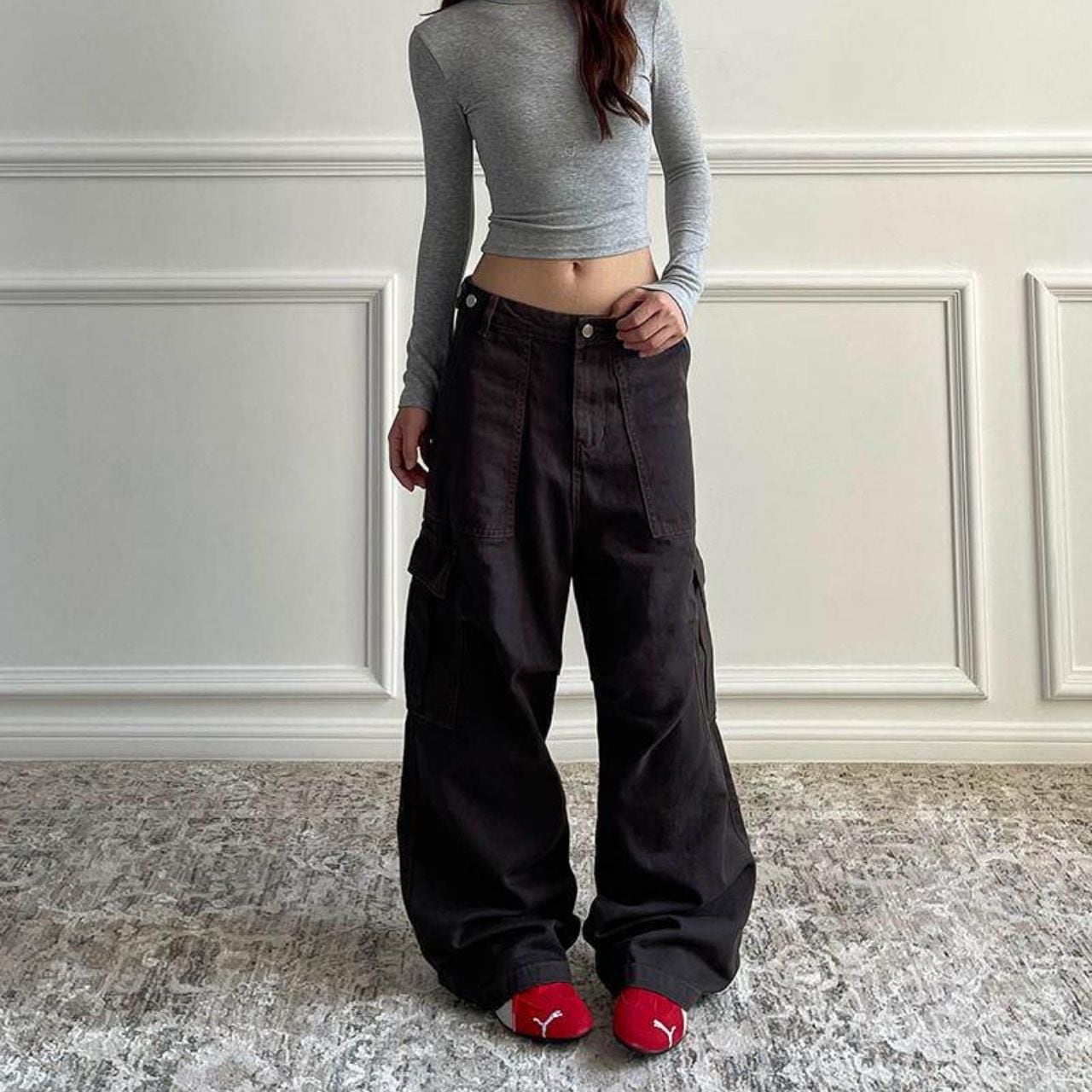 ミニマルワークカーゴストレートパンツ 2col R01361