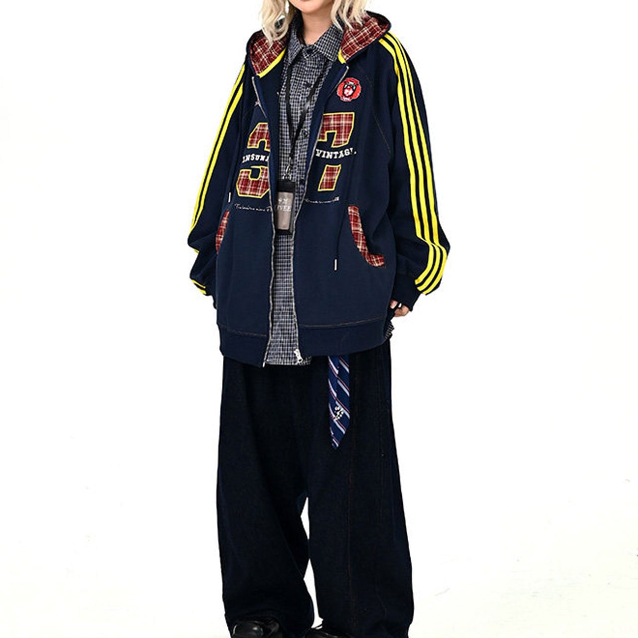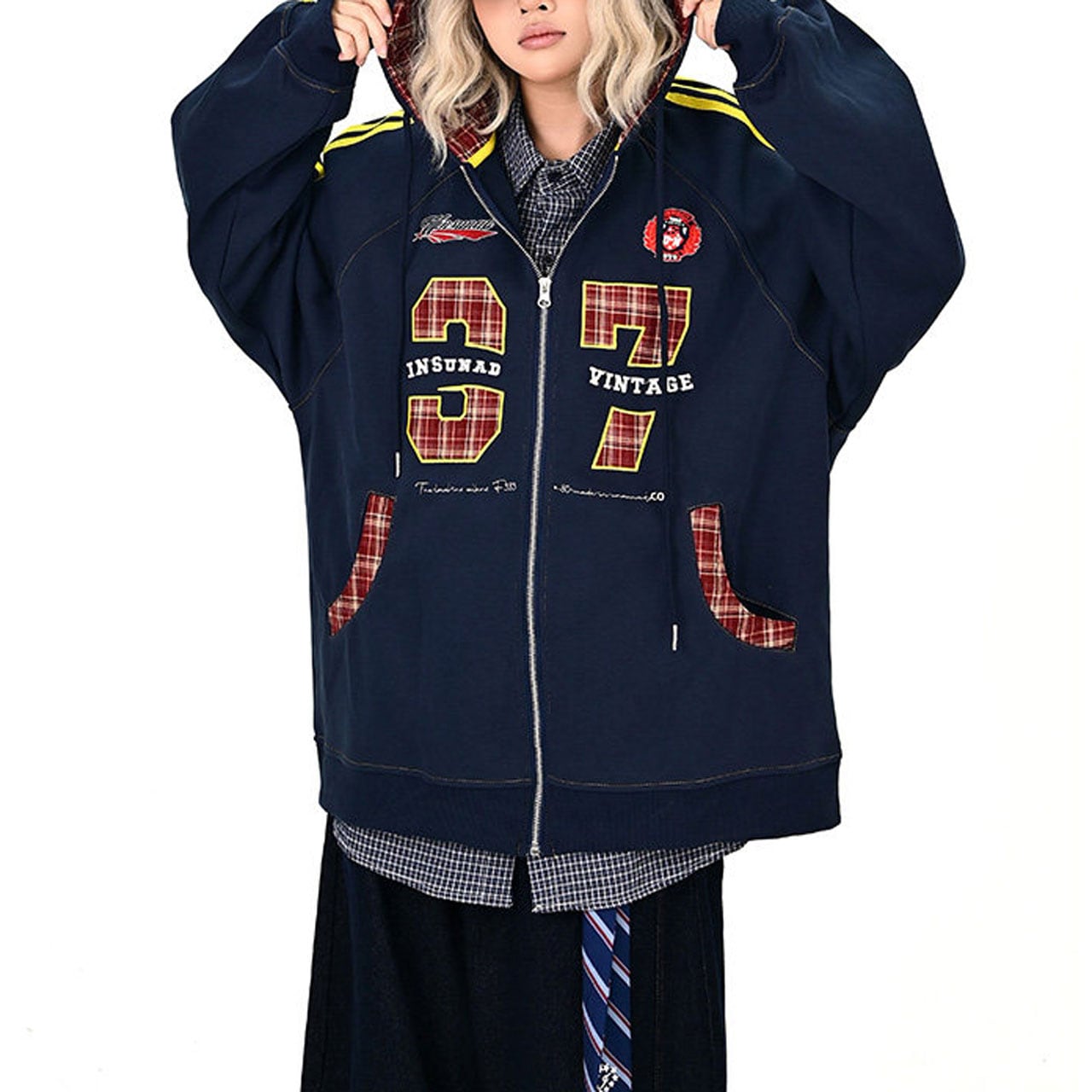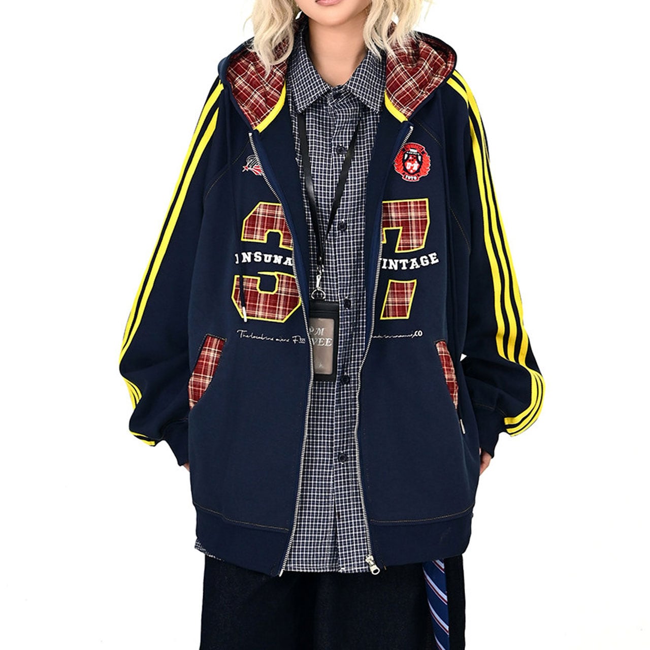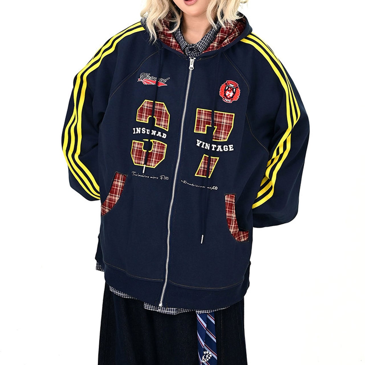 ナンバリングチェックミックスラインジップフーディ 2col R01376