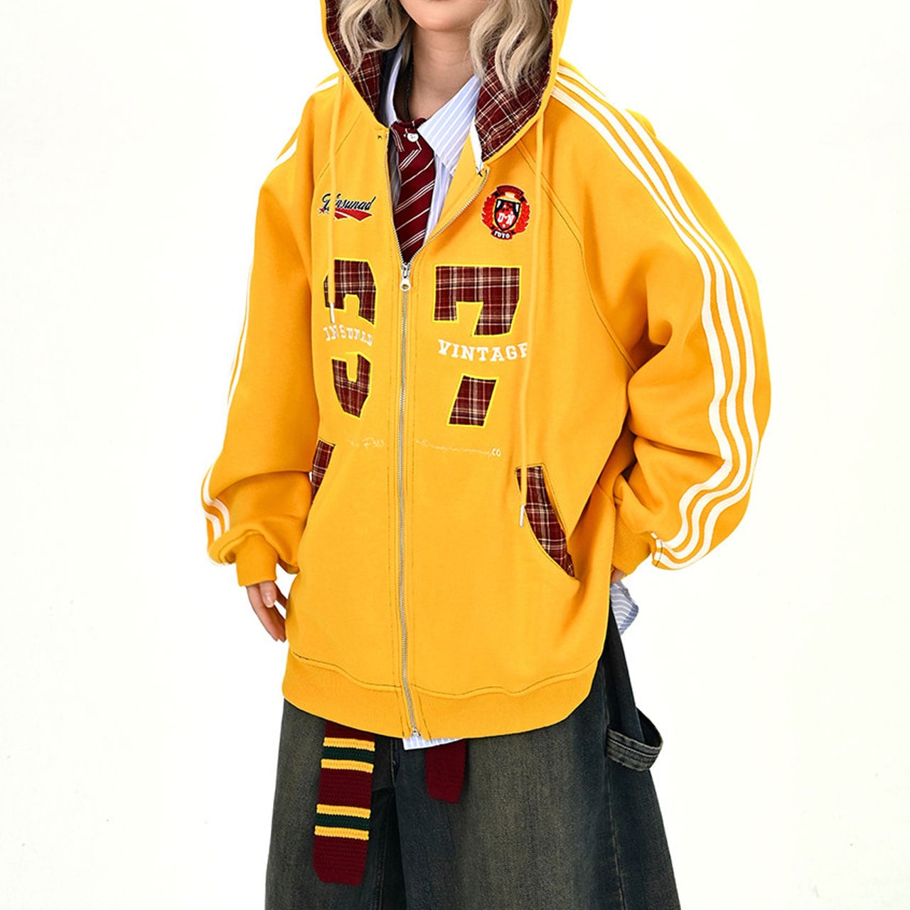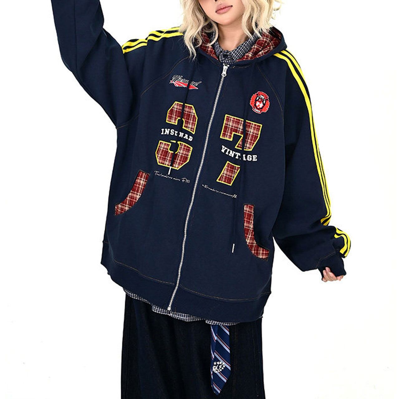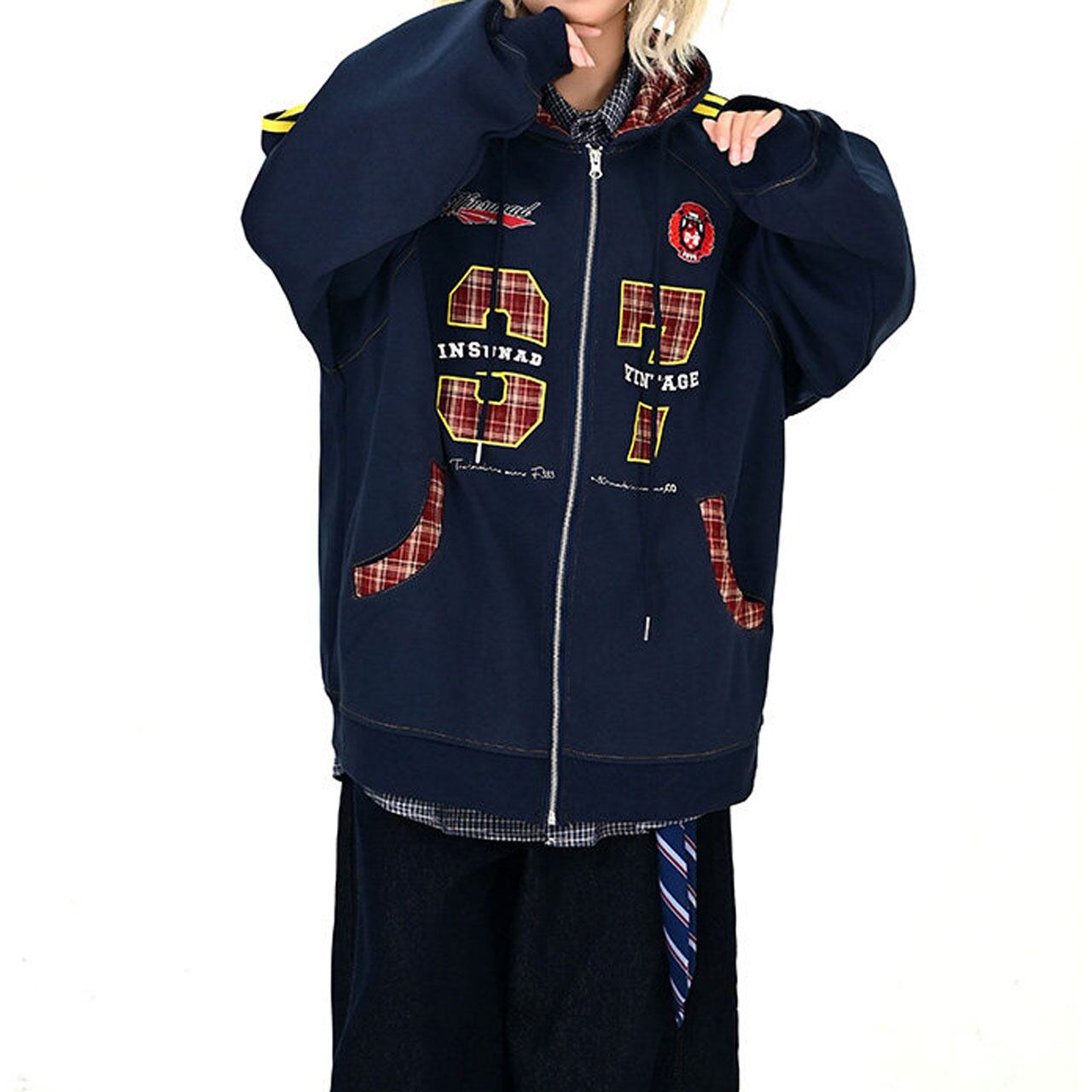 ナンバリングチェックミックスラインジップフーディ 2col R01376