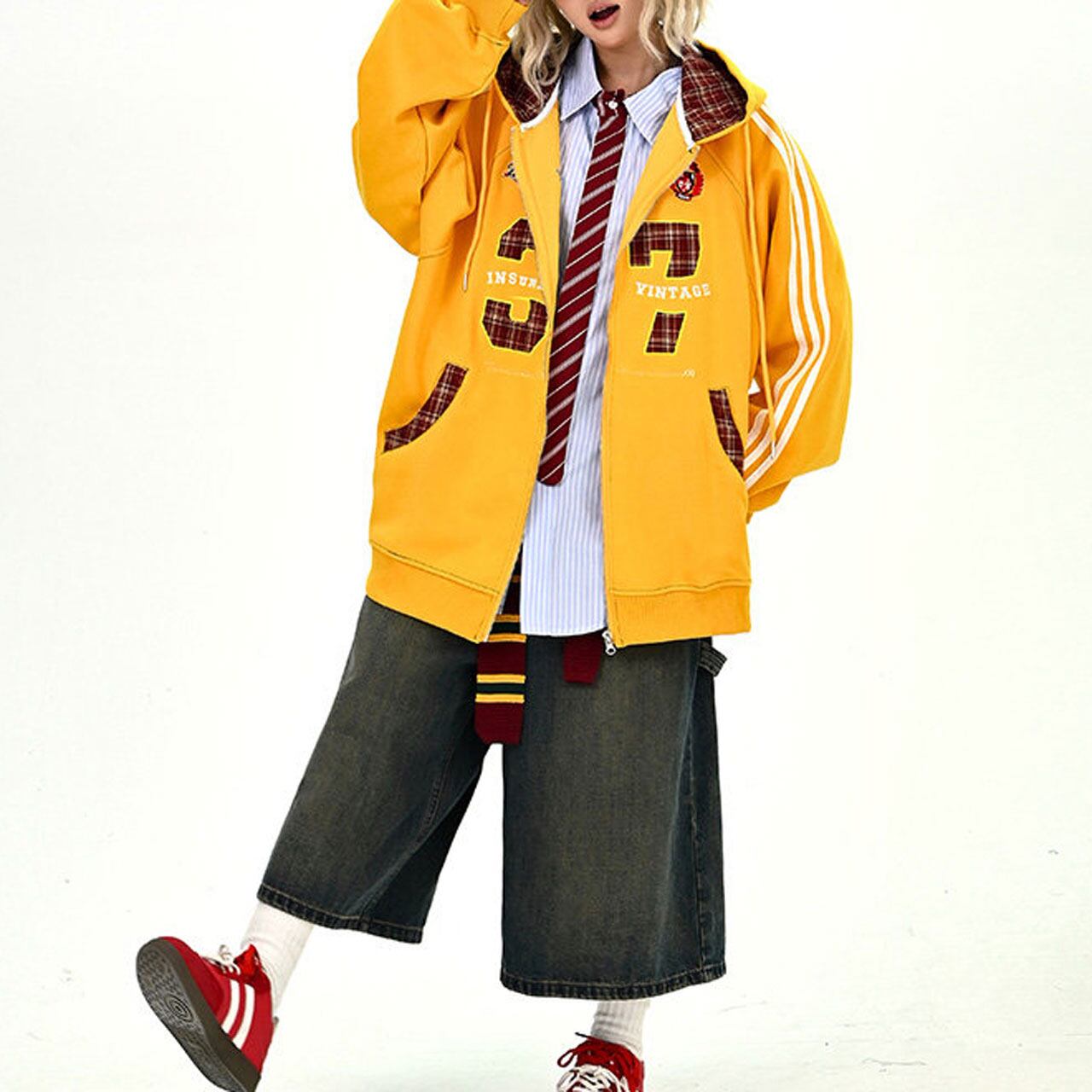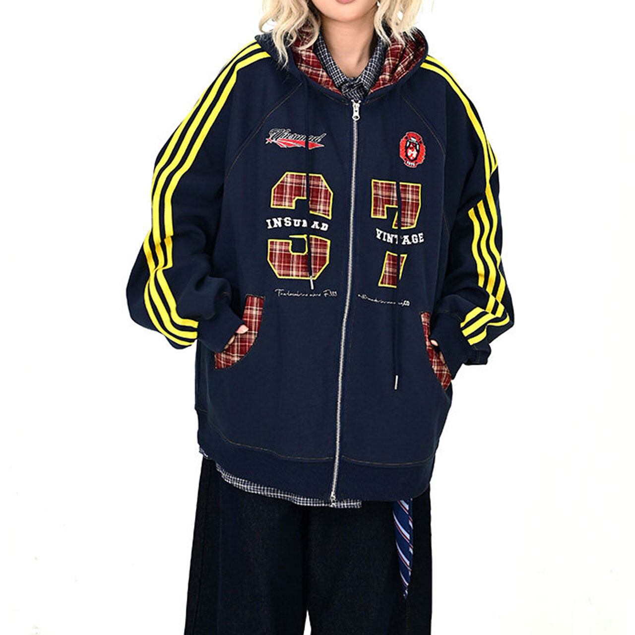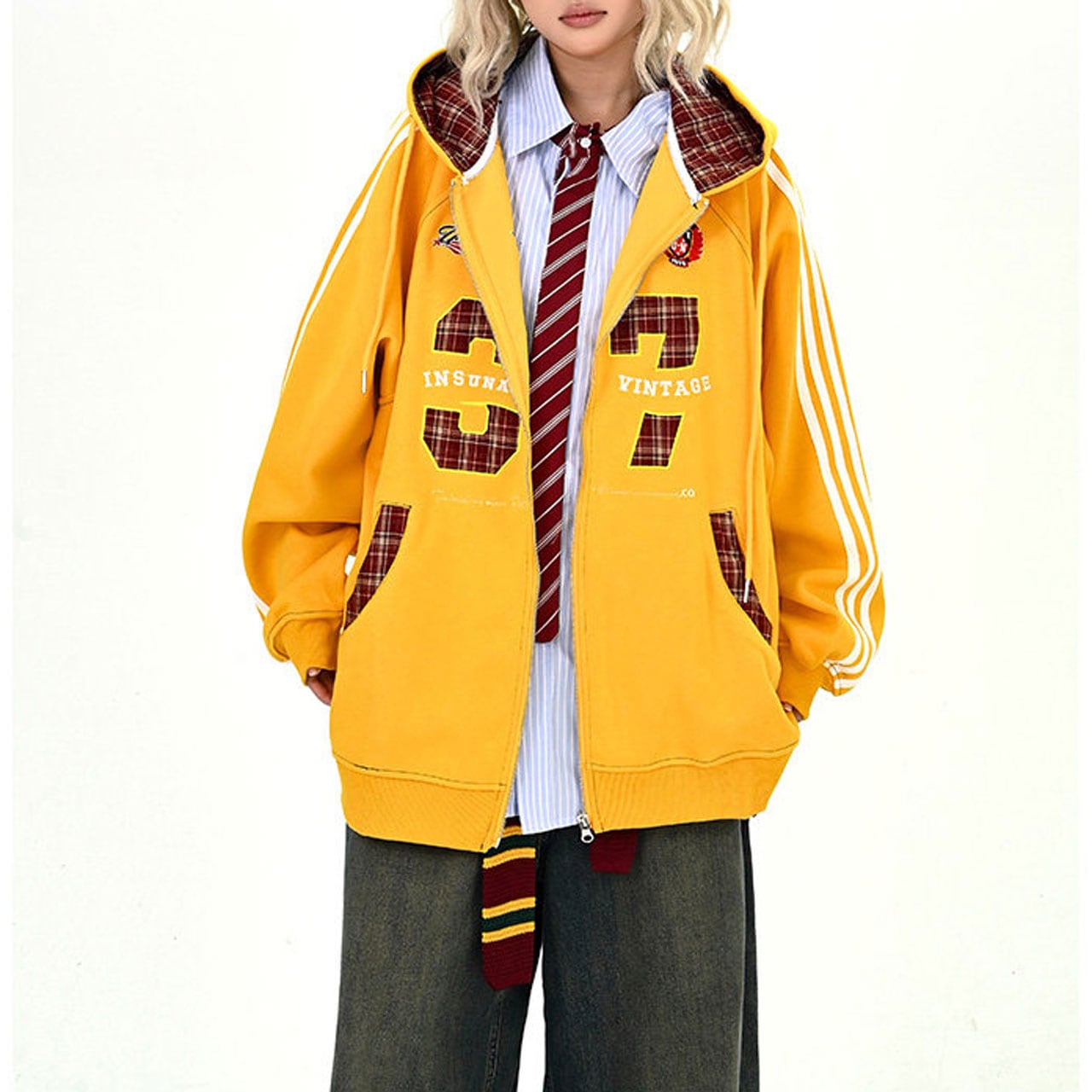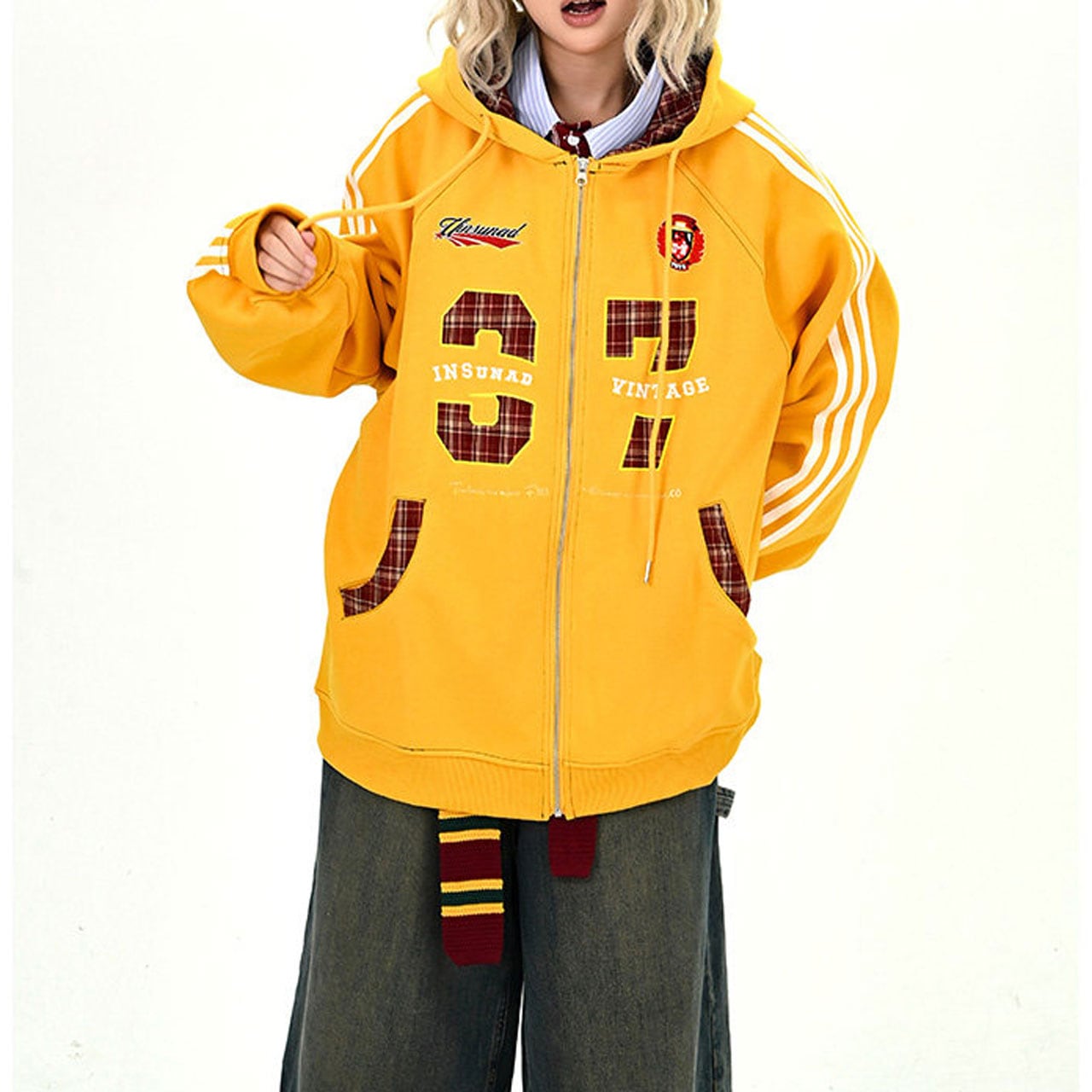 ナンバリングチェックミックスラインジップフーディ 2col R01376