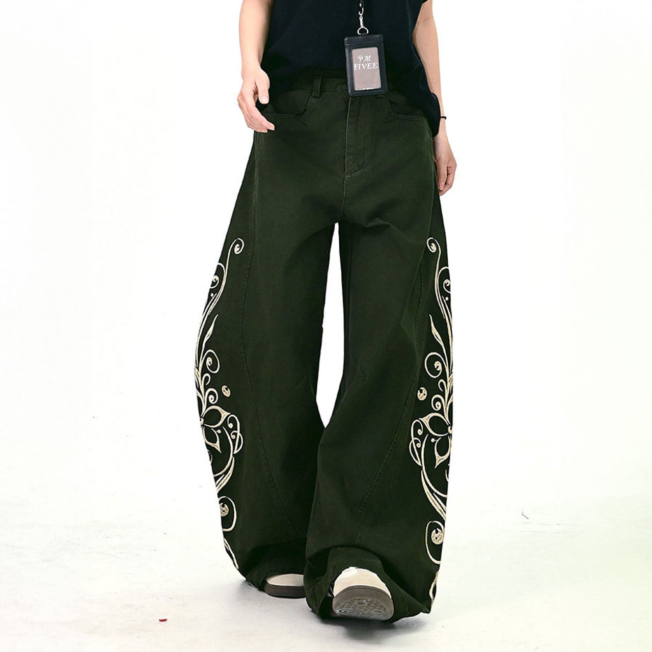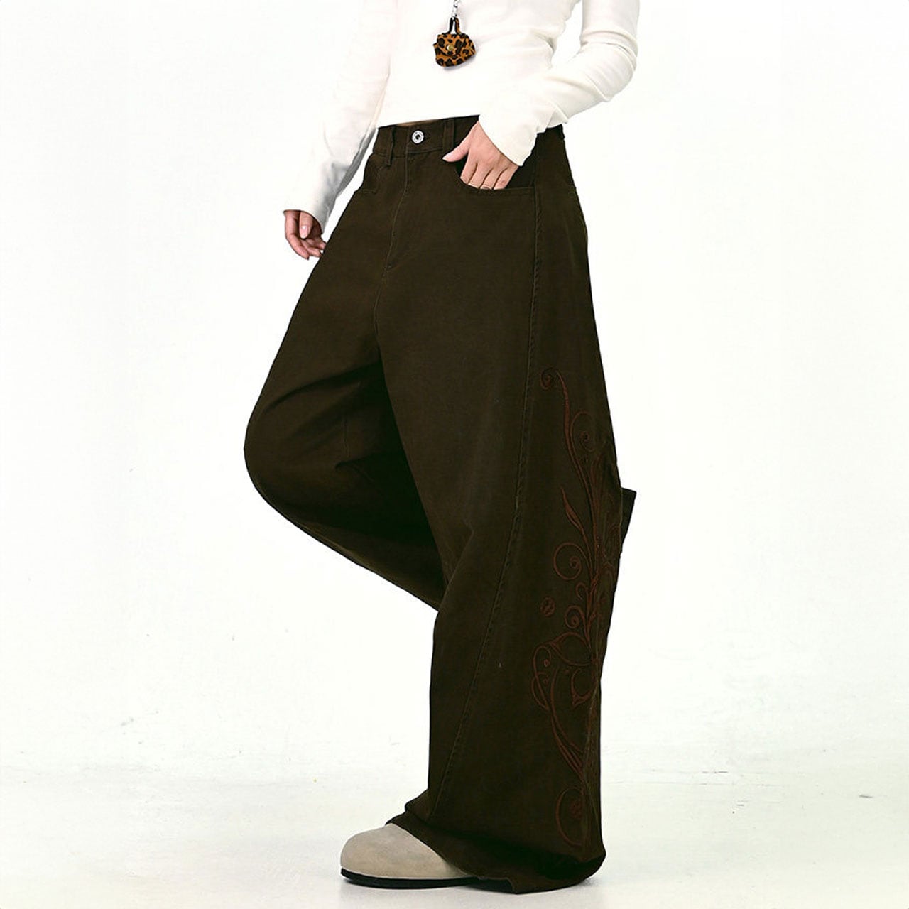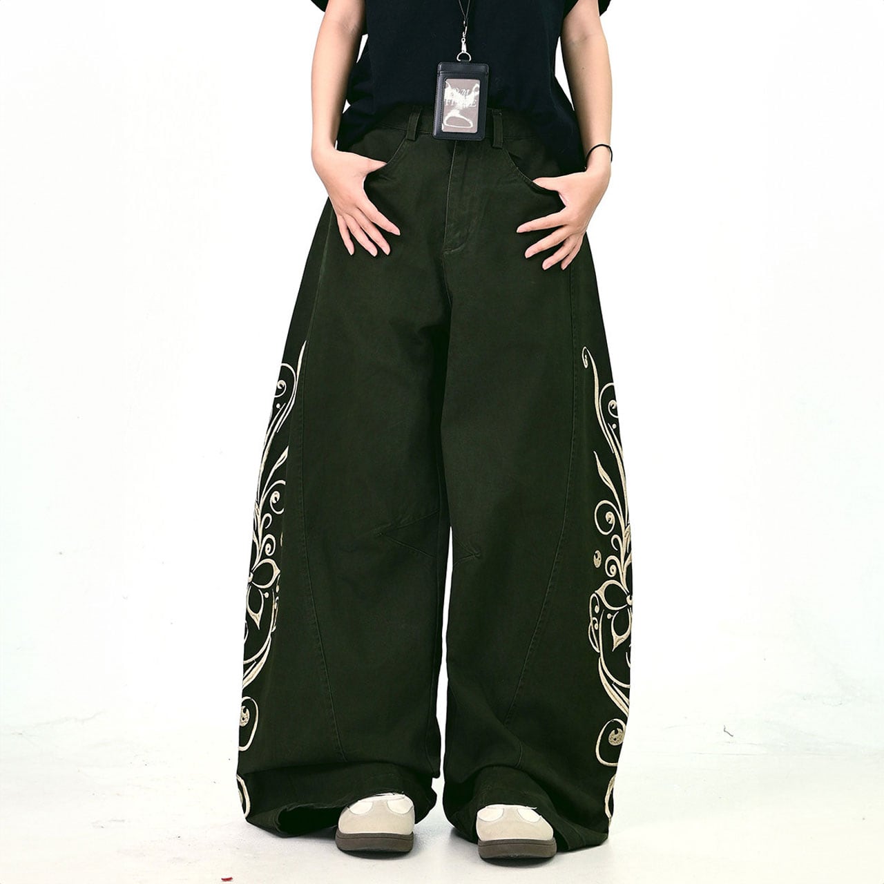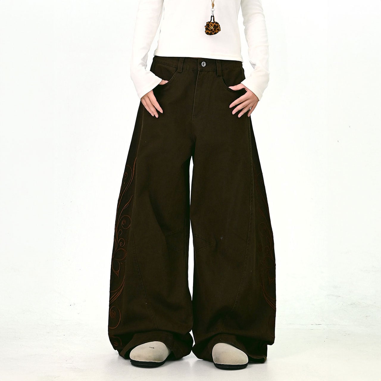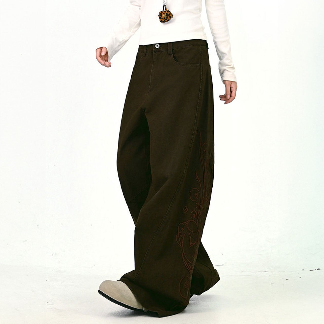 フローラルエンブロイダリーストリートワイドパンツ 2col R01377