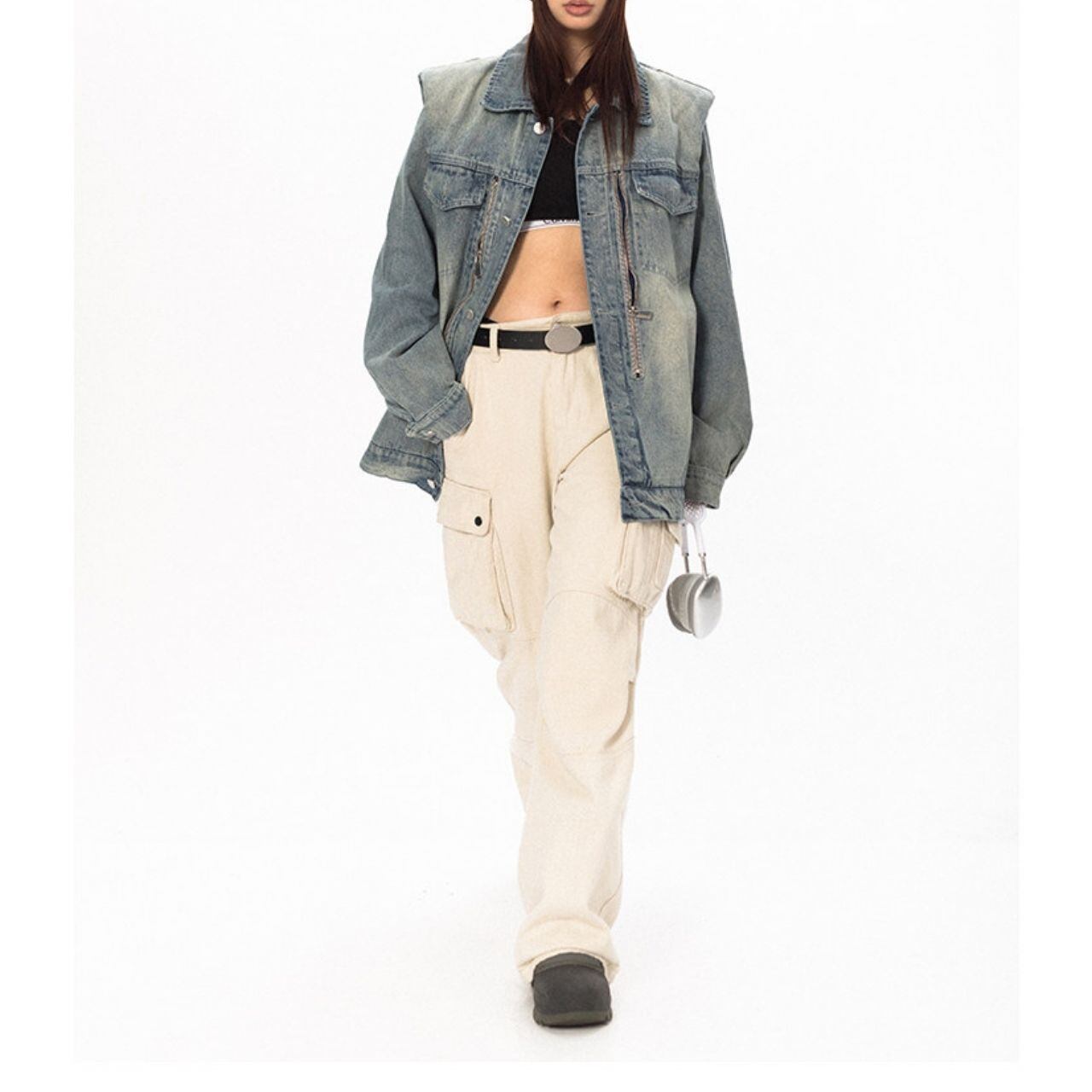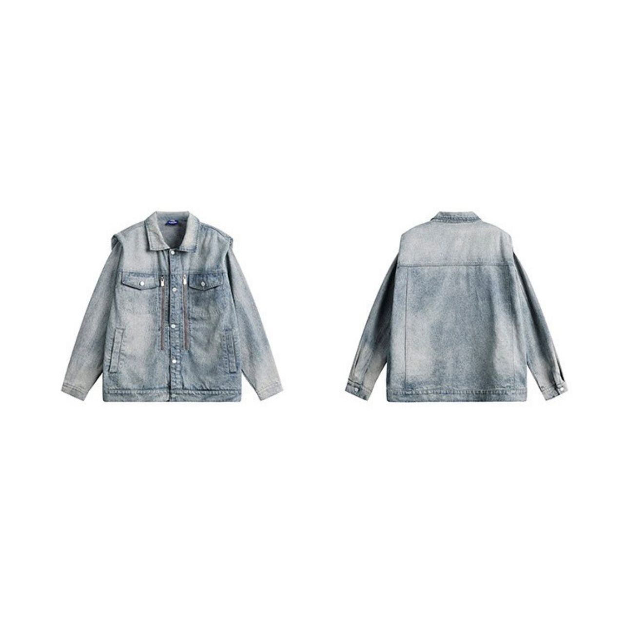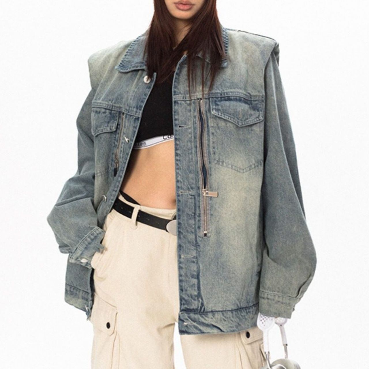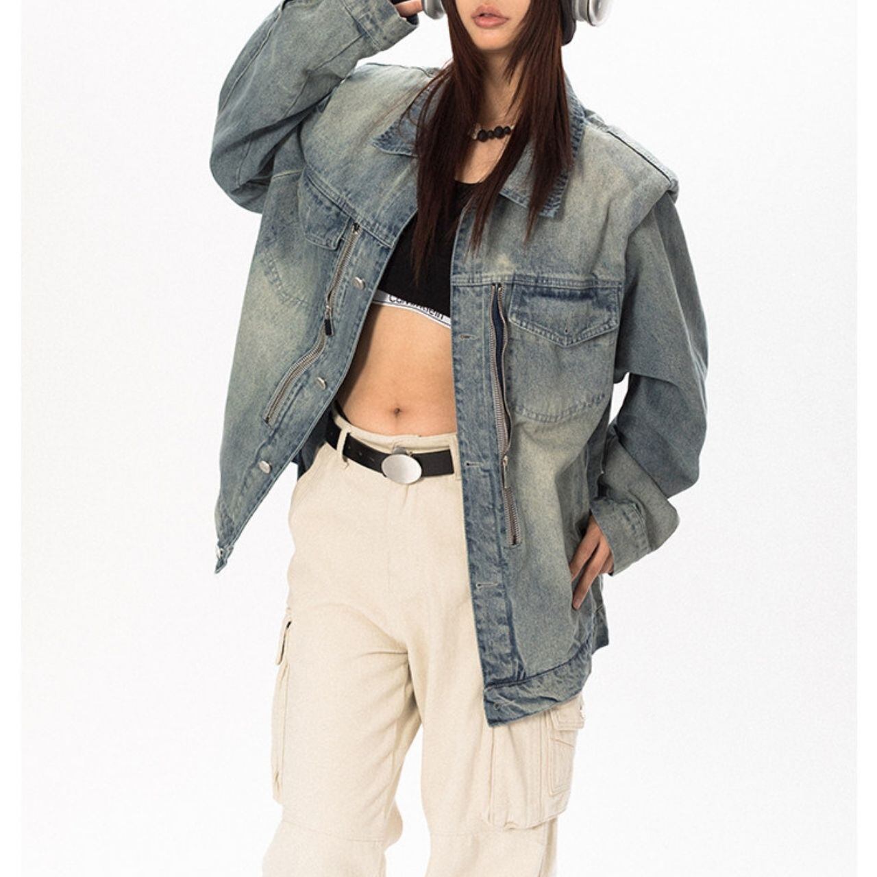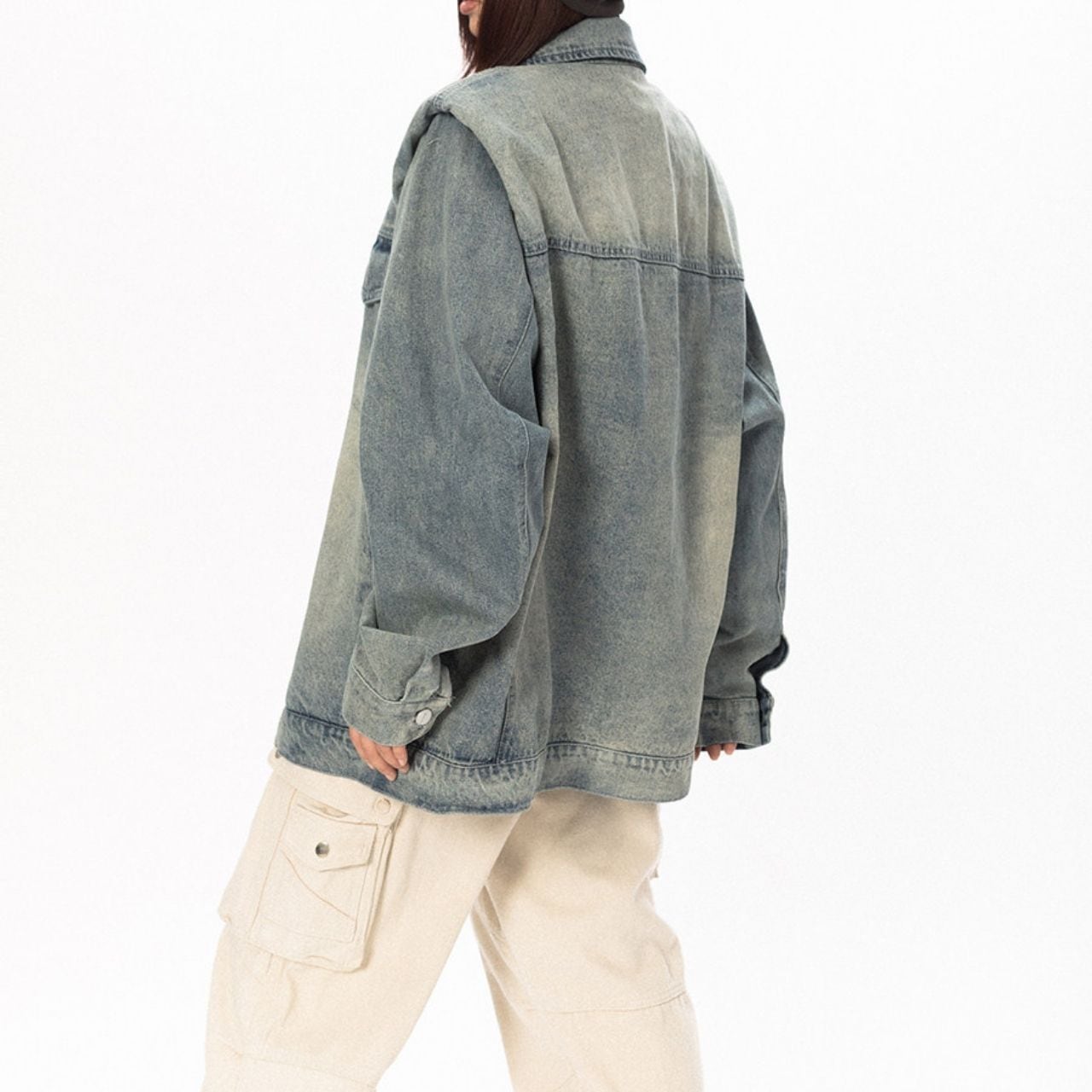 立体感のあるショルダーデザインが目を引く、存在感抜群のデニムジャケット。