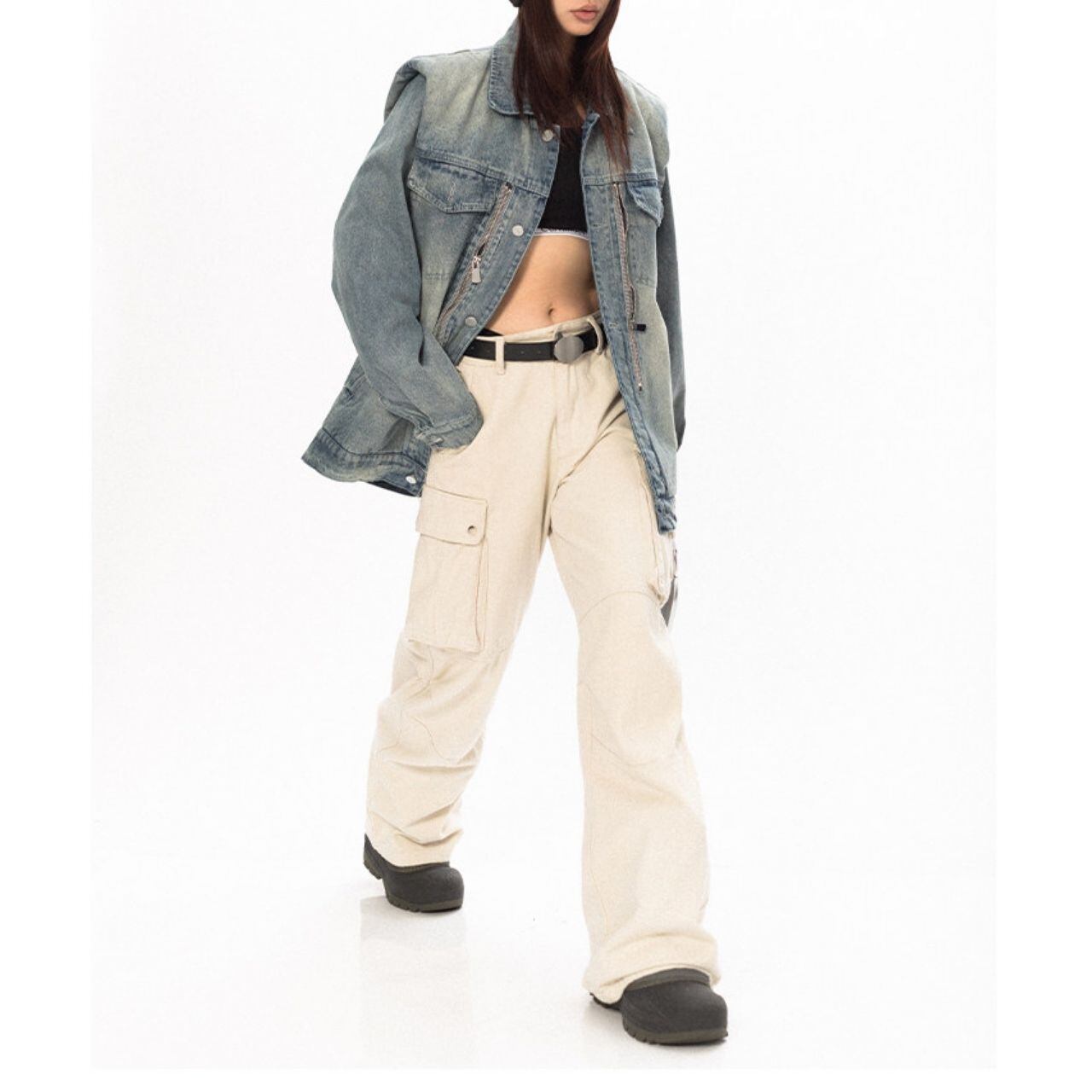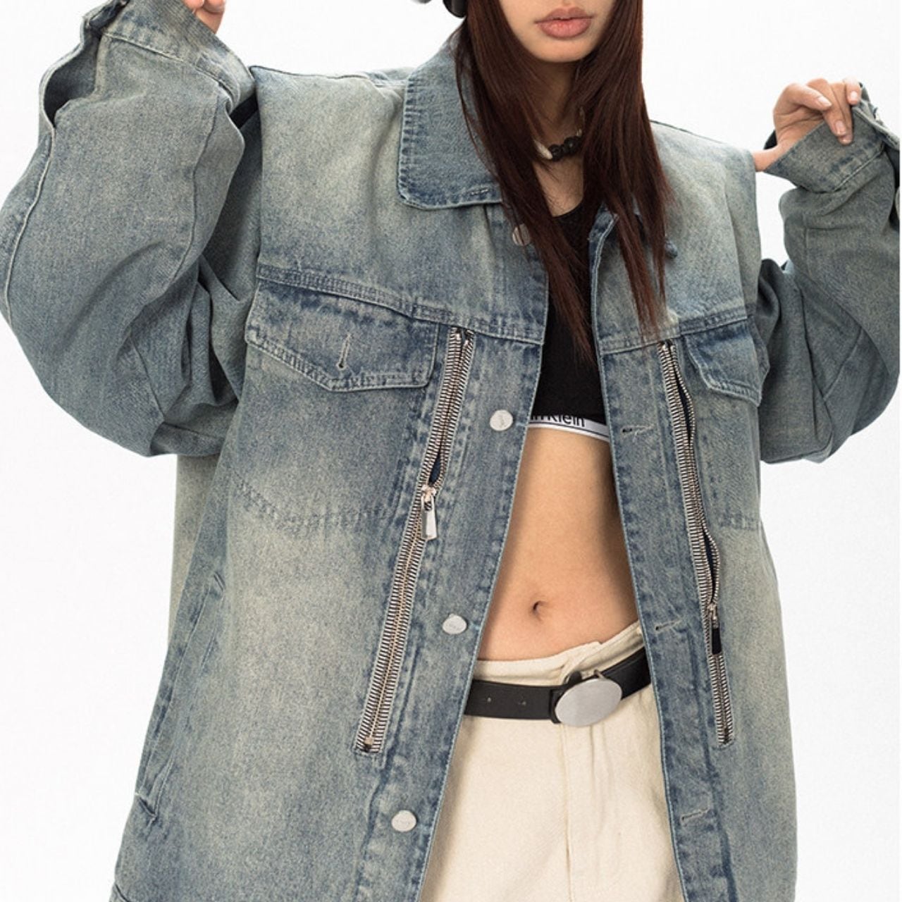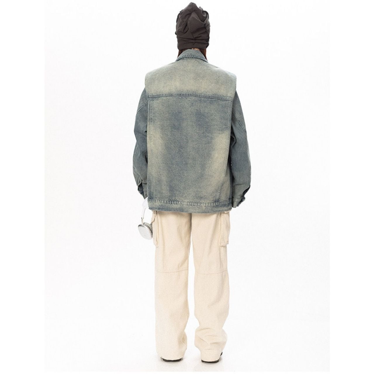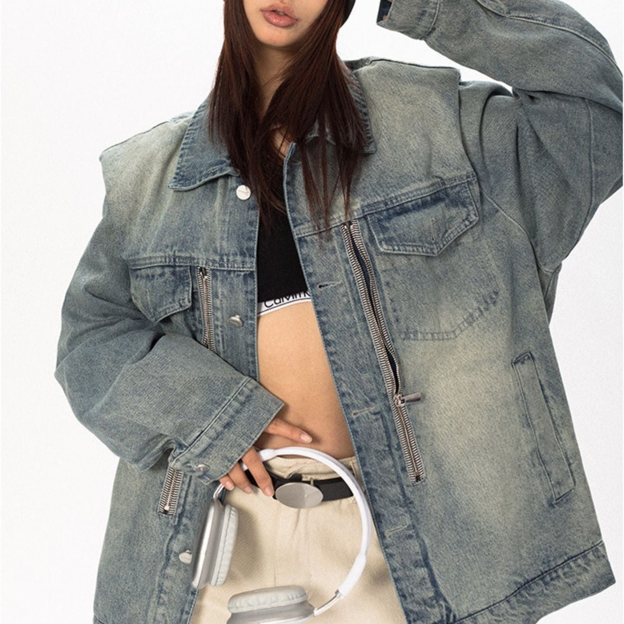 立体感のあるショルダーデザインが目を引く、存在感抜群のデニムジャケット。