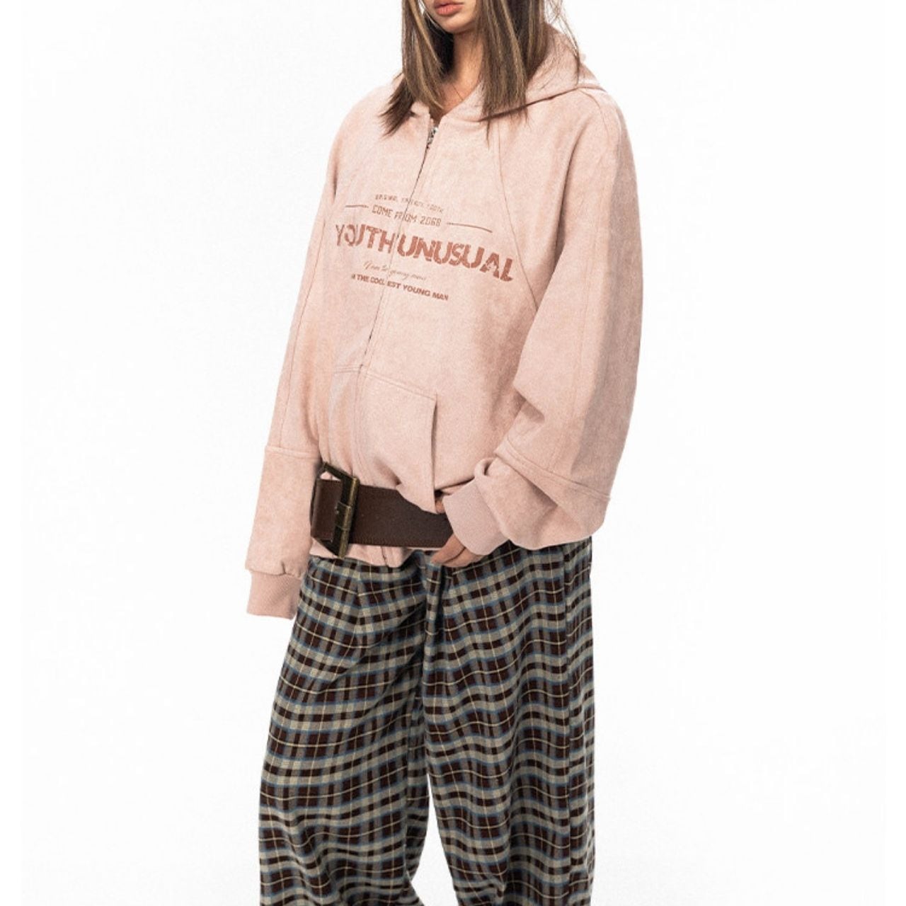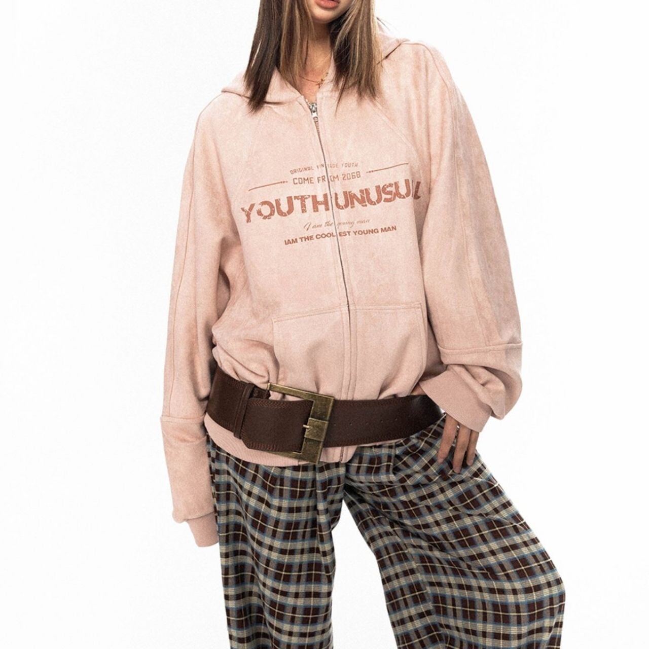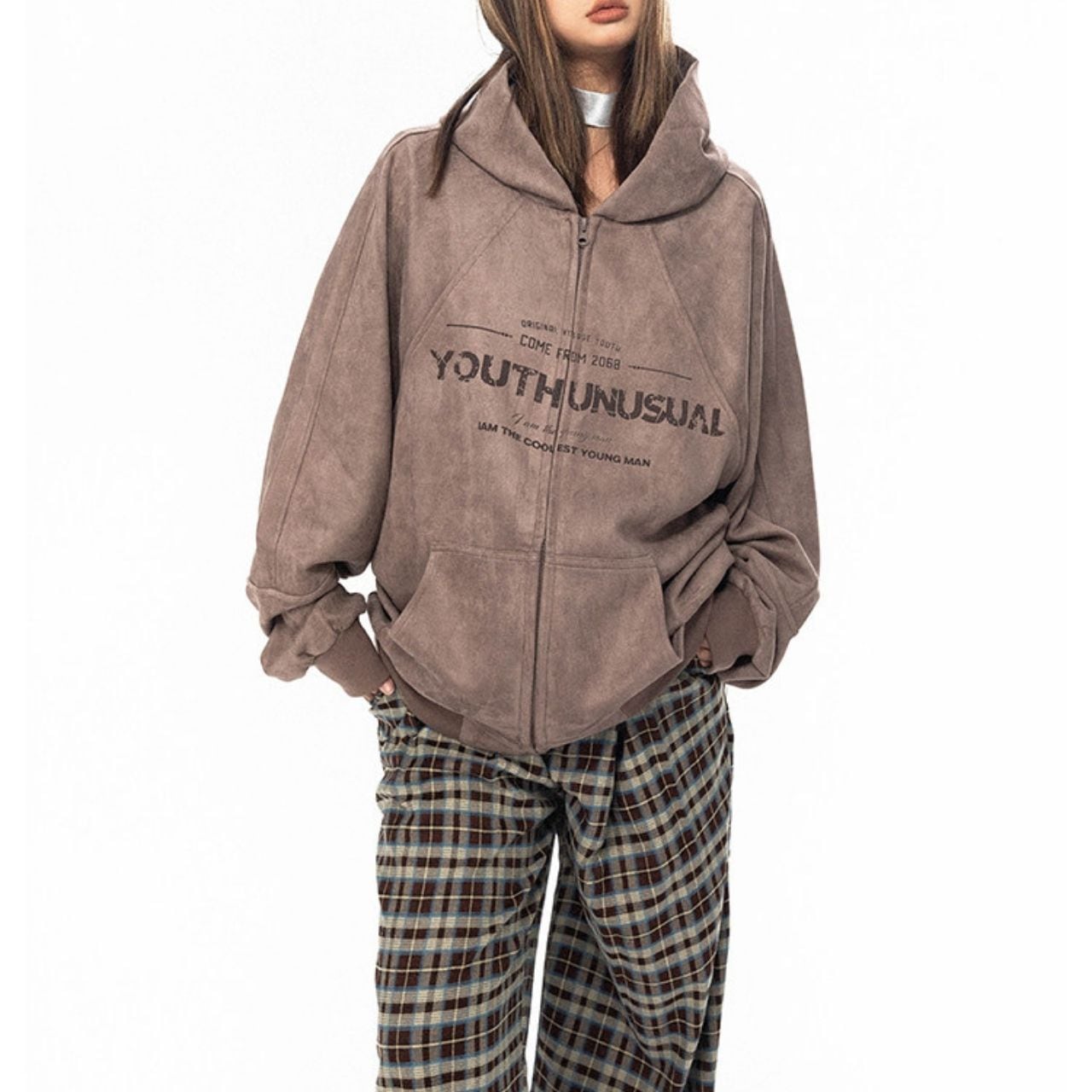 ロゴデザインとフェード感が印象的な、雰囲気重視のジップフーディ。