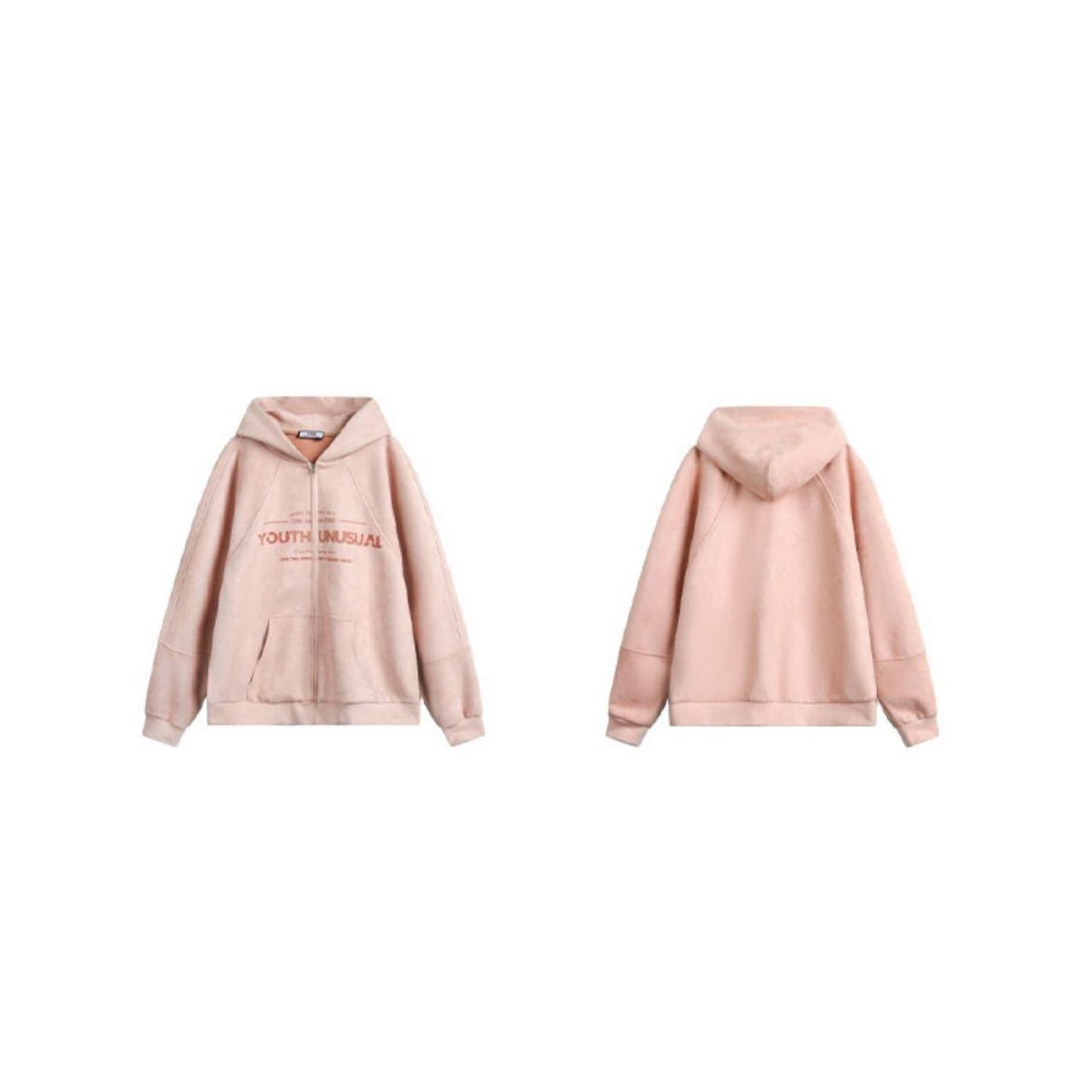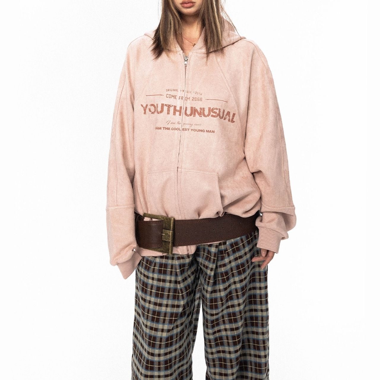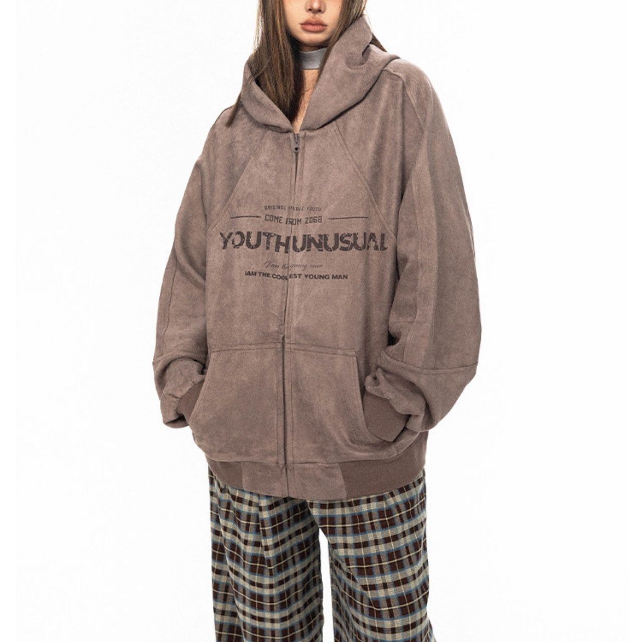 ロゴデザインとフェード感が印象的な、雰囲気重視のジップフーディ。