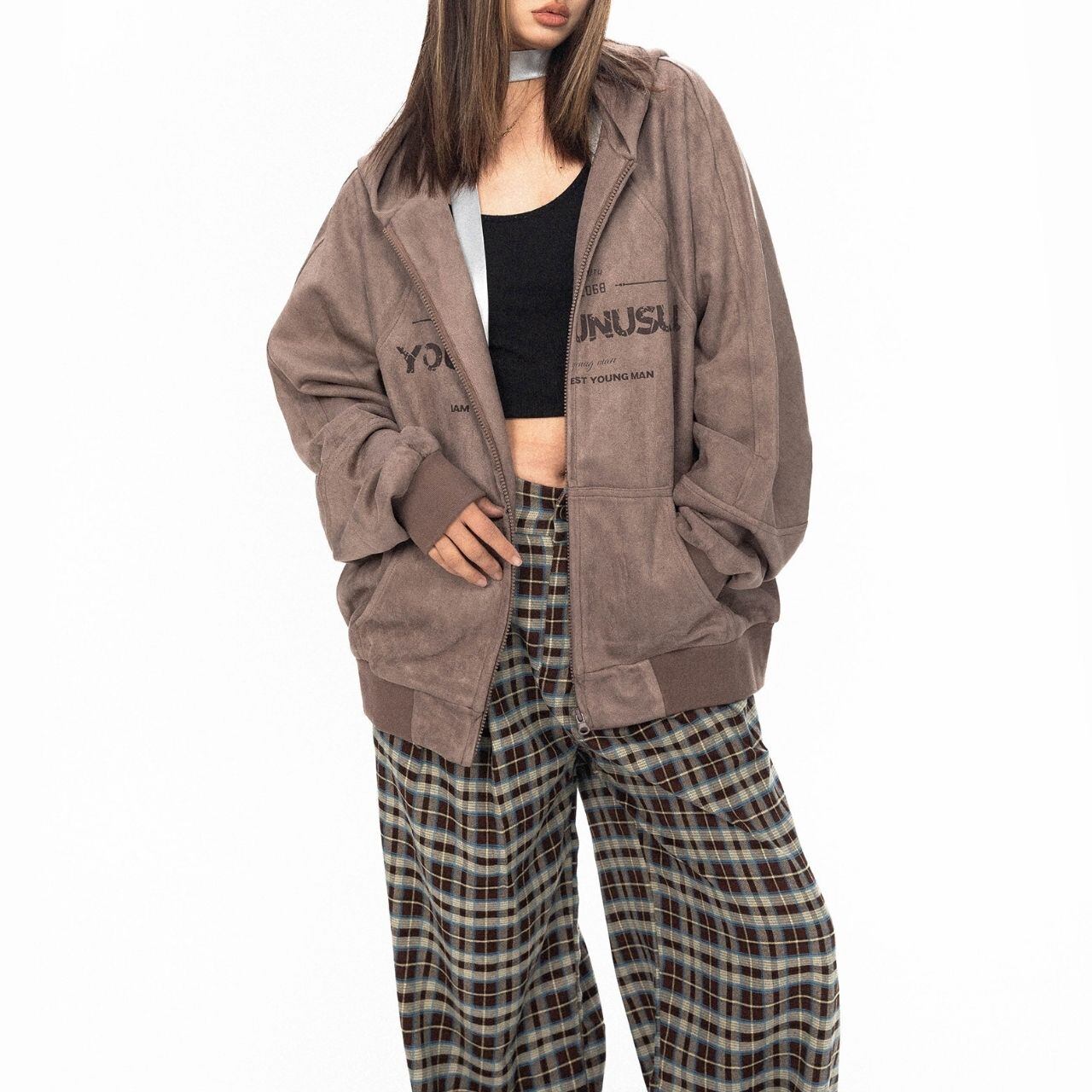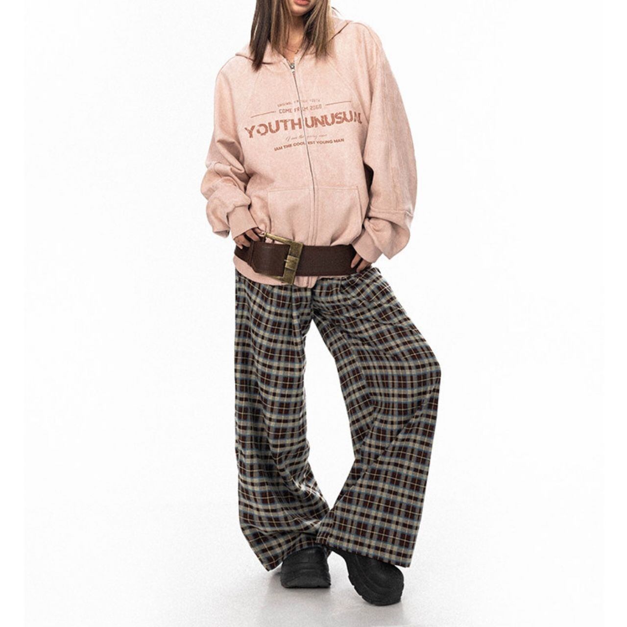 チェックパンツと合わせて、ストリート×レトロなスタイリングに。