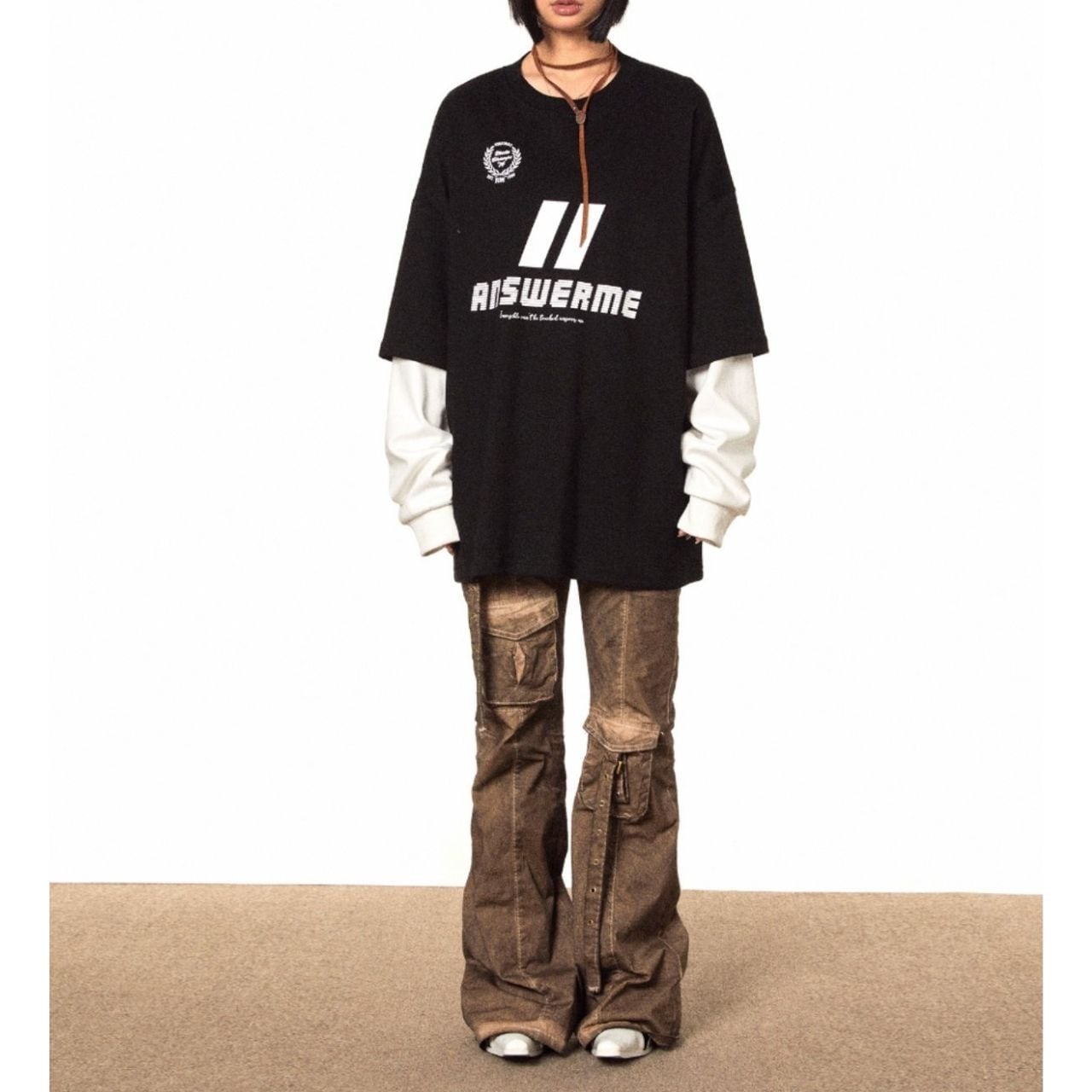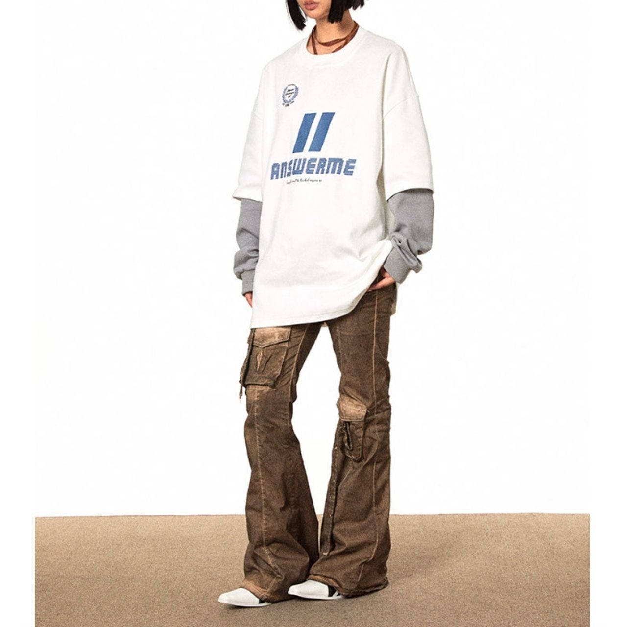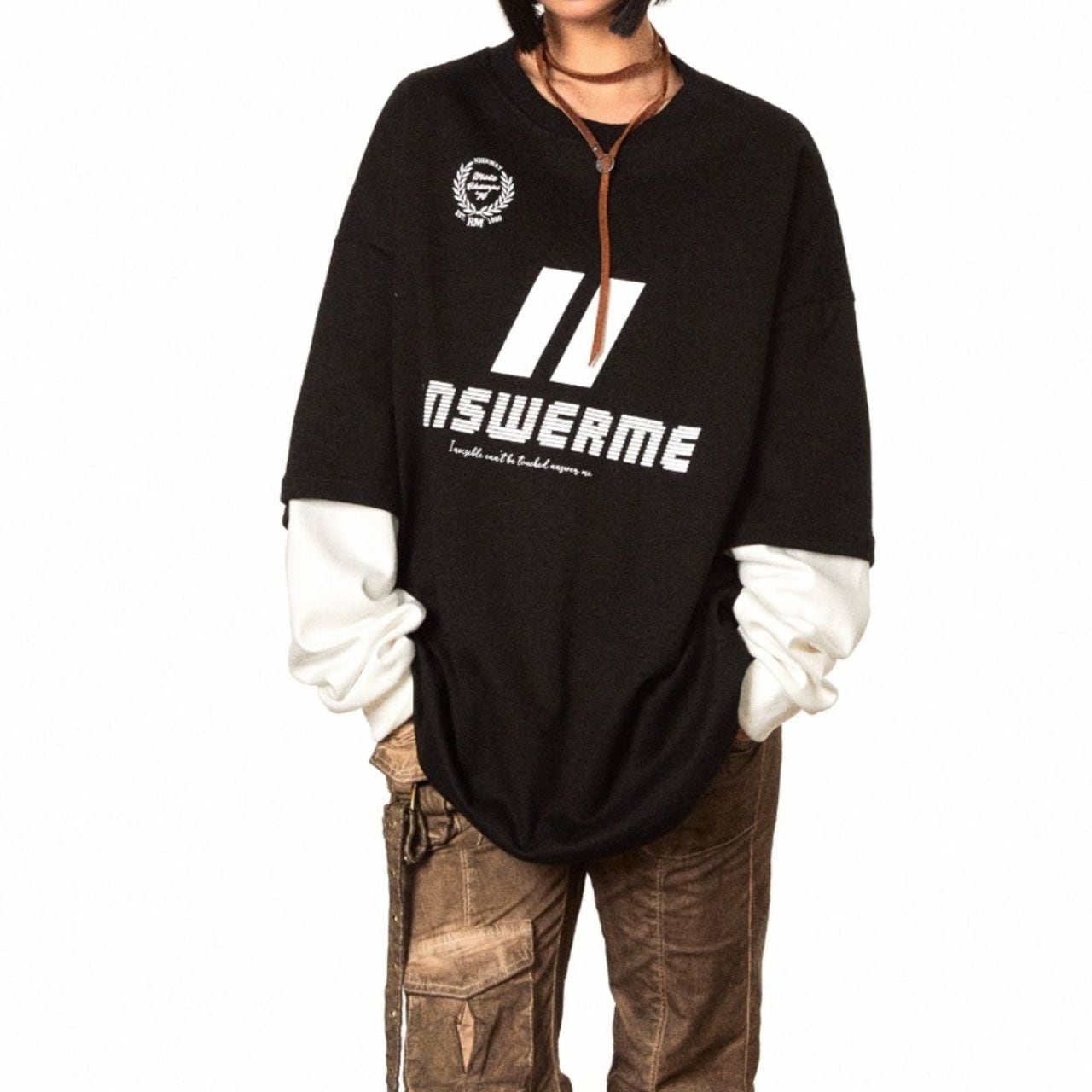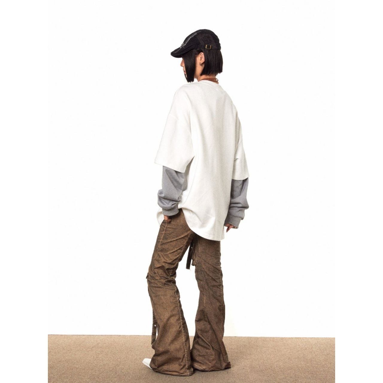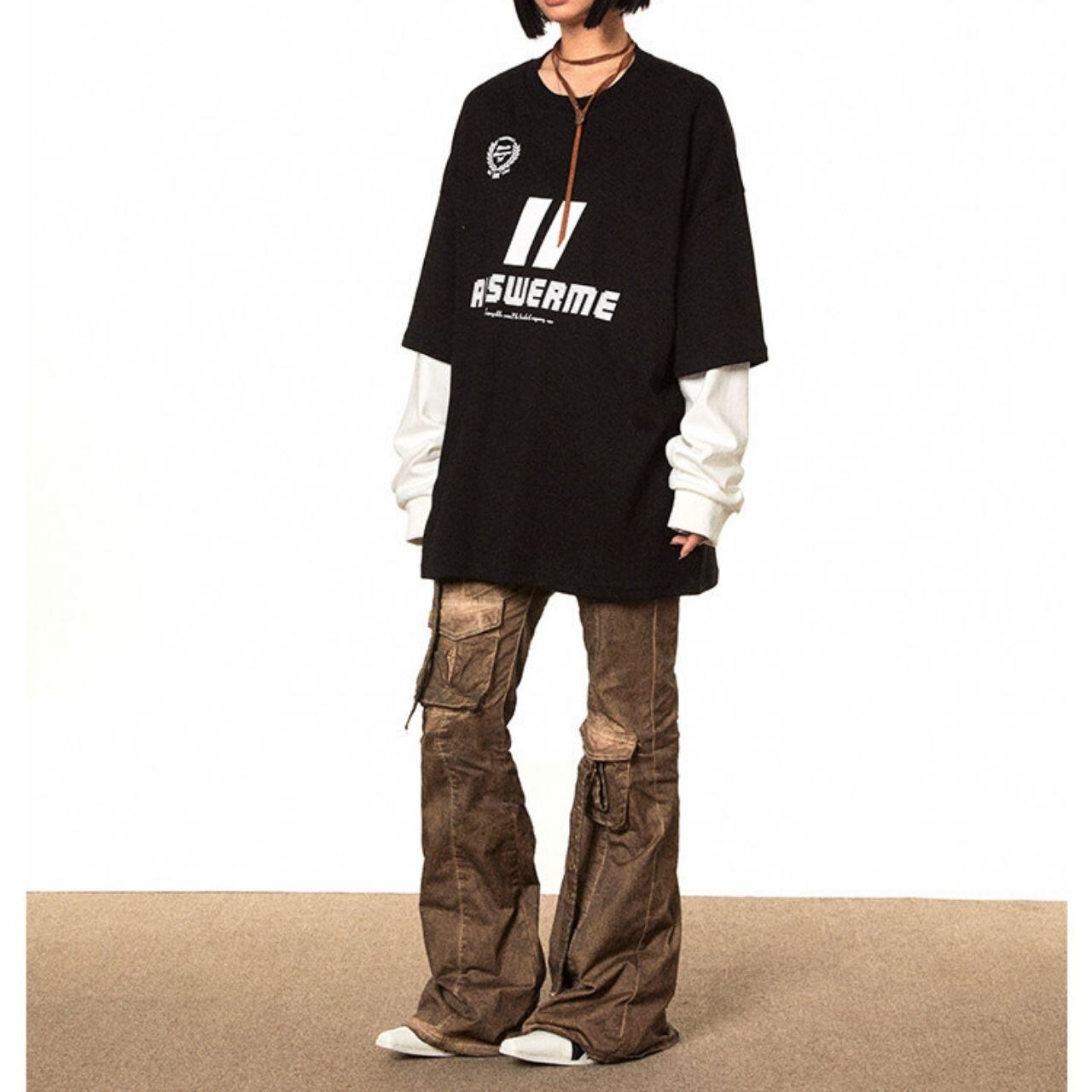 レイヤード風の袖デザインが目を引く、ストリート感漂うロングスリーブトップス。