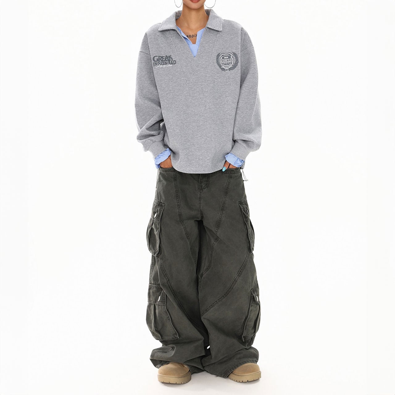 カーゴパンツと合わせて、抜け感のあるストリートカジュアルに。