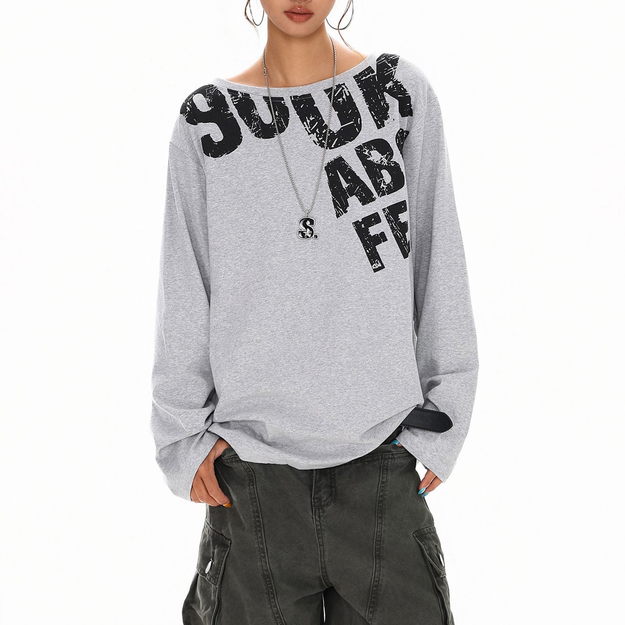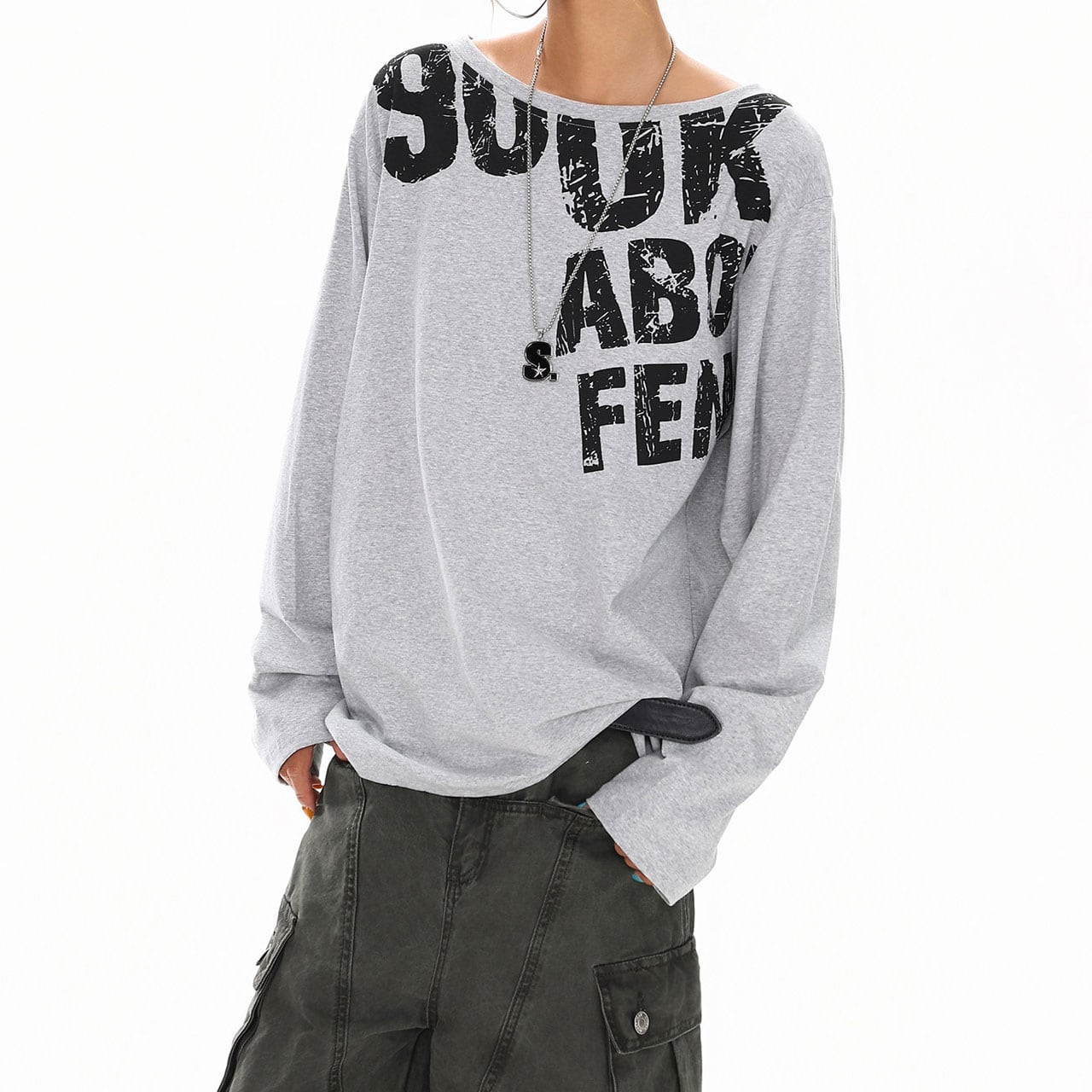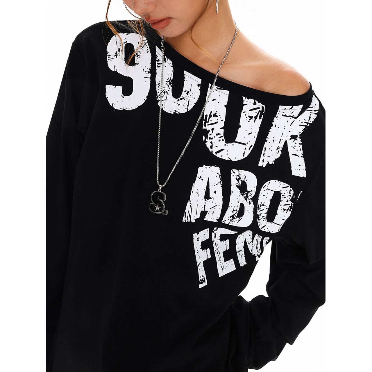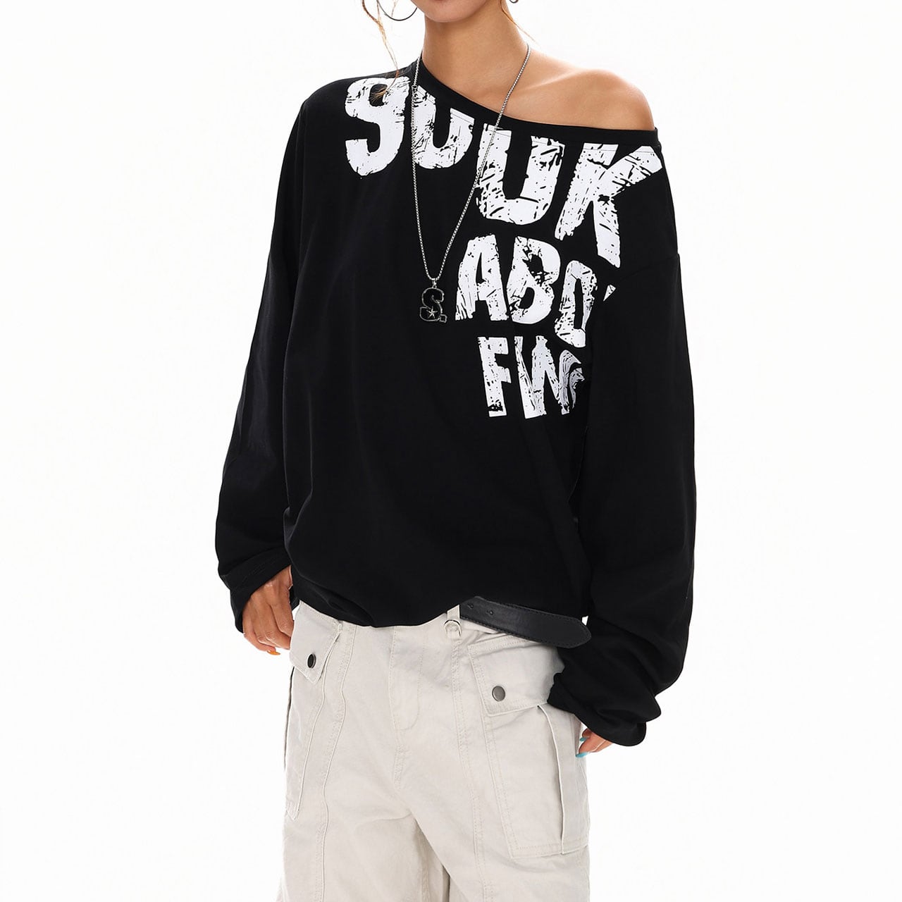 オフショルダーレタリングトップス 3col R01400