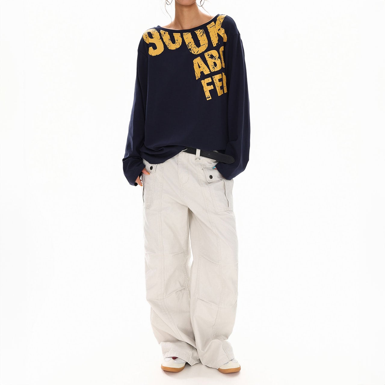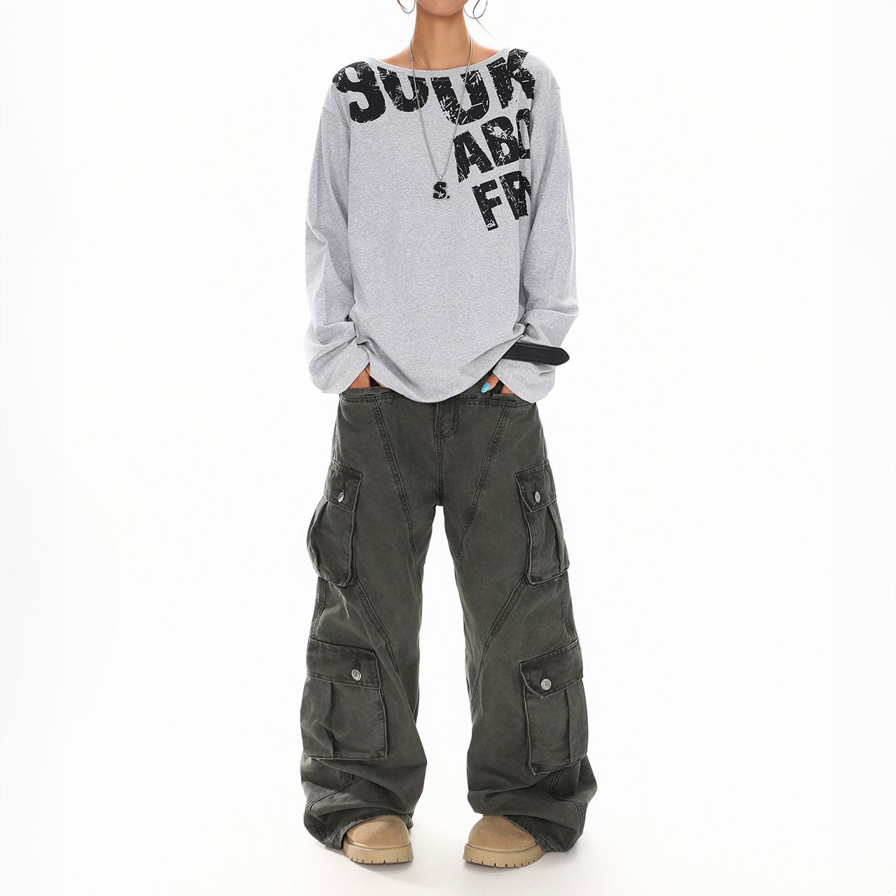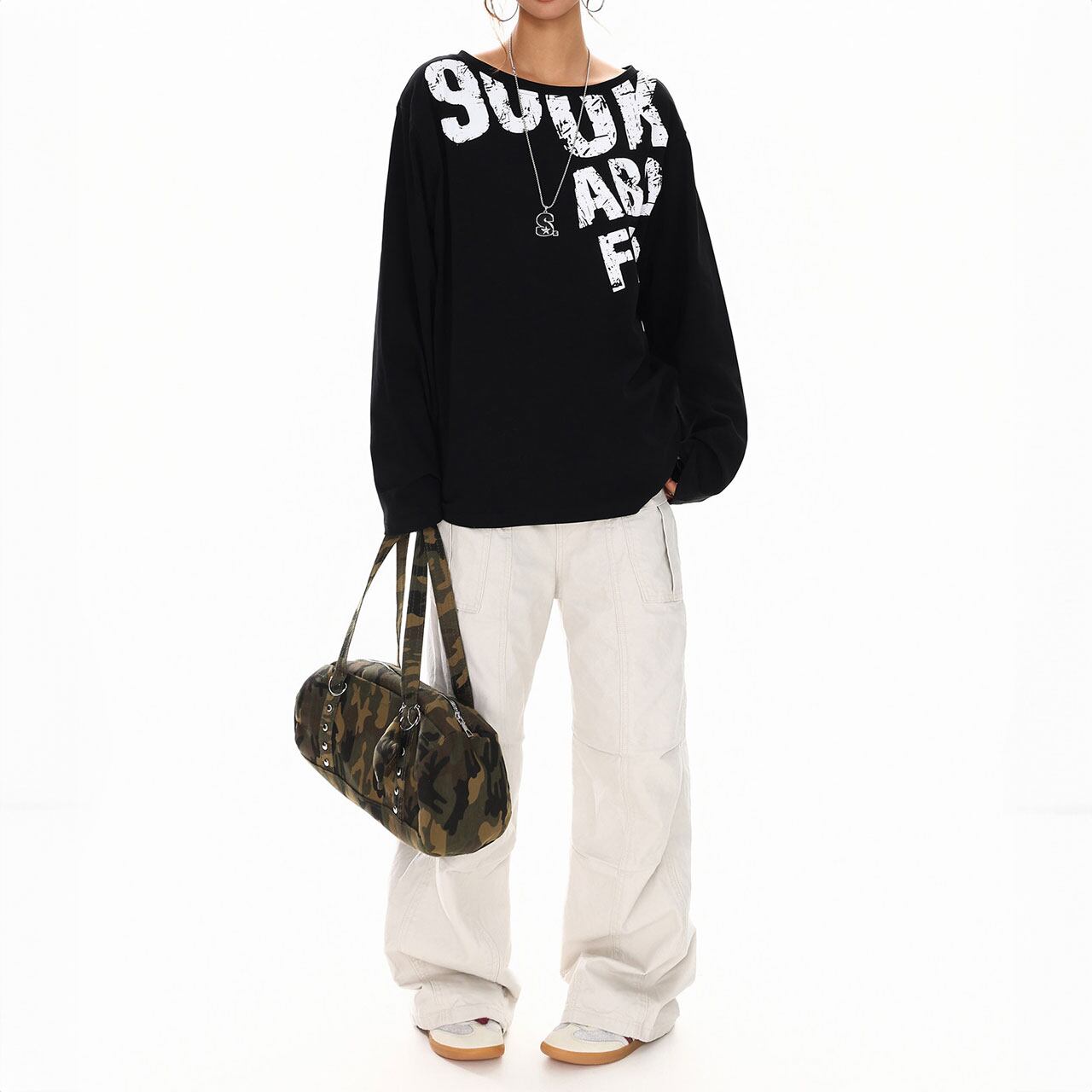 カーゴやワイドパンツと合わせて、ラフなストリートスタイルに。
