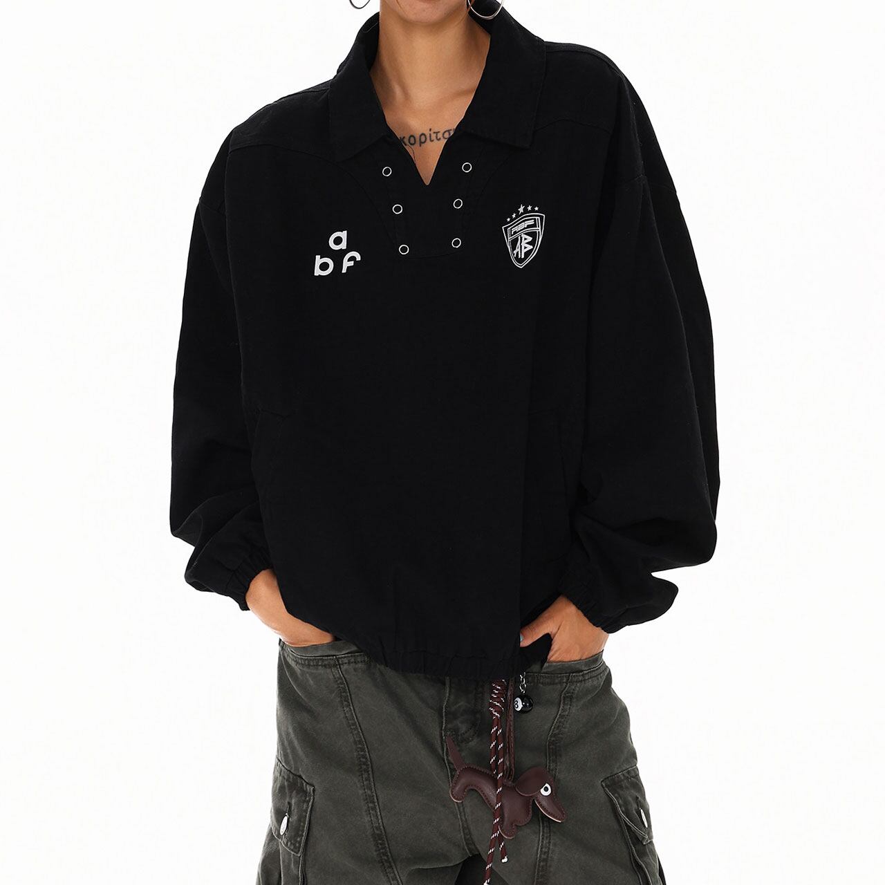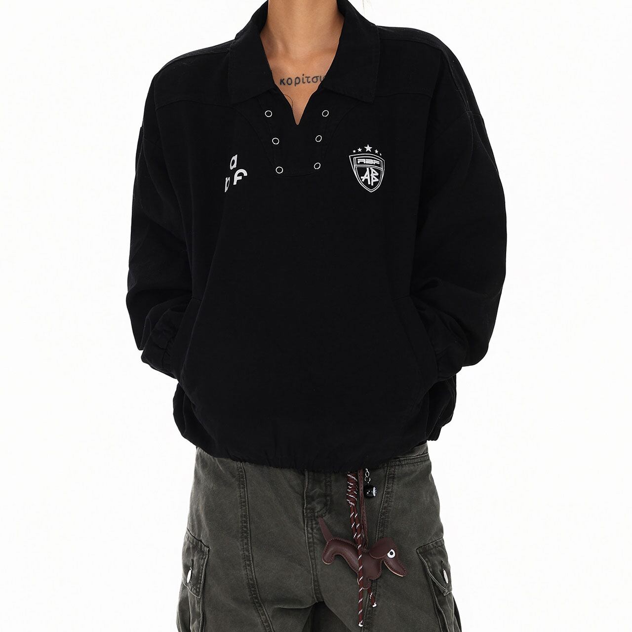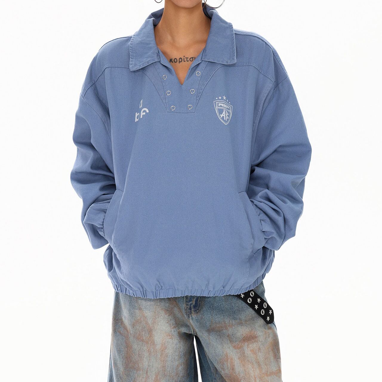 スポーティーな襟付きデザインに、抜け感のあるルーズシルエットが魅力。