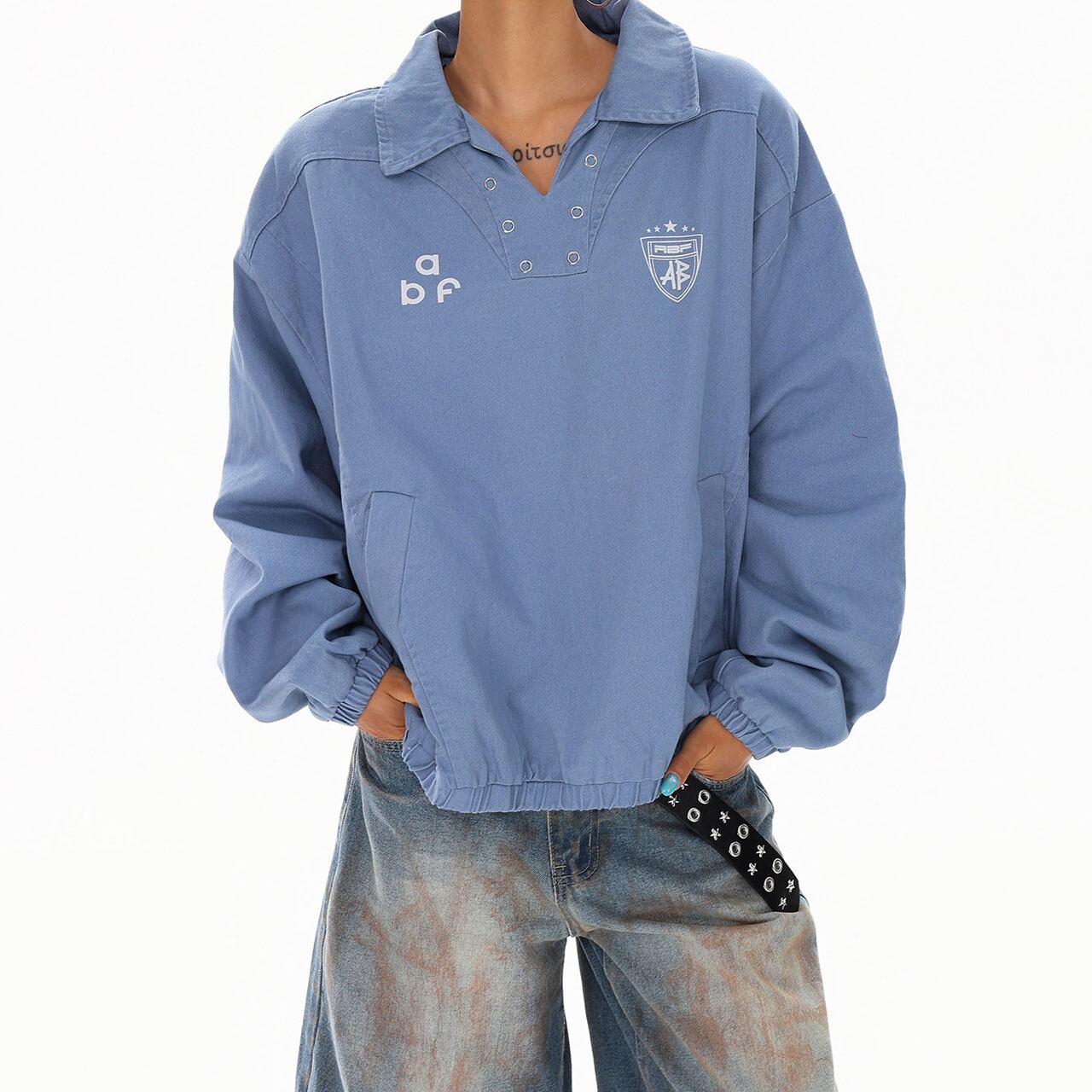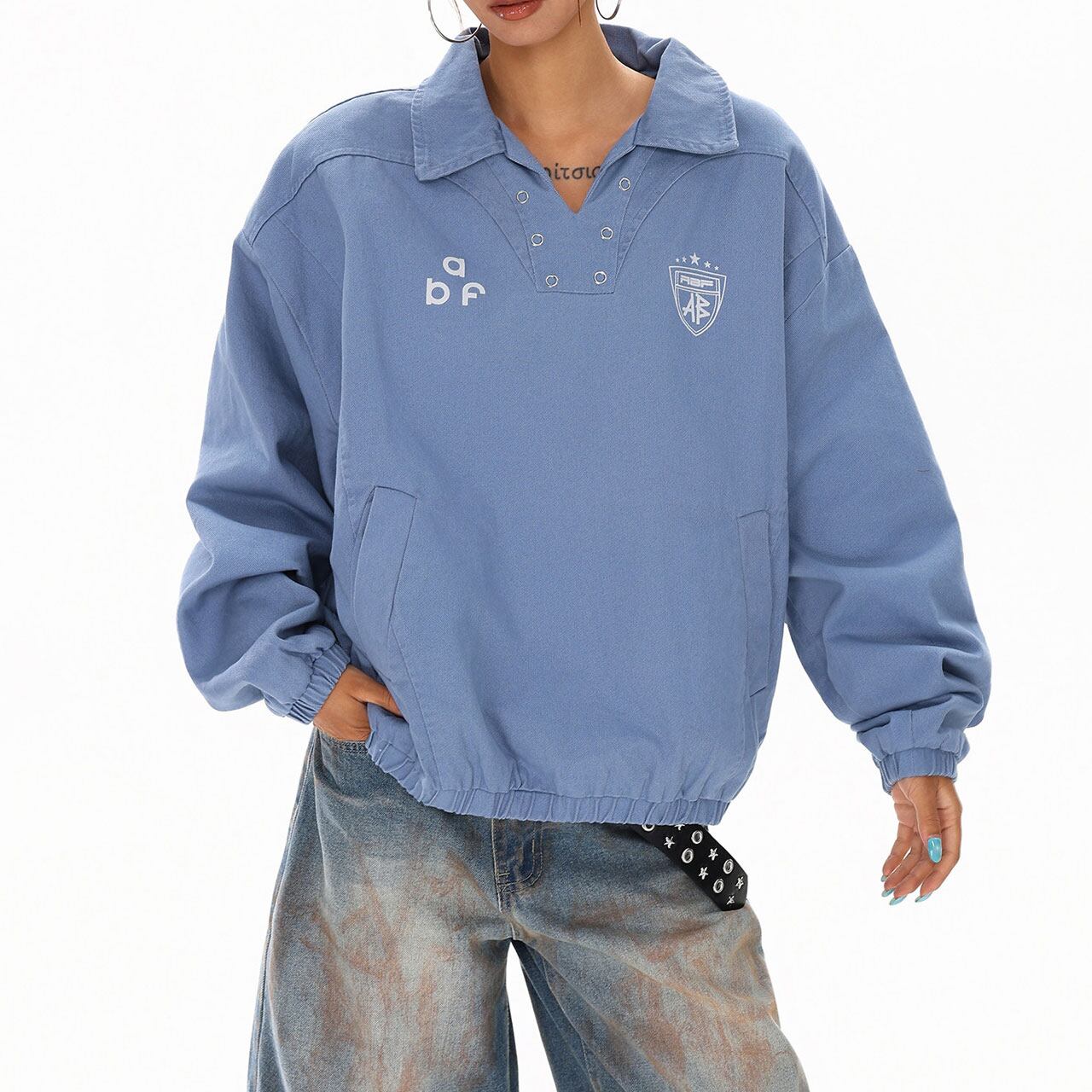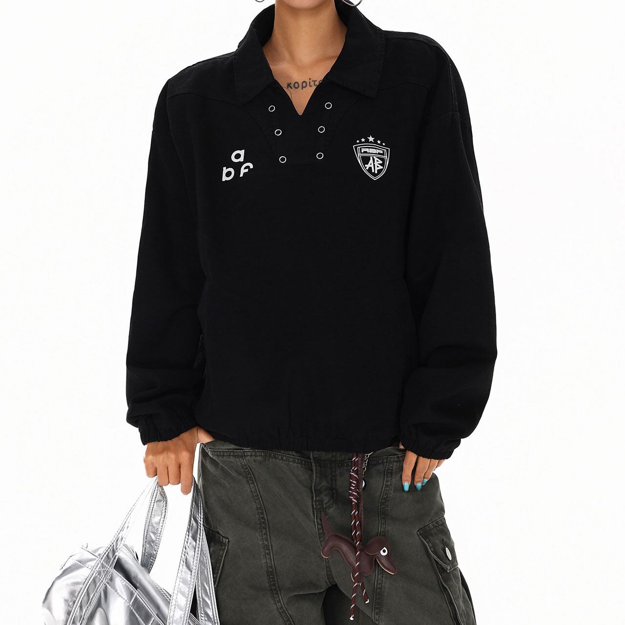スポーティーな襟付きデザインに、抜け感のあるルーズシルエットが魅力。