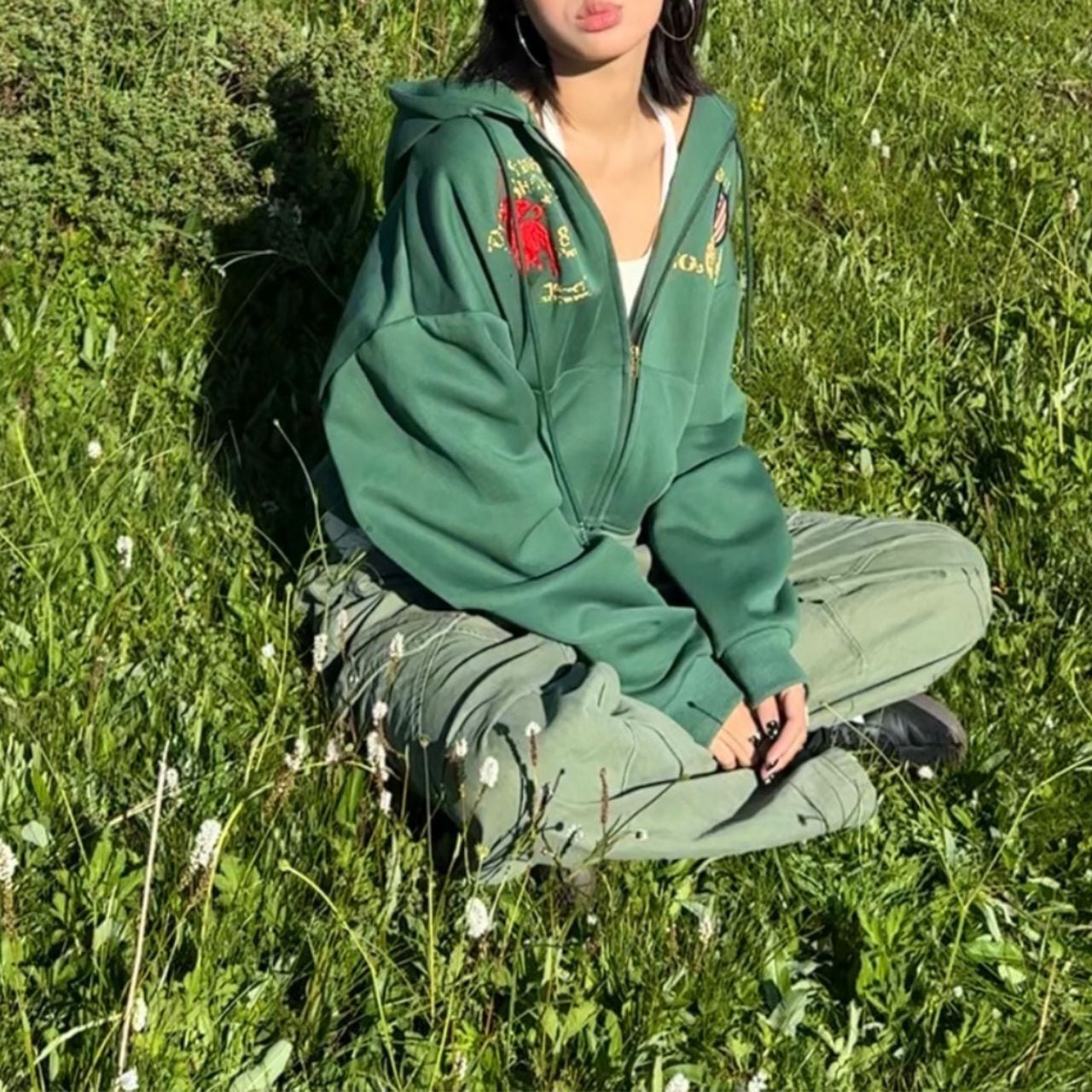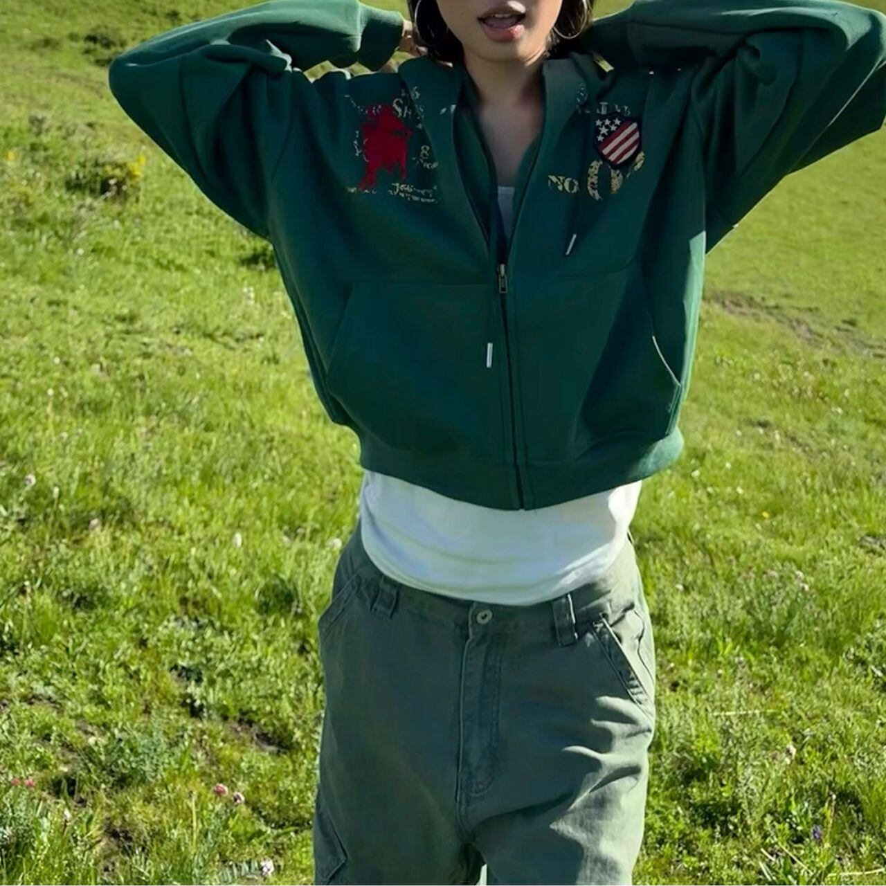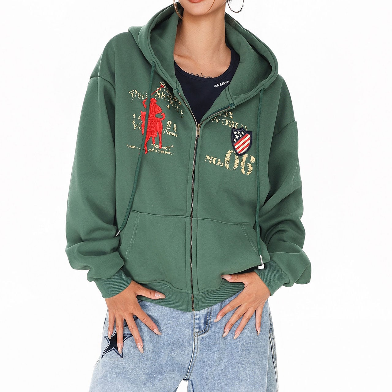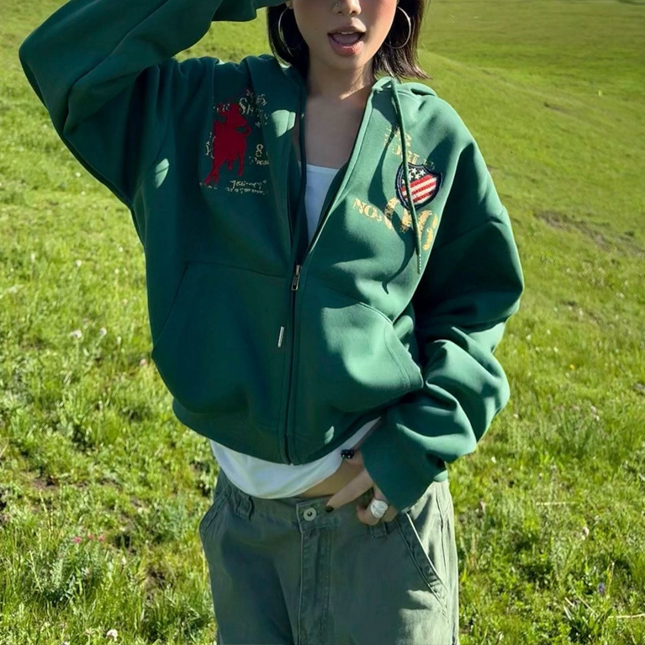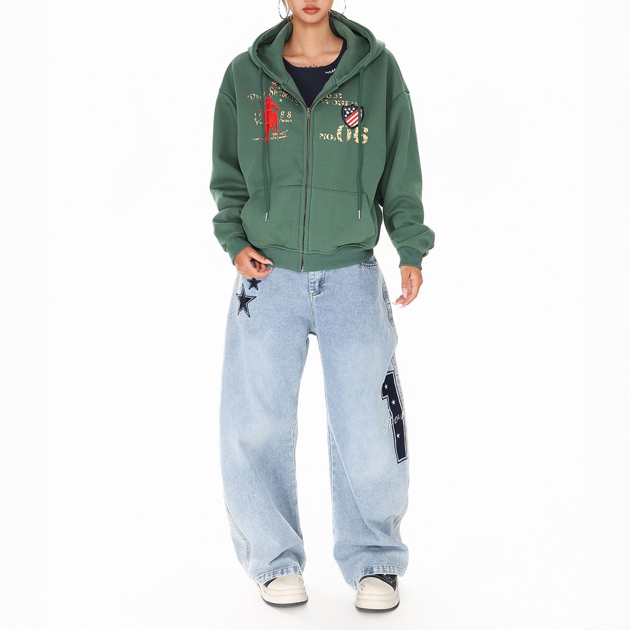 ヴィンテージライクなプリントが目を引く、ジップアップフーディー。
