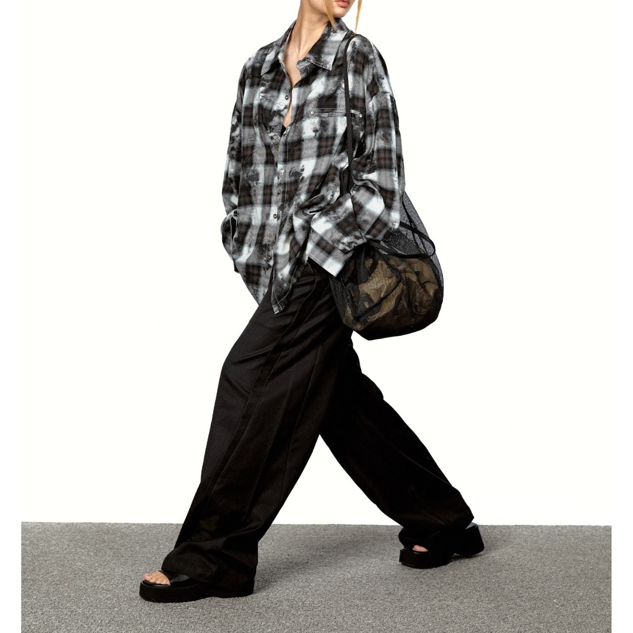 モノトーンのチェックにムラ感を効かせた、エッジのあるシャツデザイン。