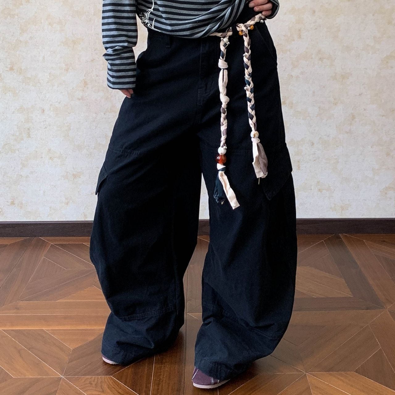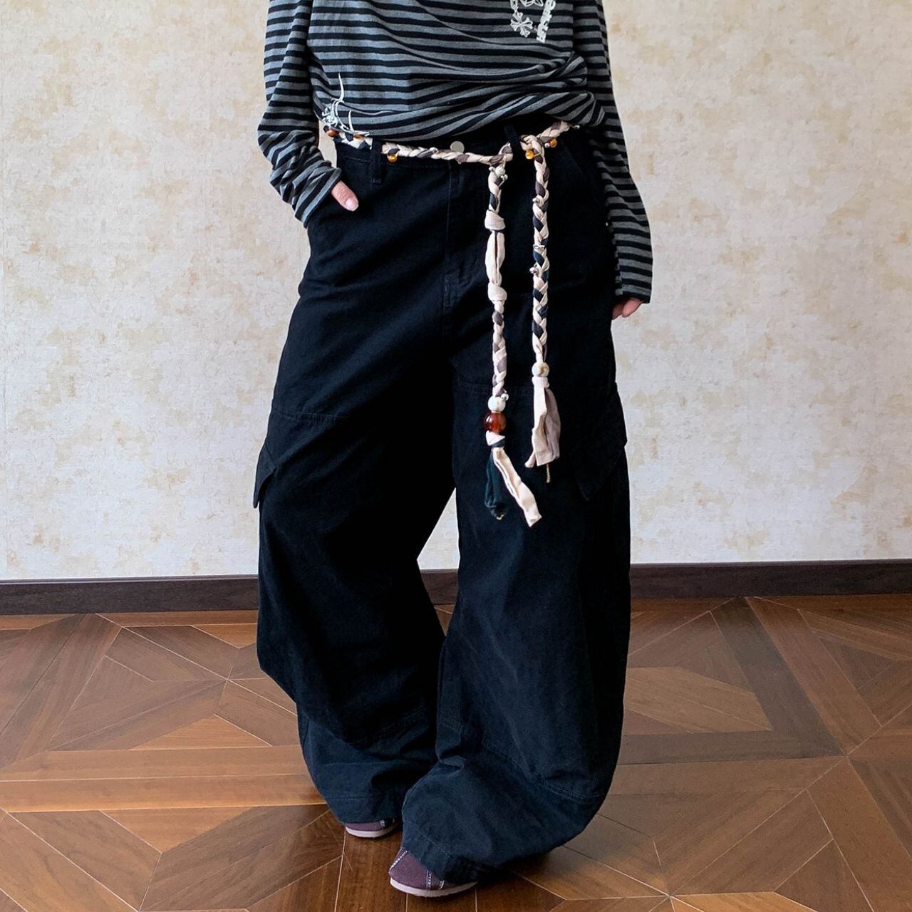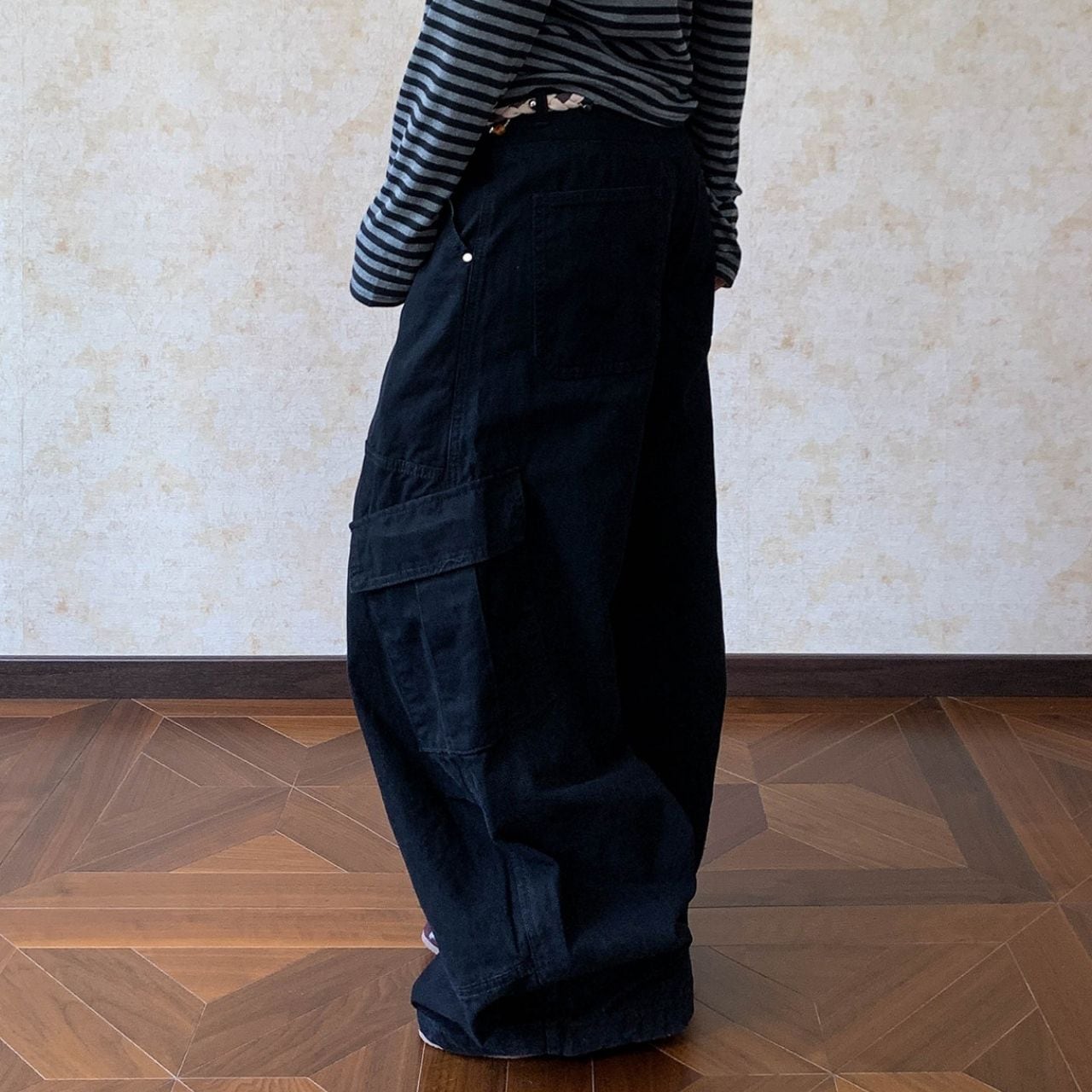 立体感のあるワイドシルエットが目を引く、ストリートライクなカーゴパンツ。