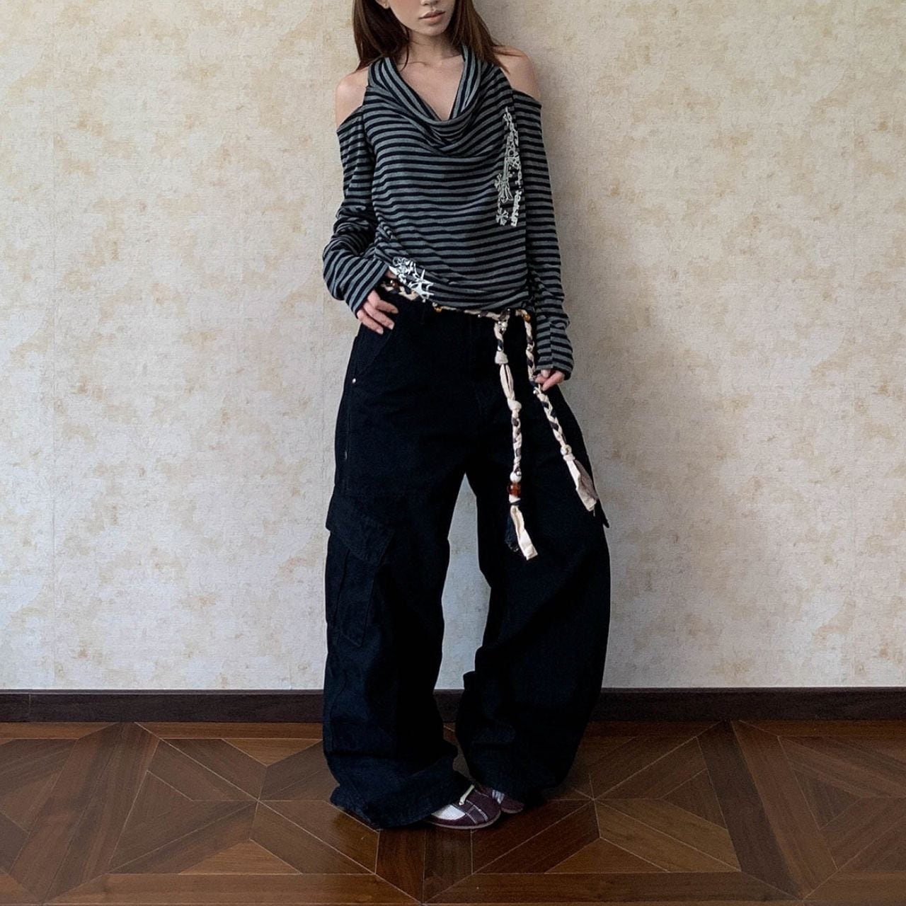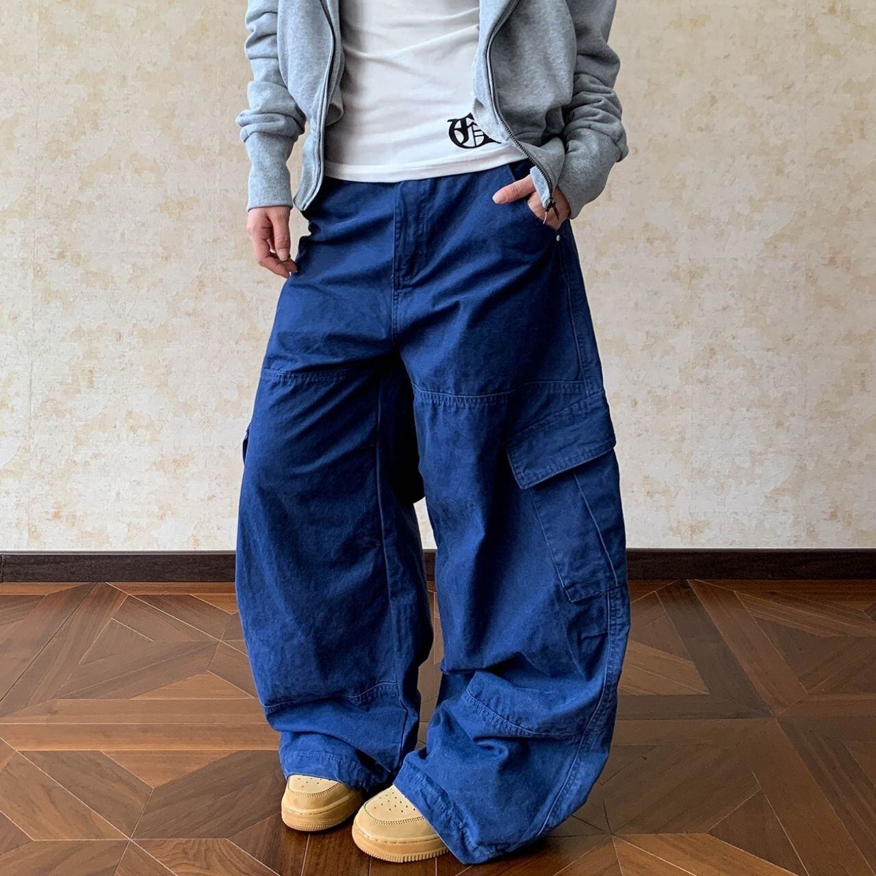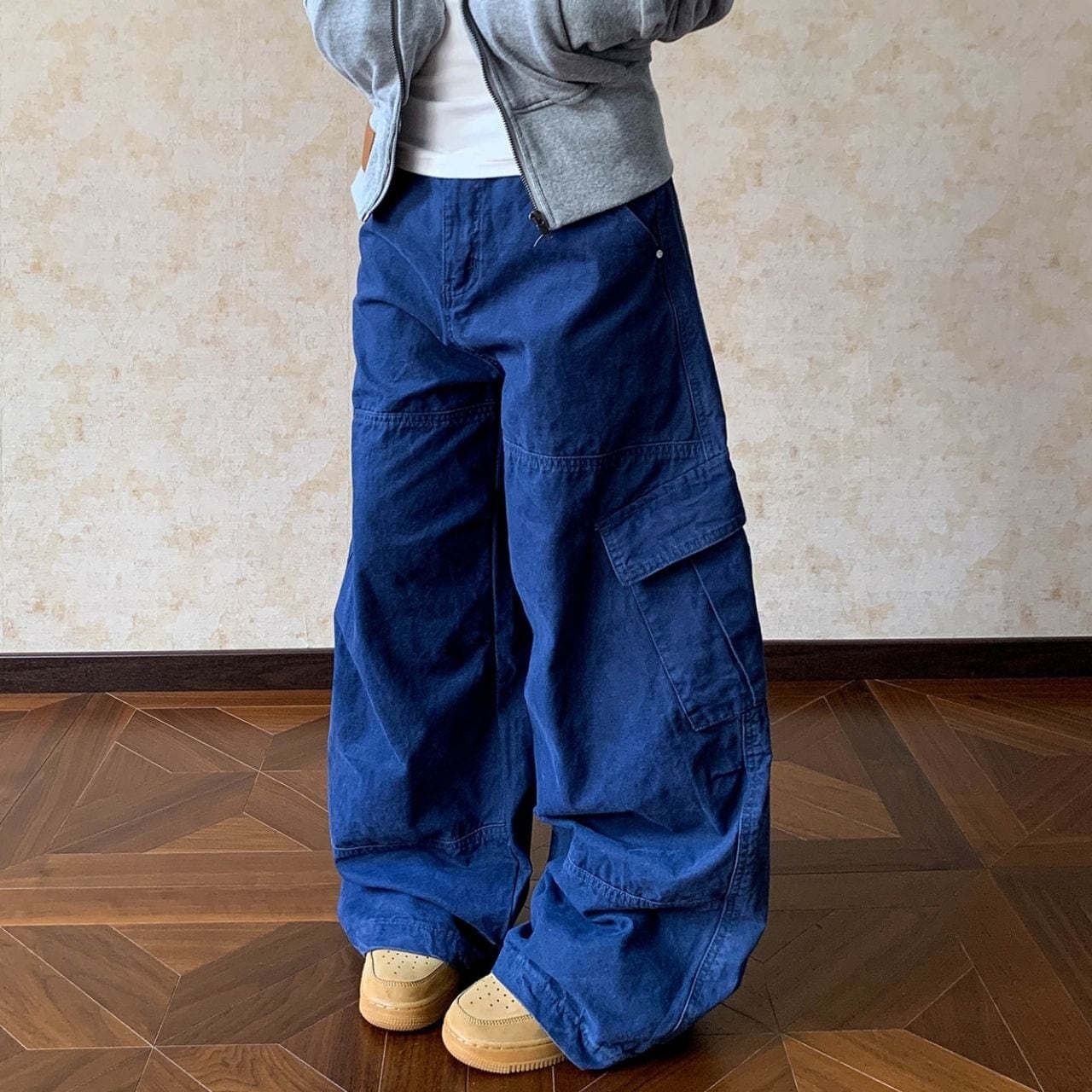 立体感のあるワイドシルエットが目を引く、ストリートライクなカーゴパンツ。