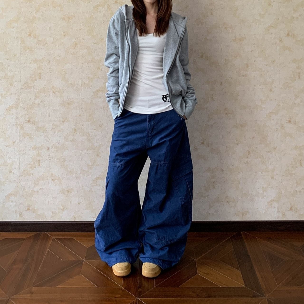 スニーカー合わせで、ラフさを活かしたカジュアルスタイルがおすすめ。
