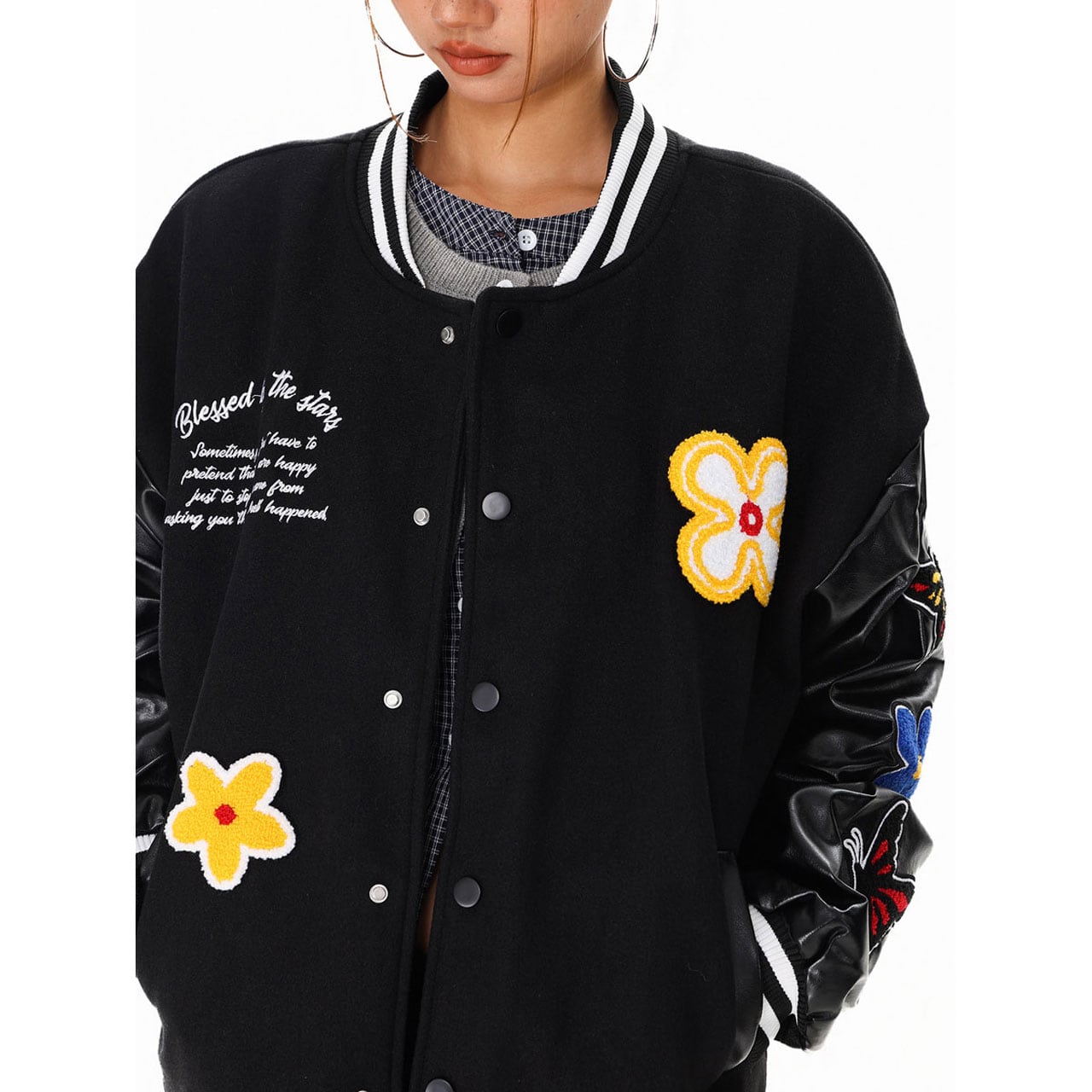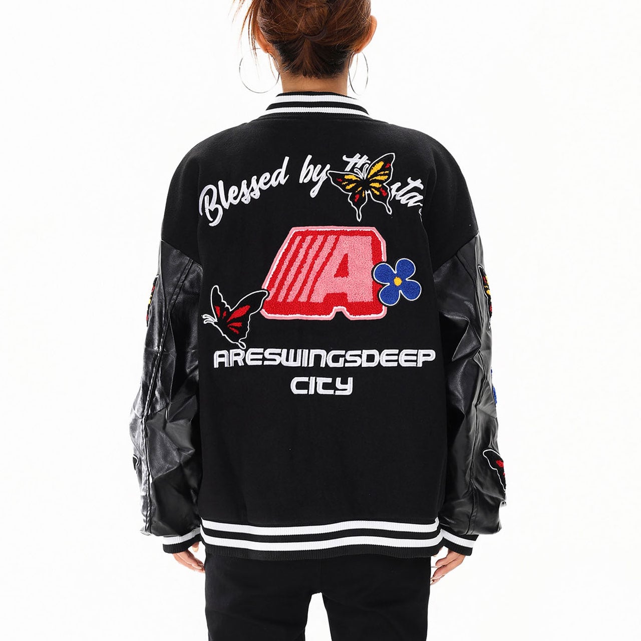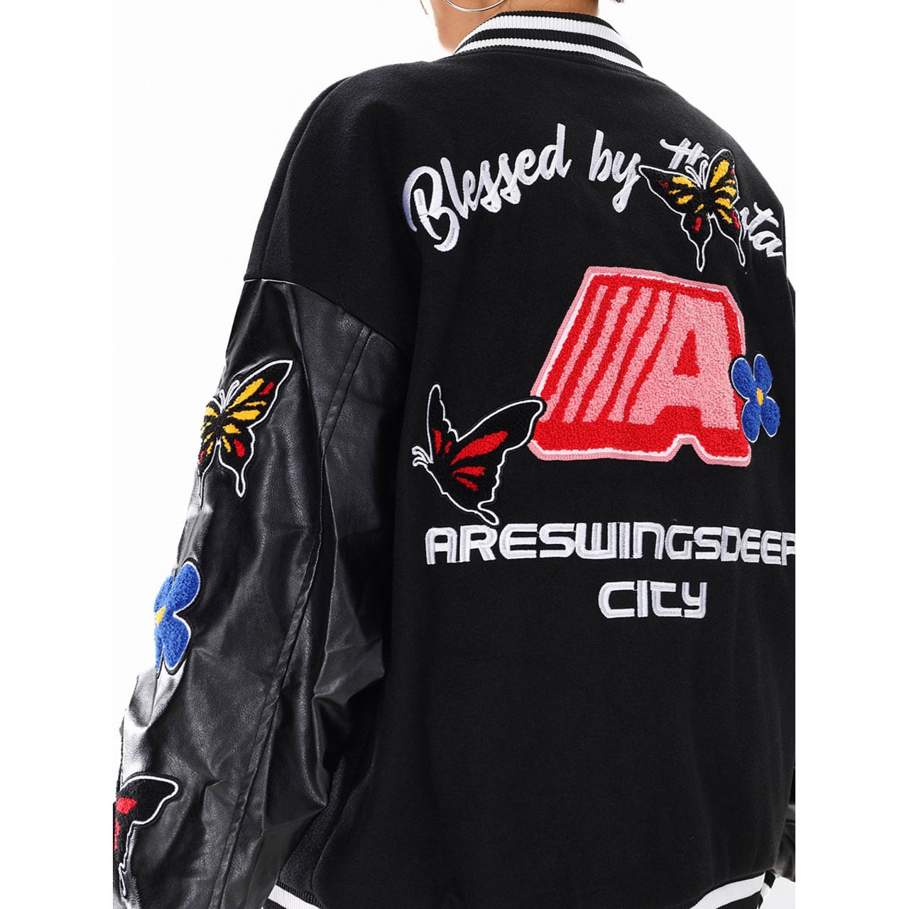 バタフライフラワーワッペンスタジアムブルゾン 2col R01427