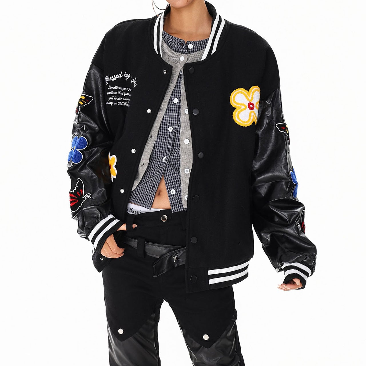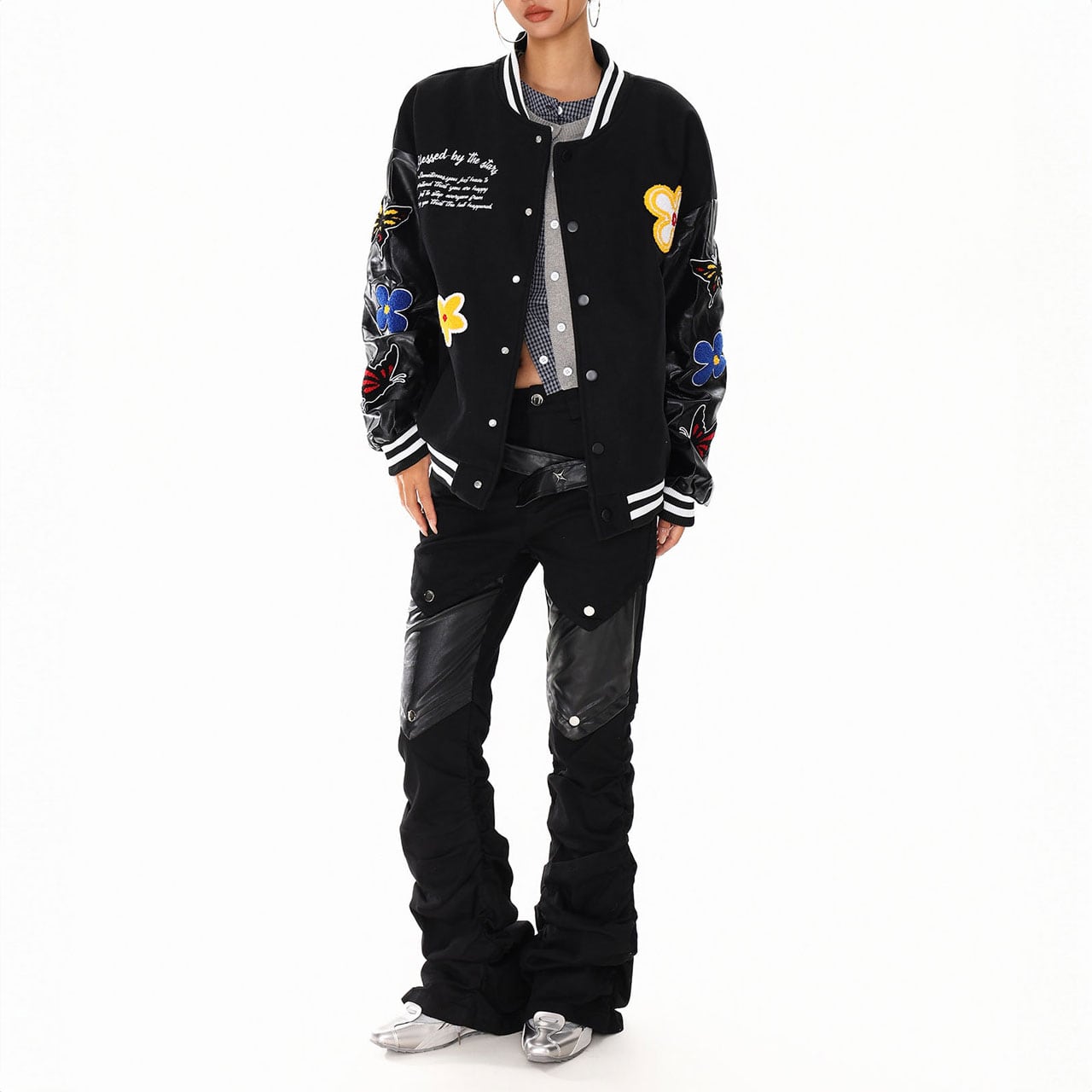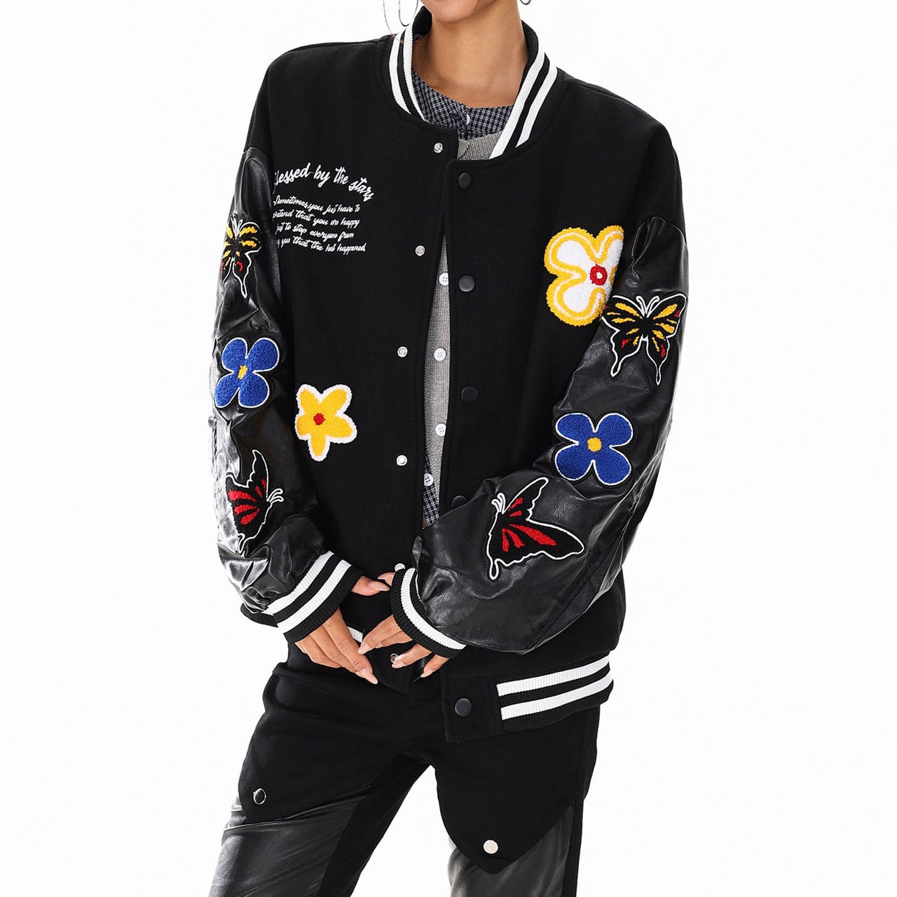 バタフライフラワーワッペンスタジアムブルゾン 2col R01427