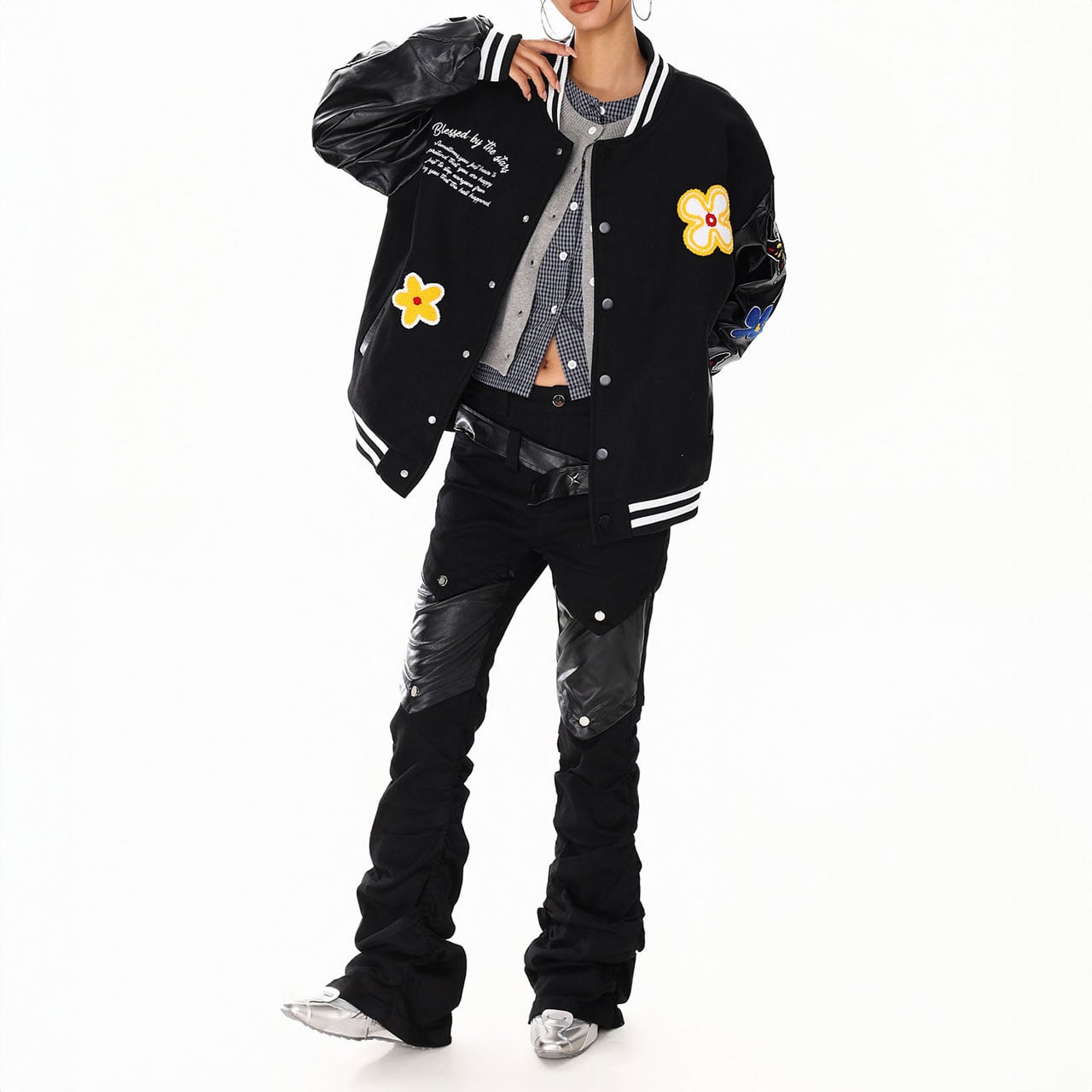 バックに大胆なロゴ&モチーフを配置した、視線を引きつけるスタジャン。