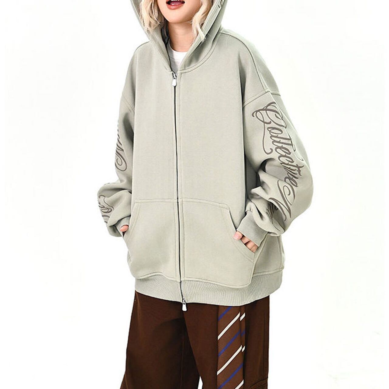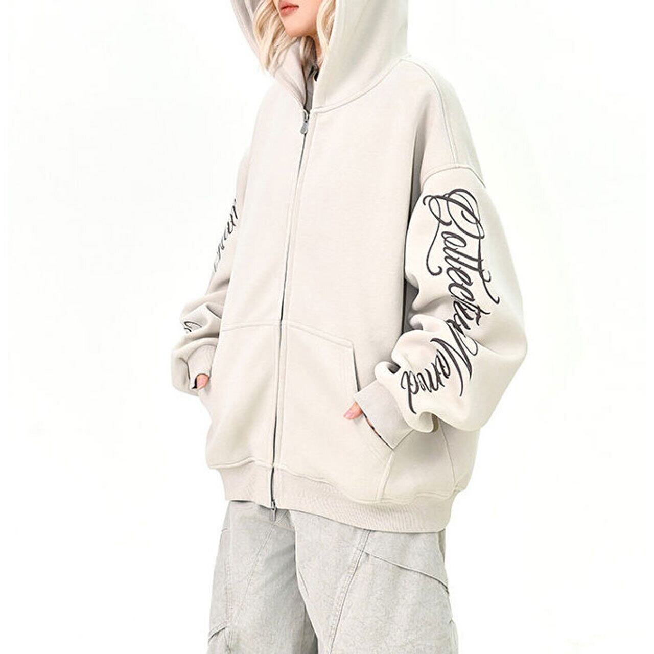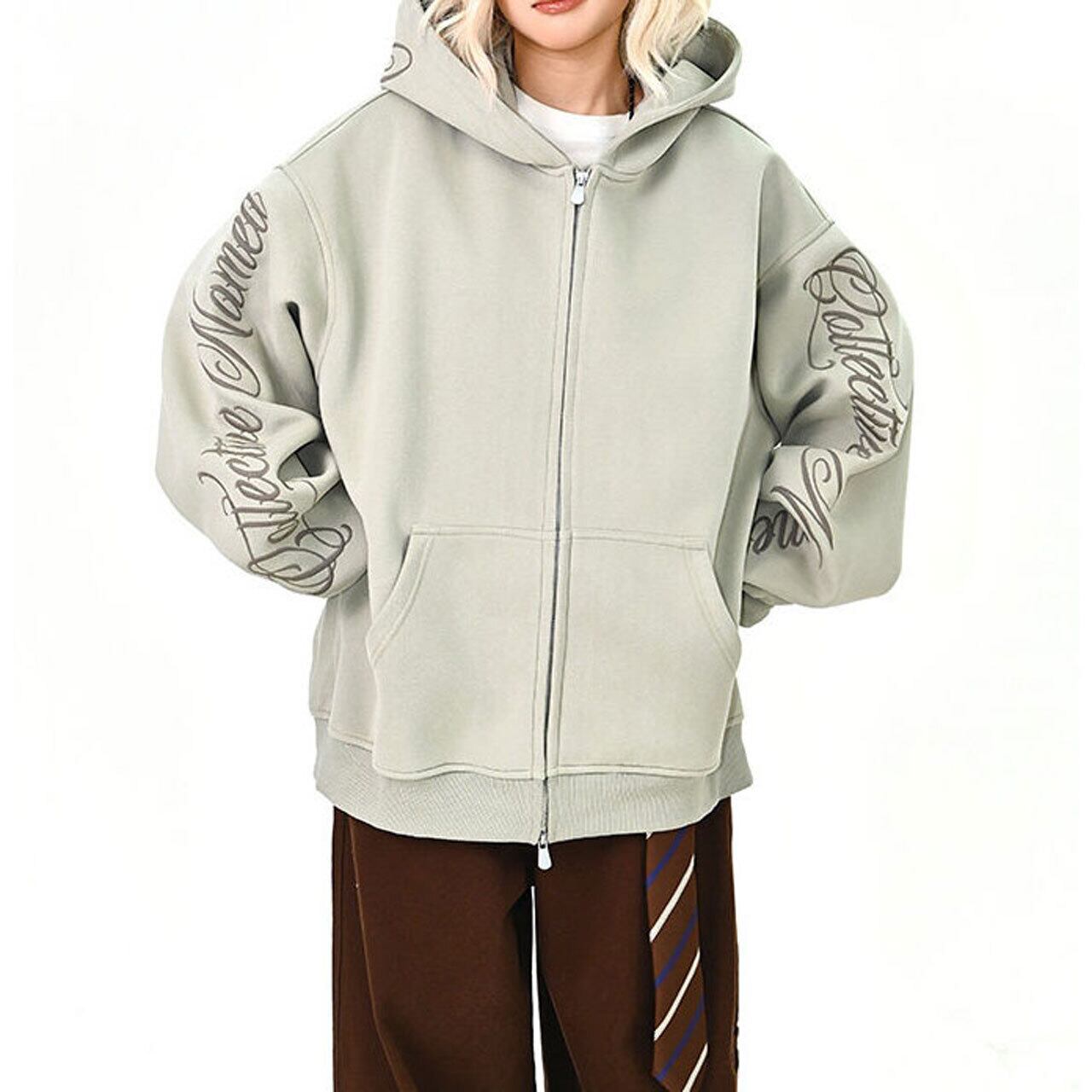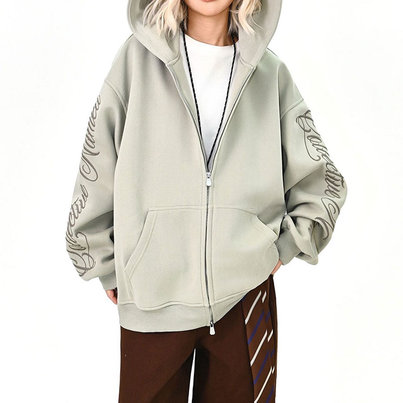スリーブスクリプトロゴジップフーディ 3col R01439