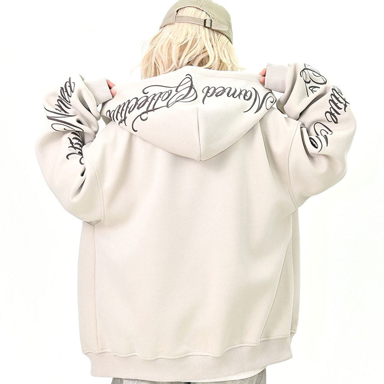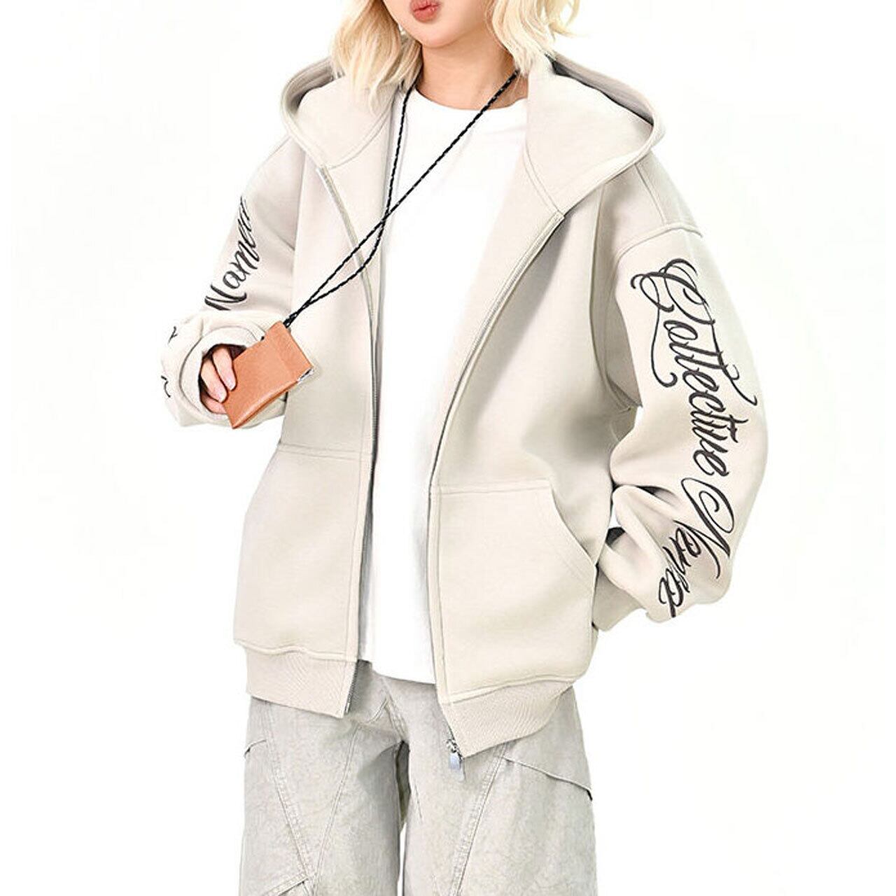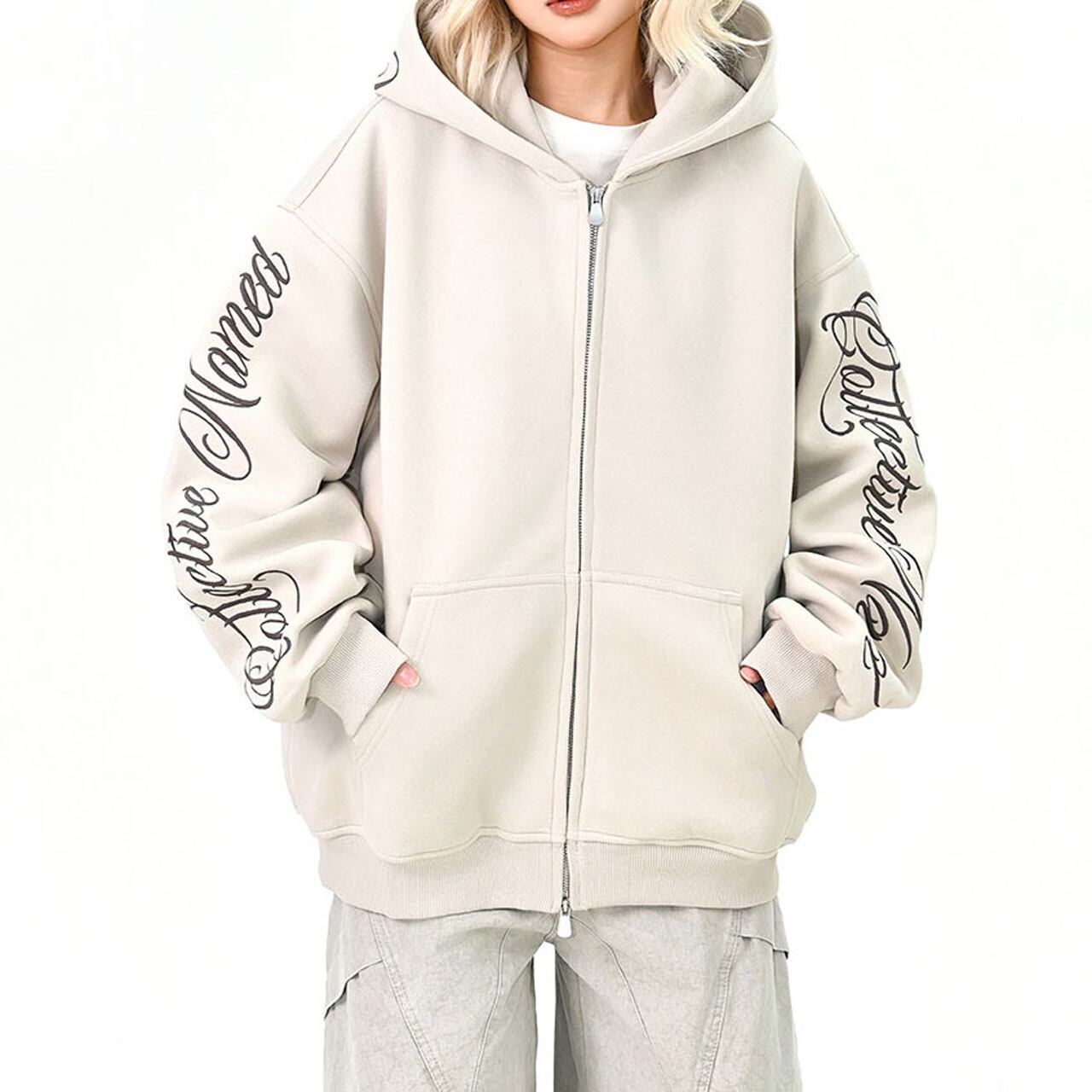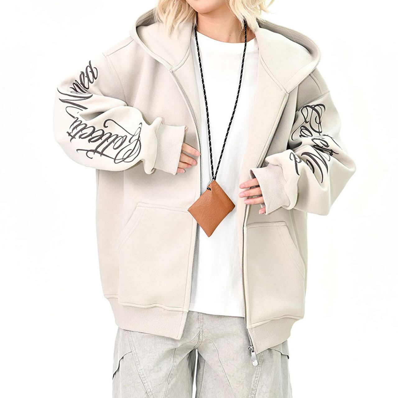 スリーブスクリプトロゴジップフーディ 3col R01439