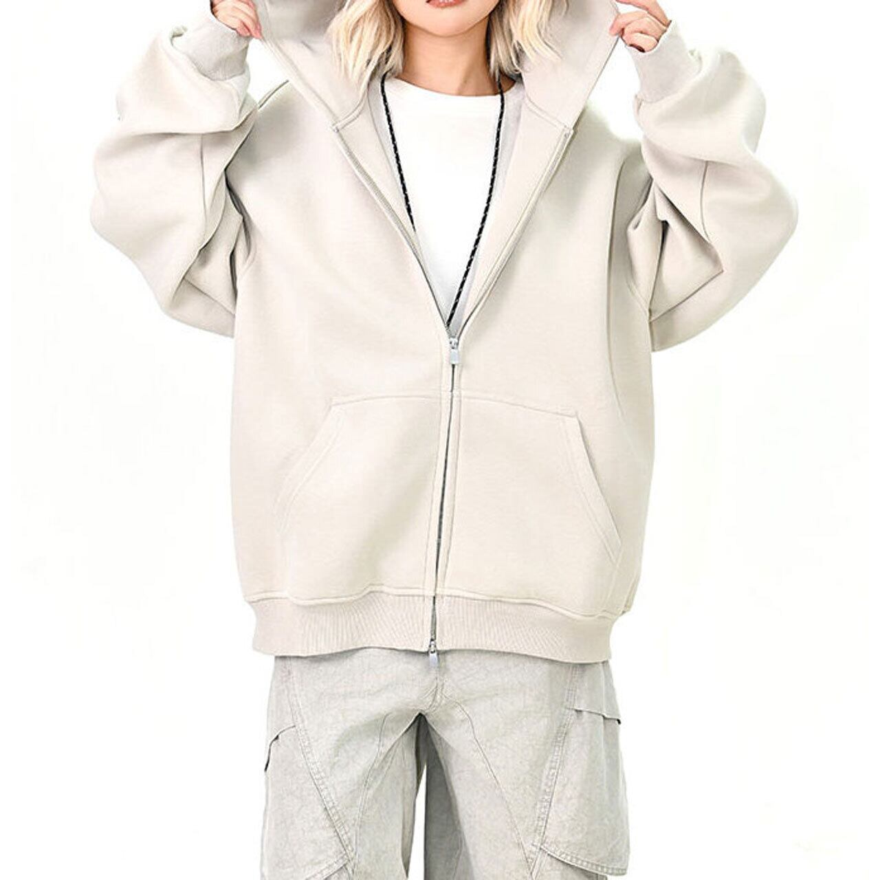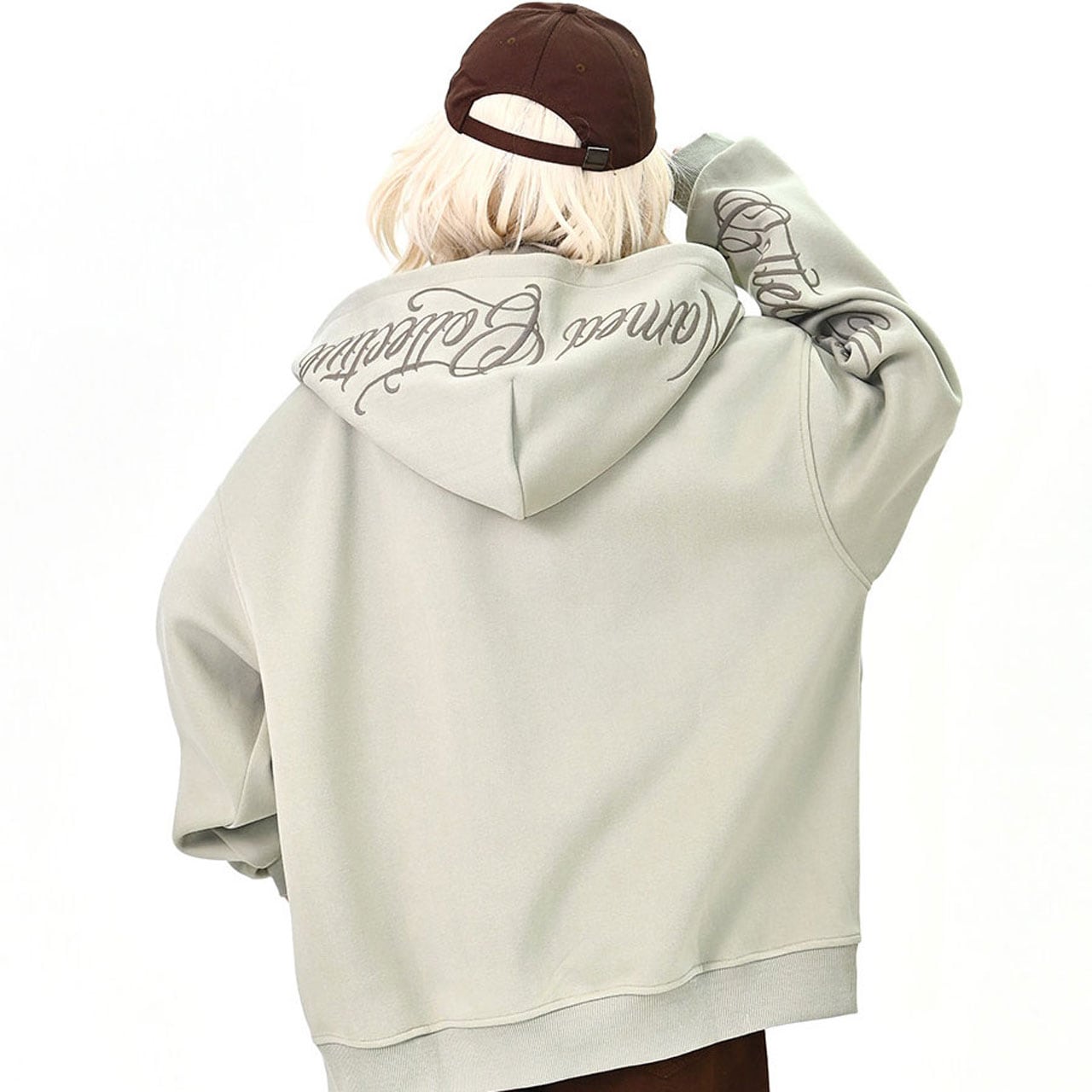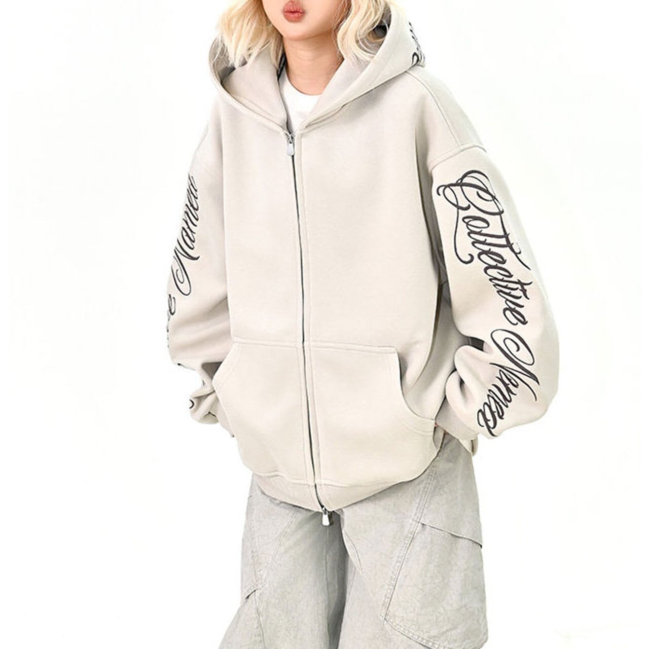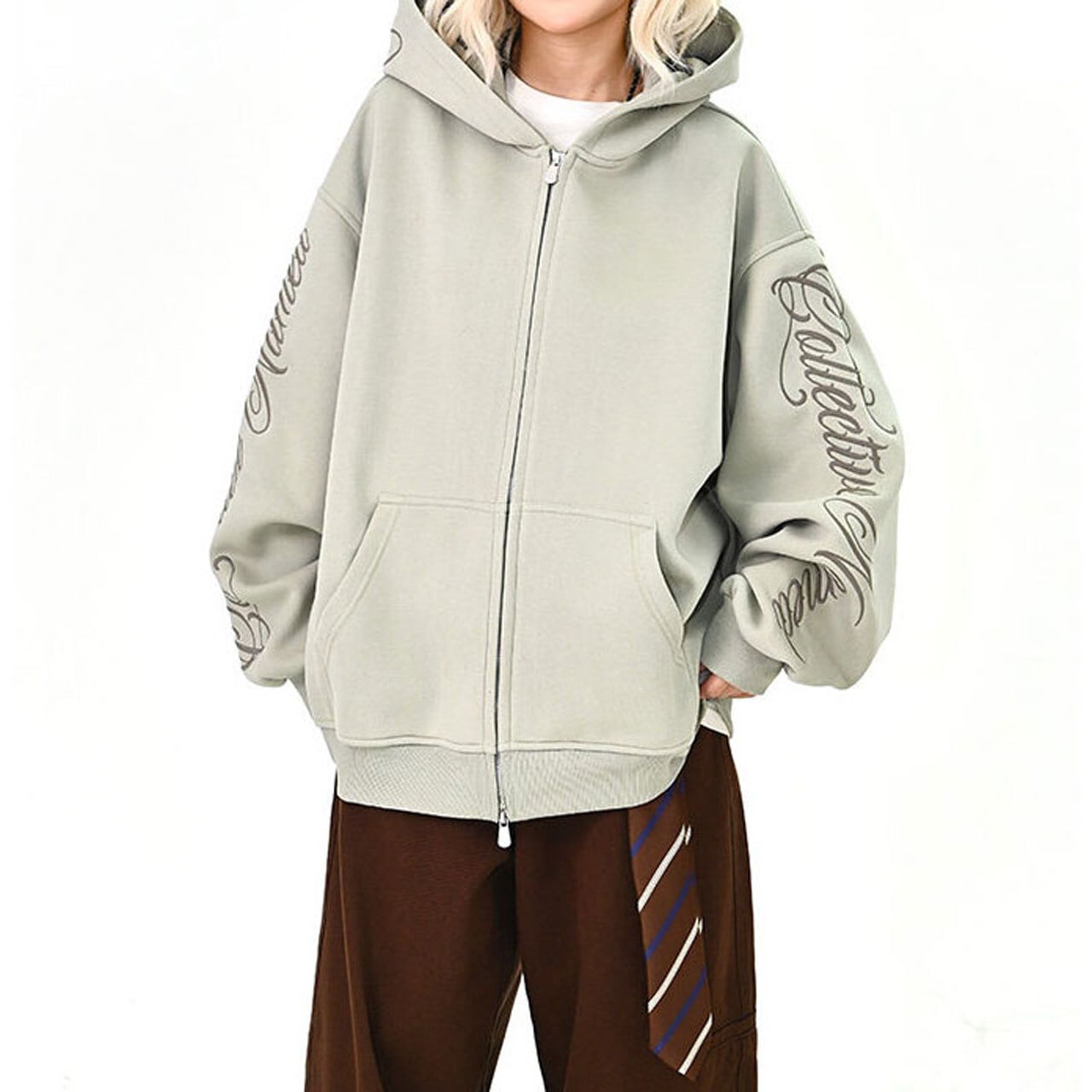 スリーブスクリプトロゴジップフーディ 3col R01439