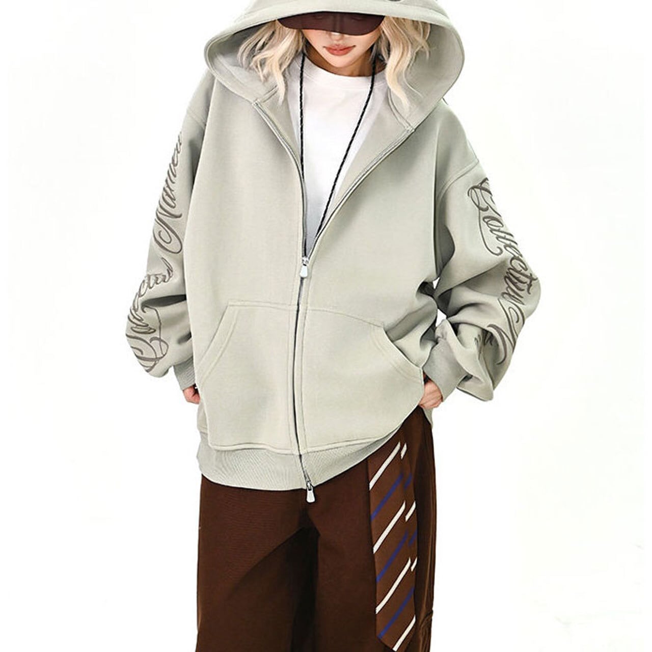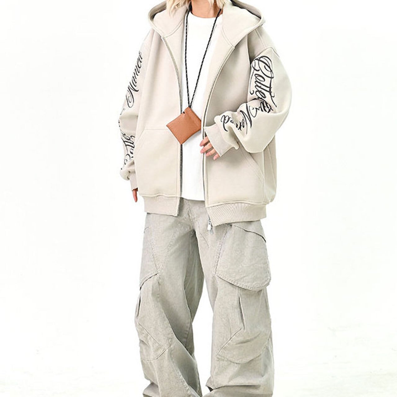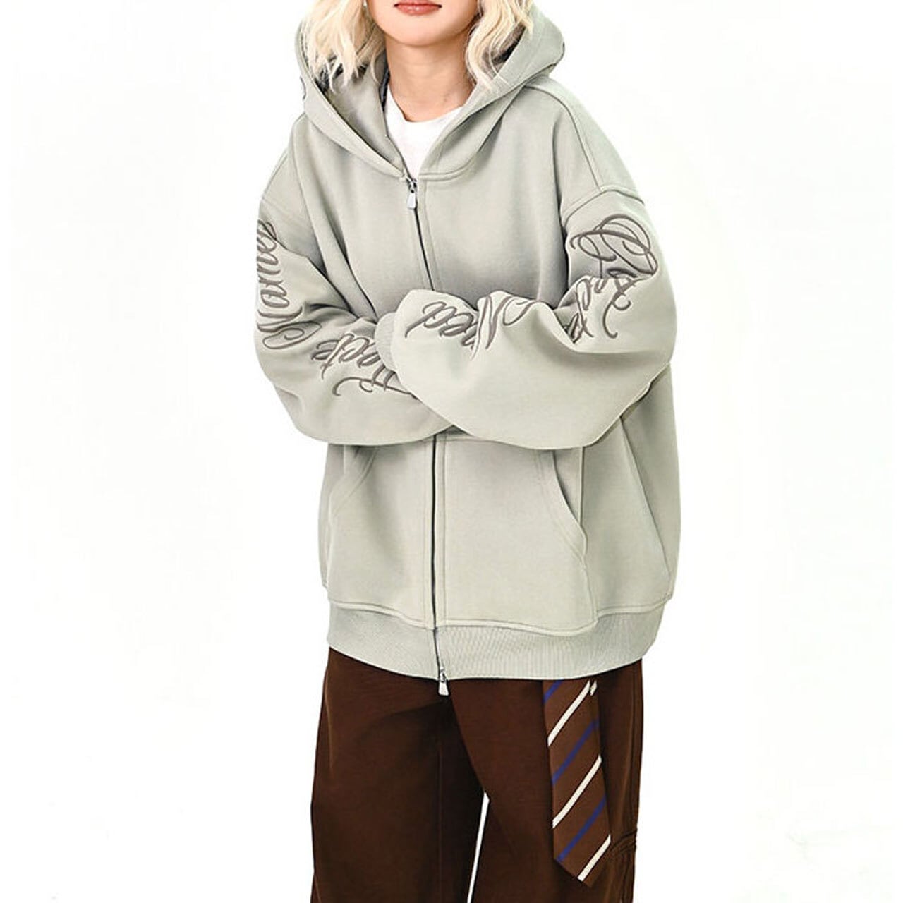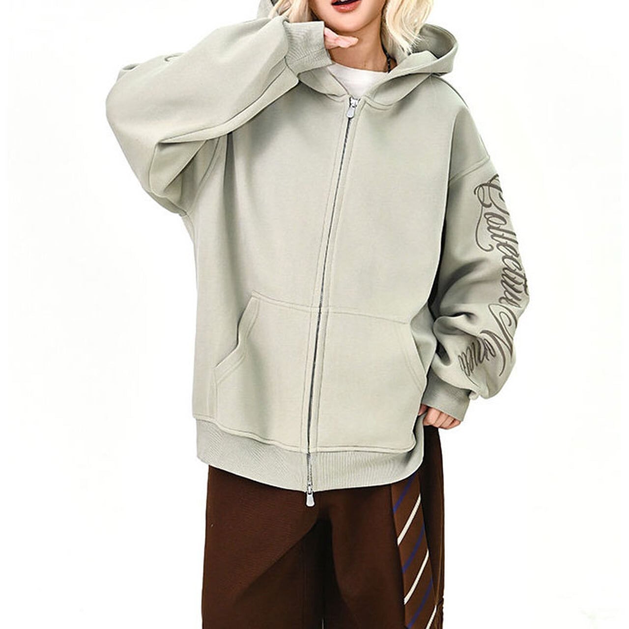 スリーブスクリプトロゴジップフーディ 3col R01439