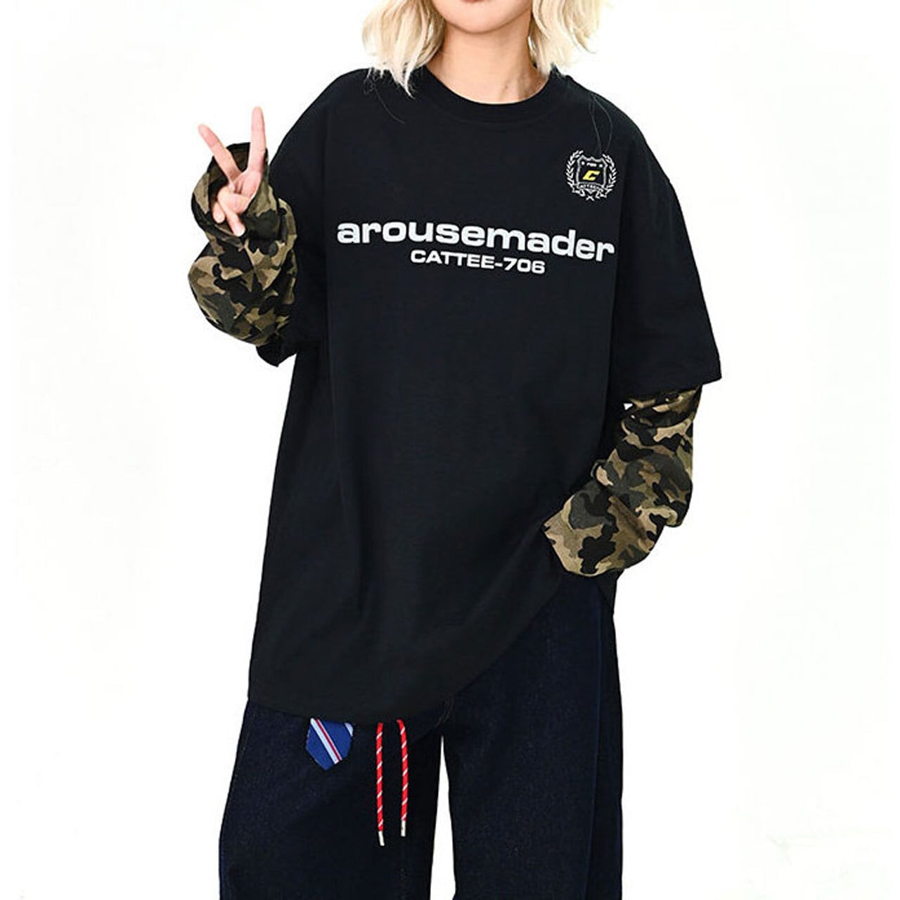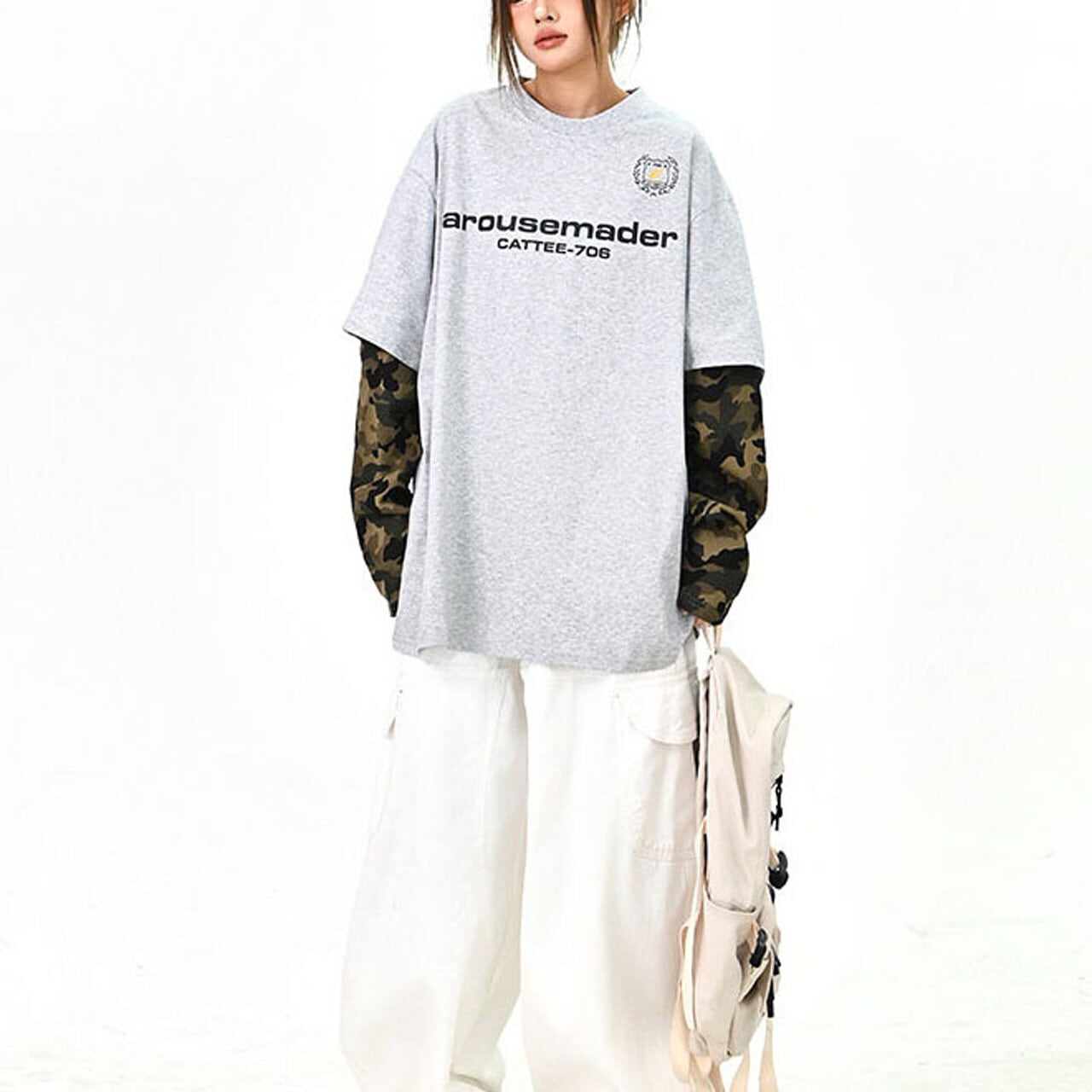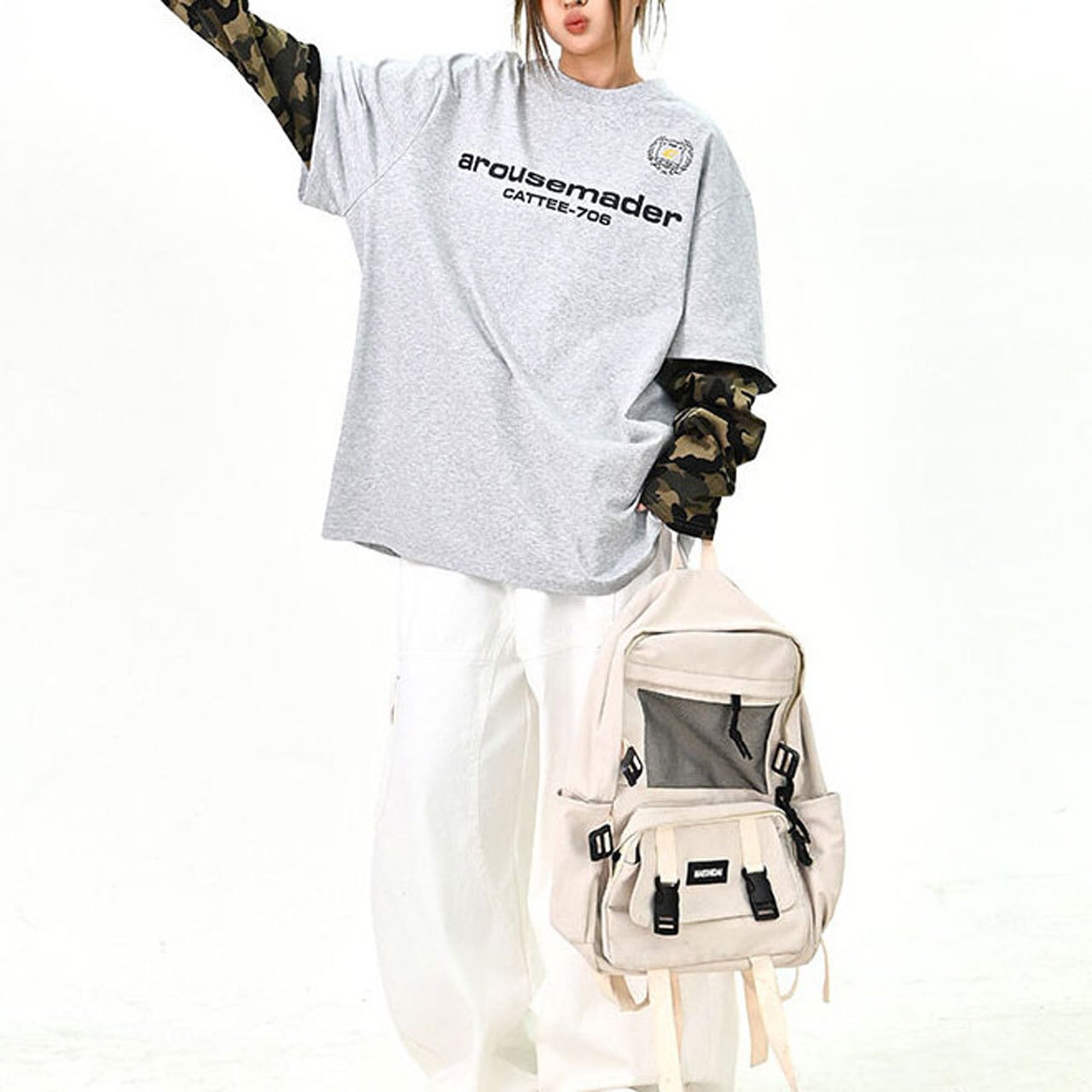 カーゴやワイドパンツと合わせて、ストリート感のあるスタイリングに。