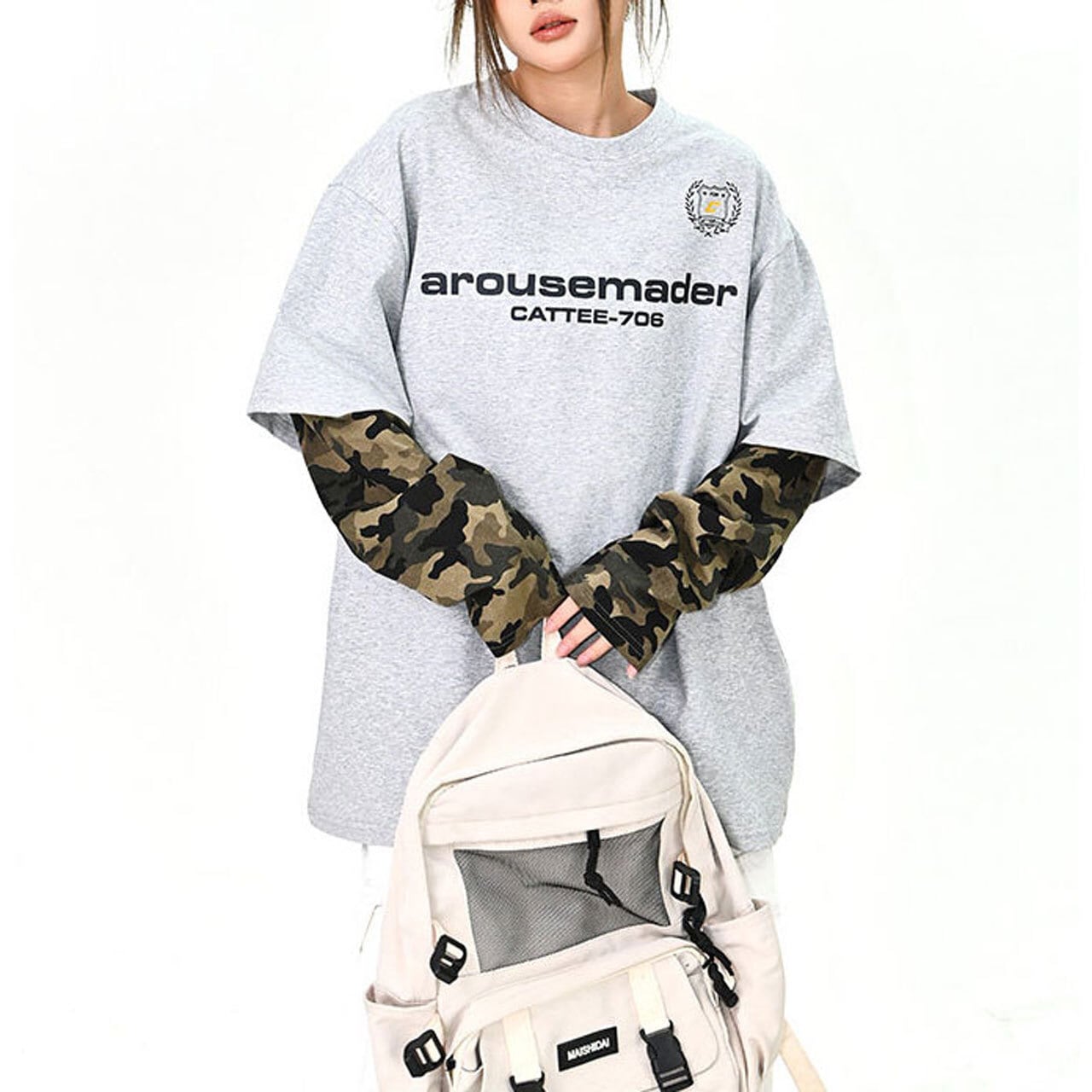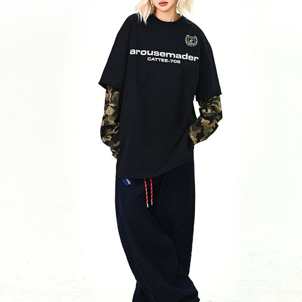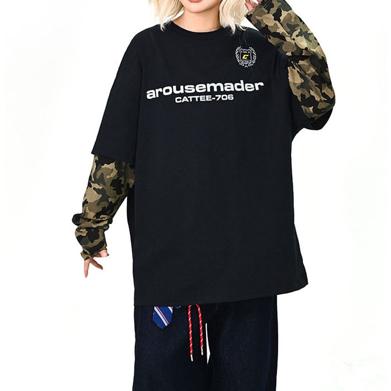 カーゴやワイドパンツと合わせて、ストリート感のあるスタイリングに。