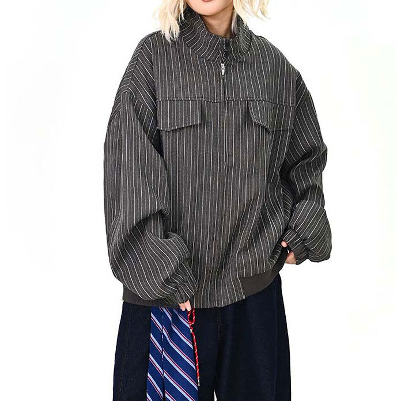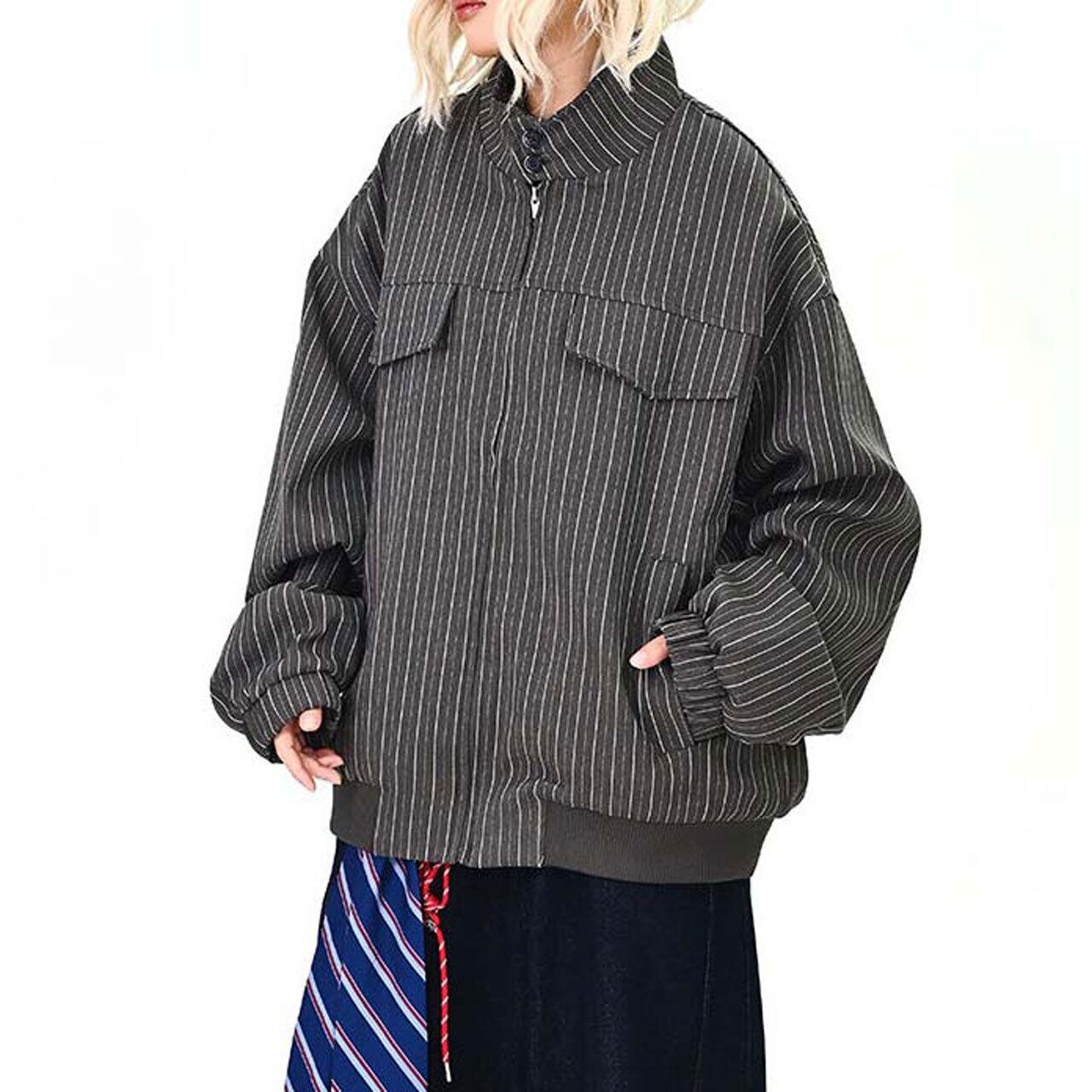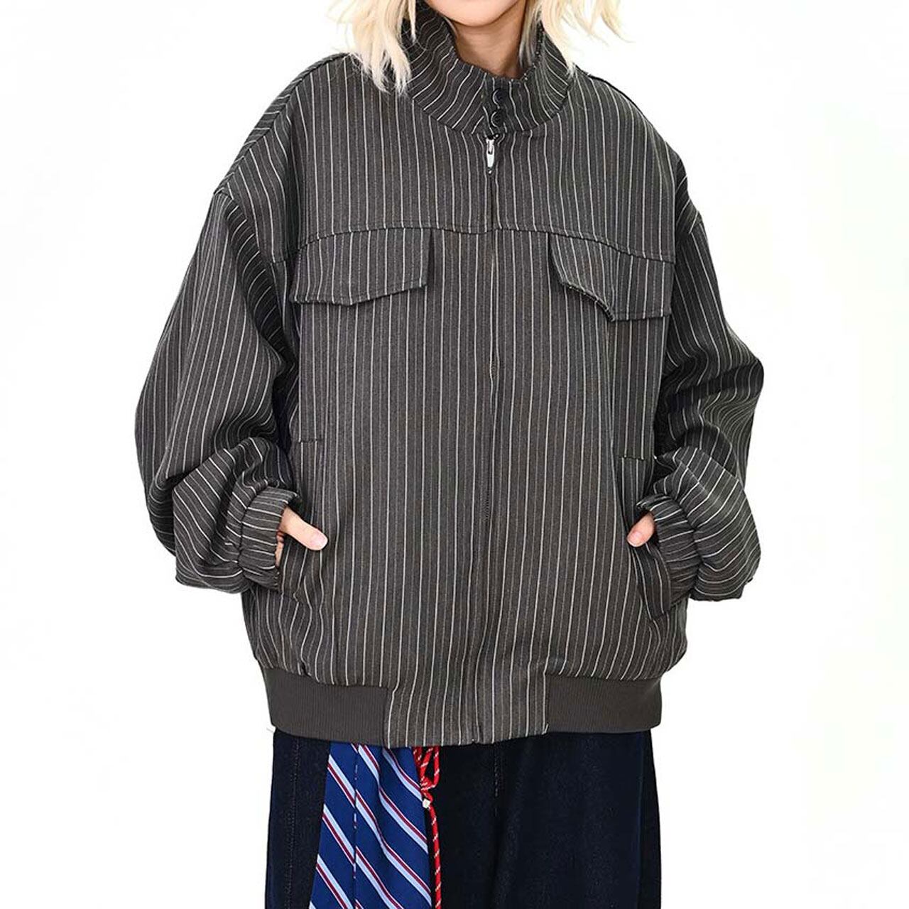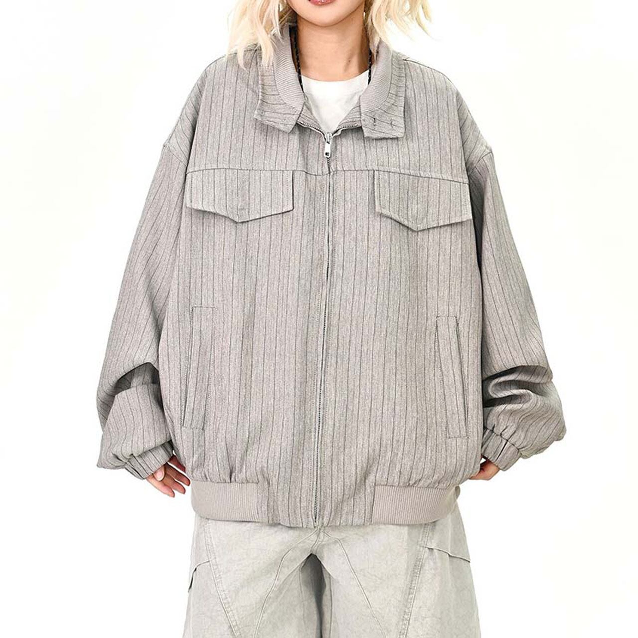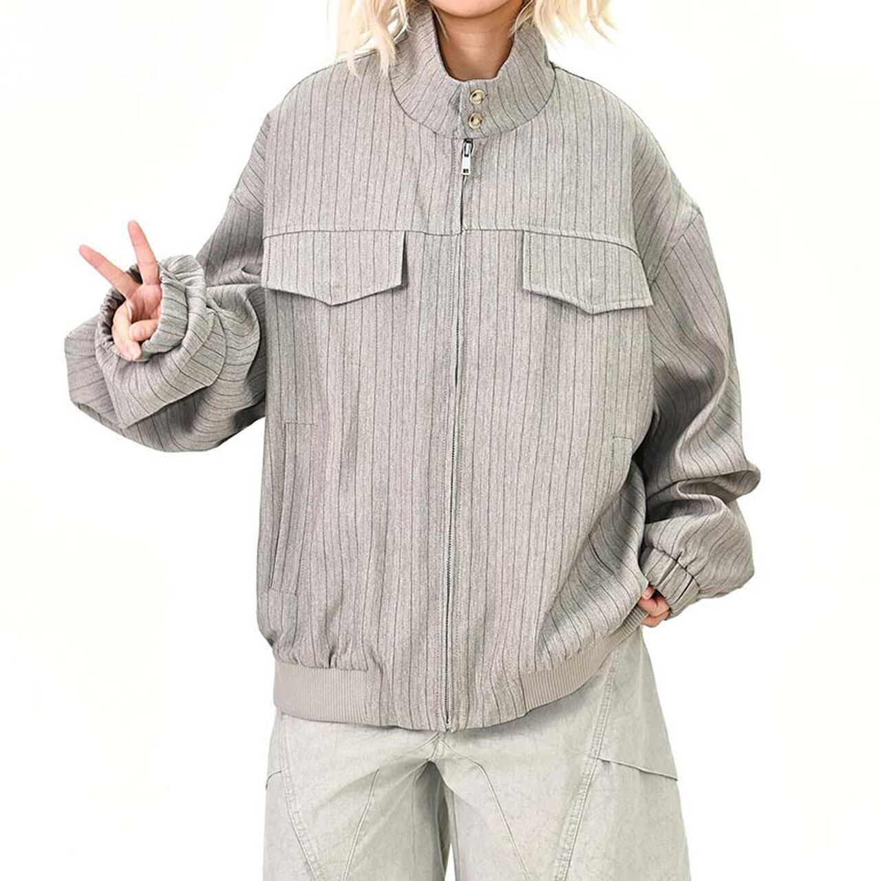 ピンストライプユーティリティジップブルゾン 2col R01464