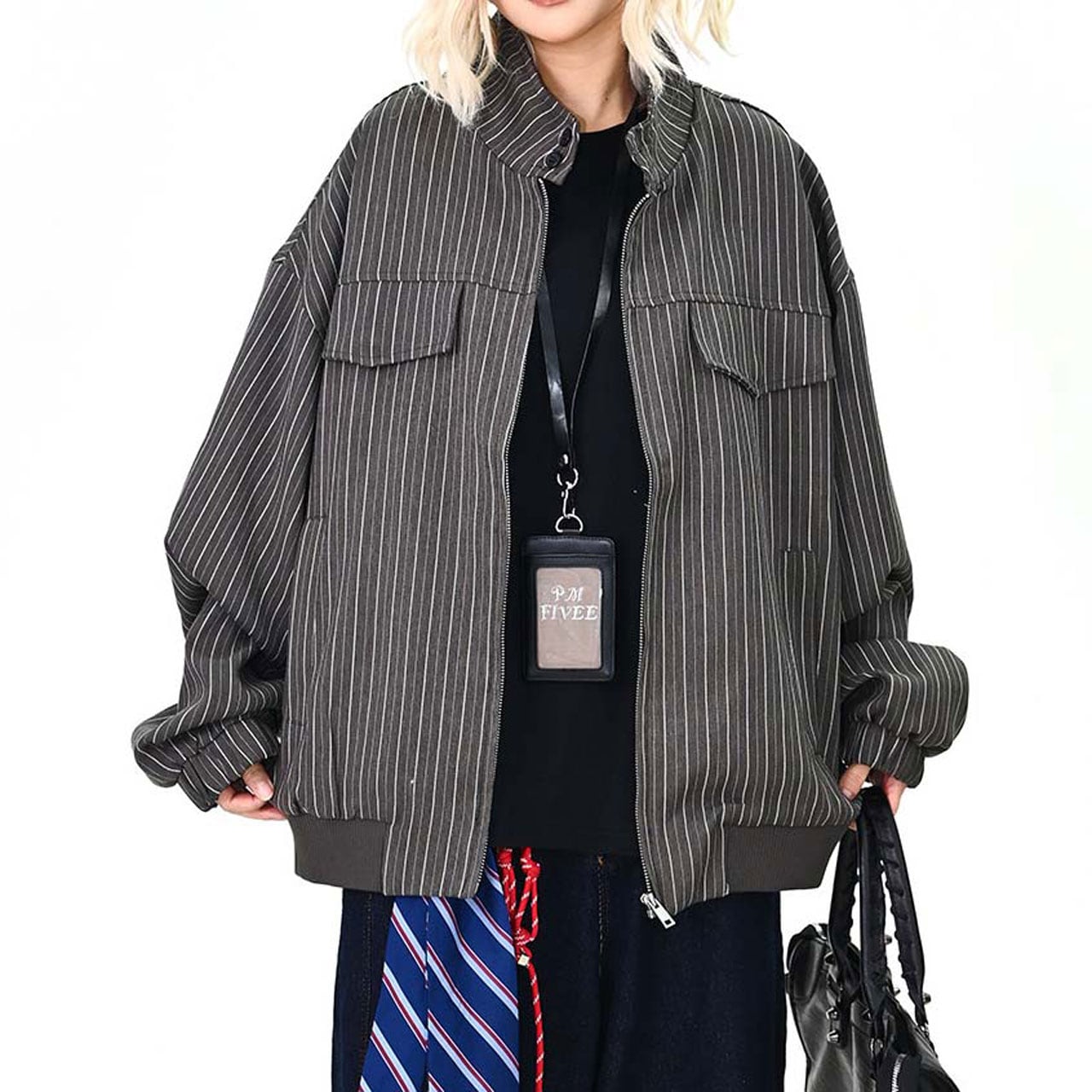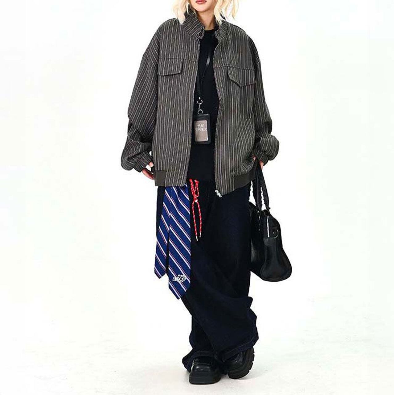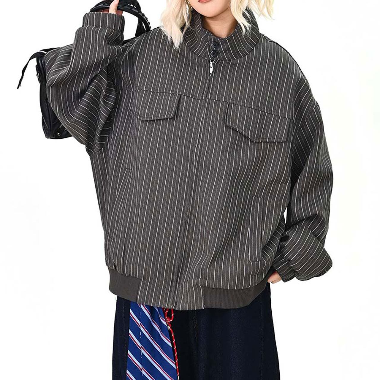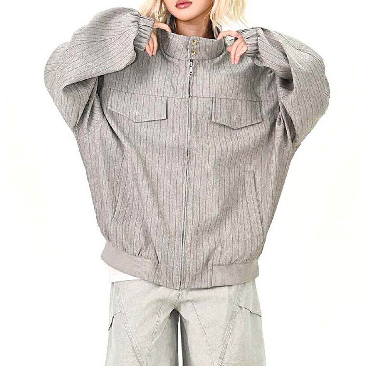 ピンストライプユーティリティジップブルゾン 2col R01464