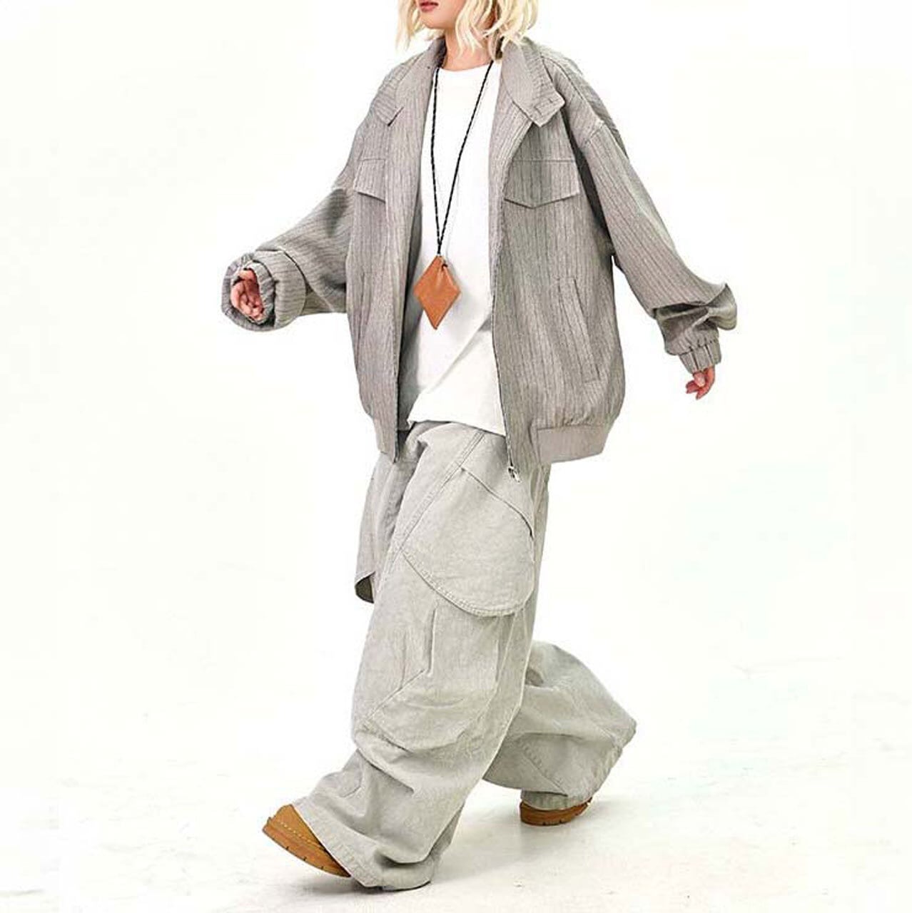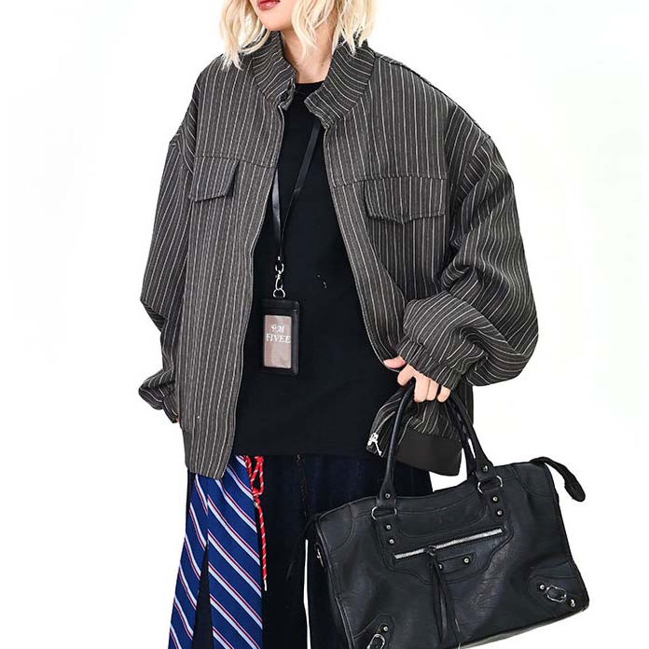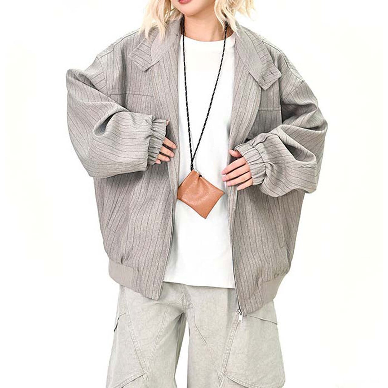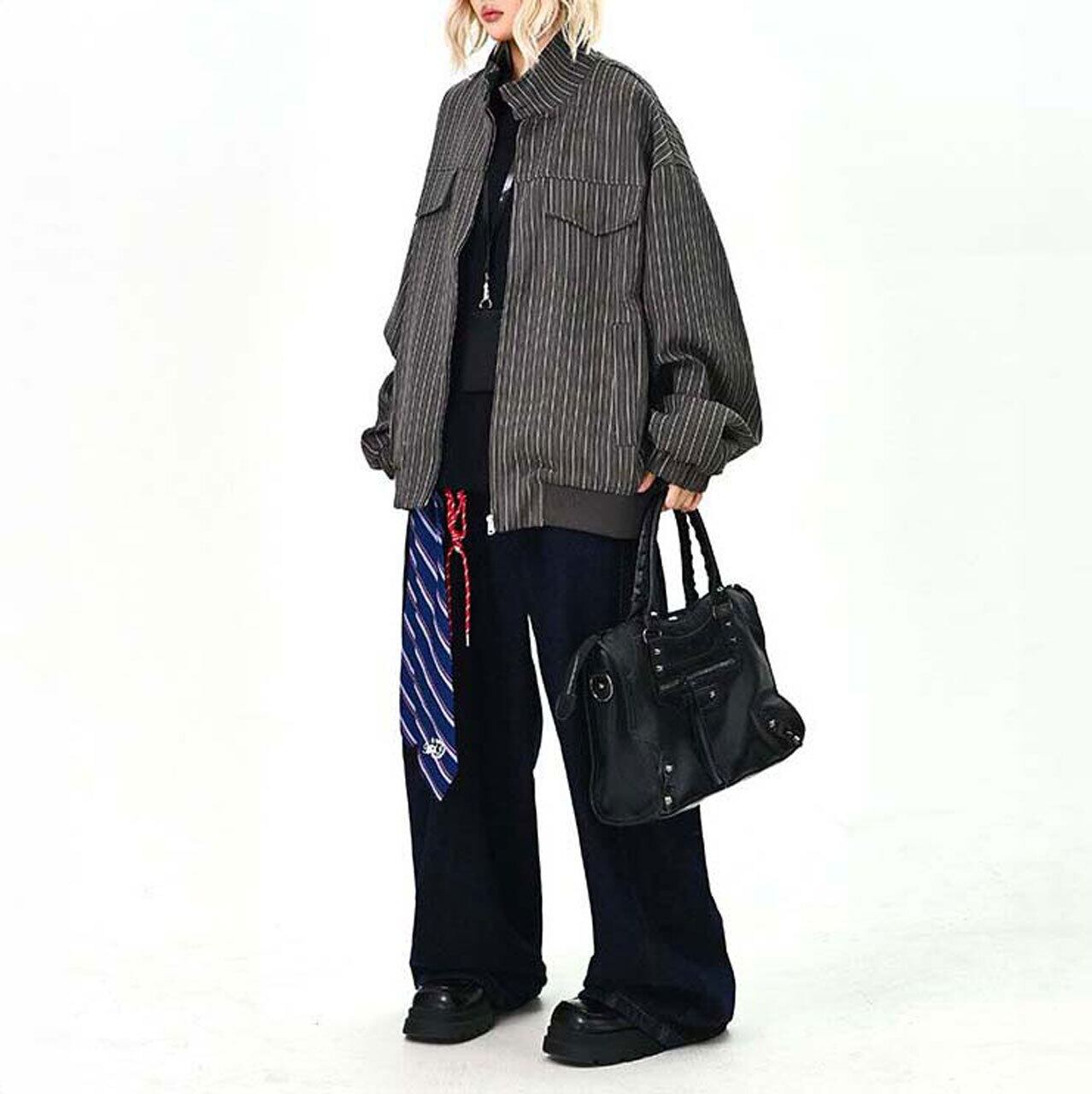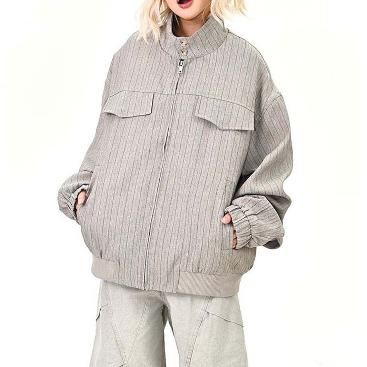 ピンストライプユーティリティジップブルゾン 2col R01464
