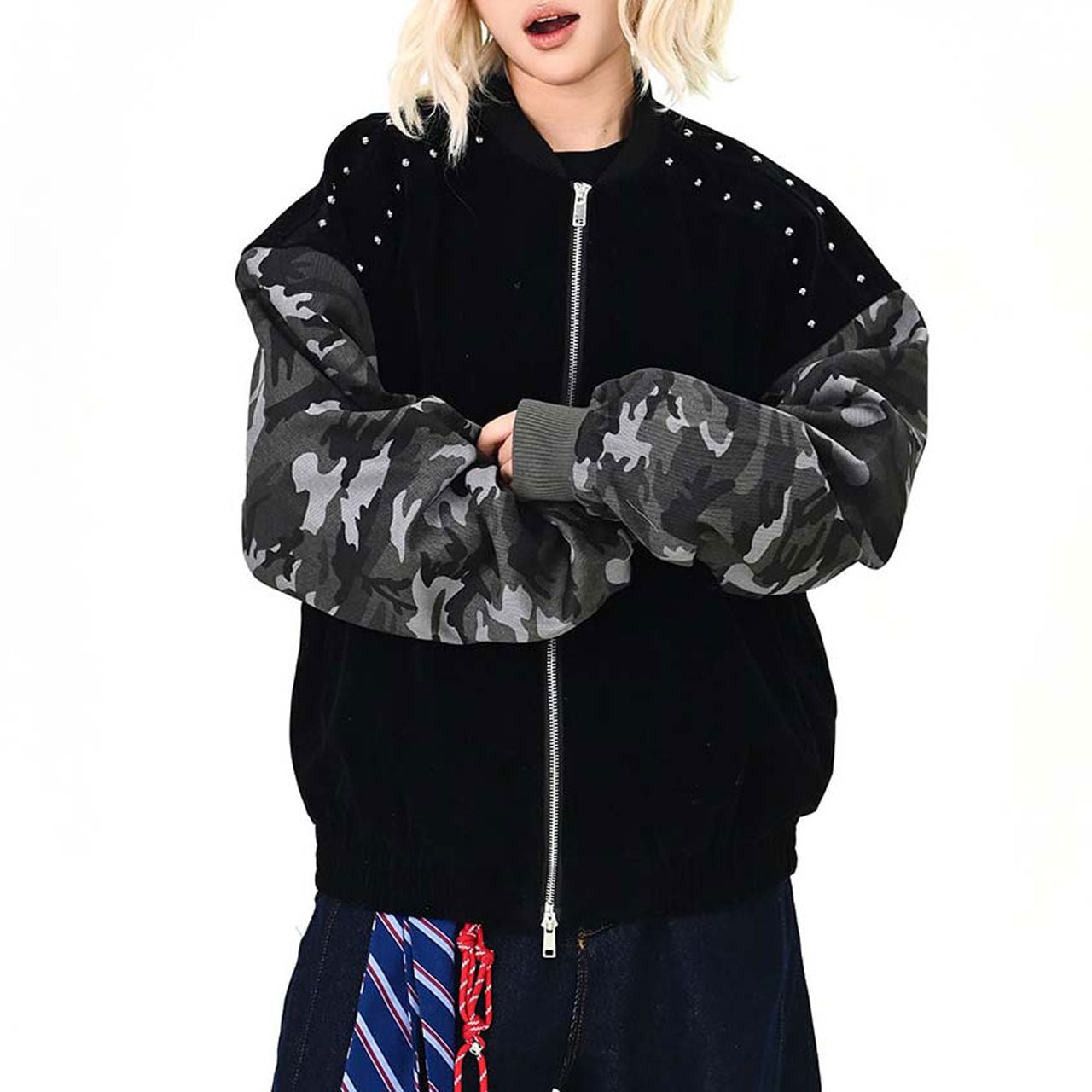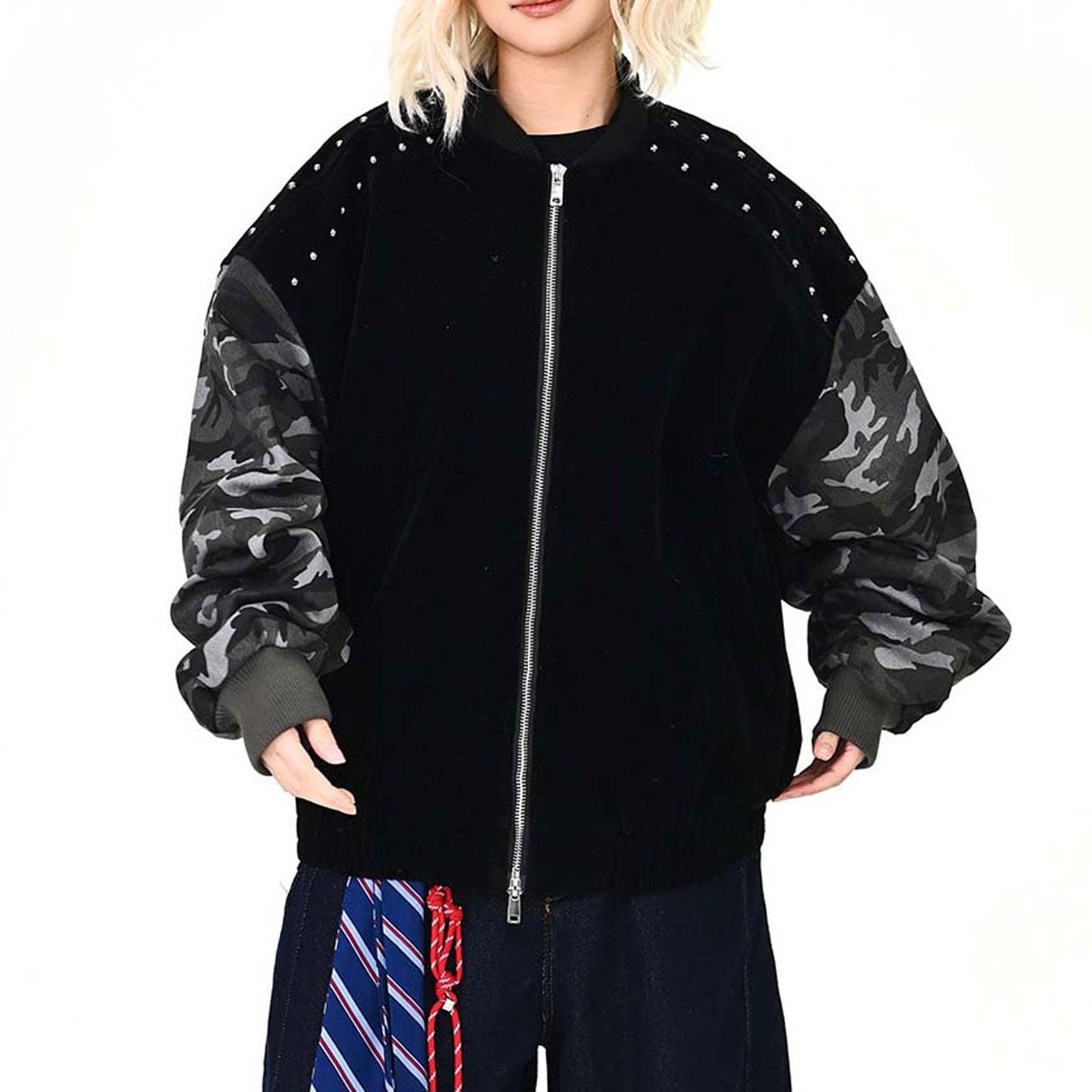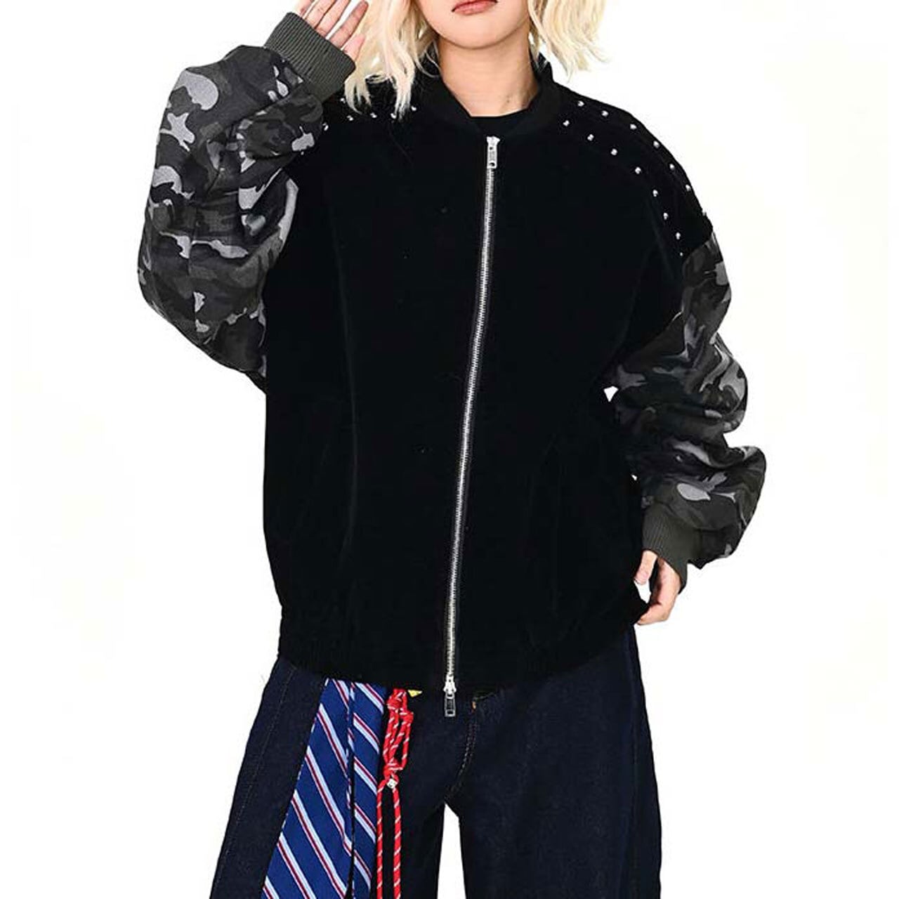 カモフラスタッズミックスブルゾン R01468
