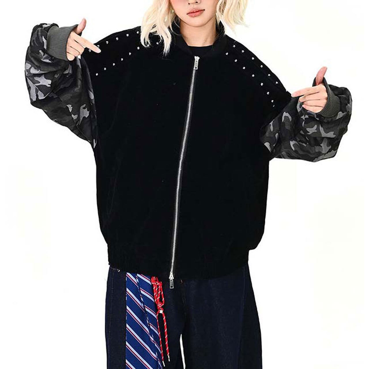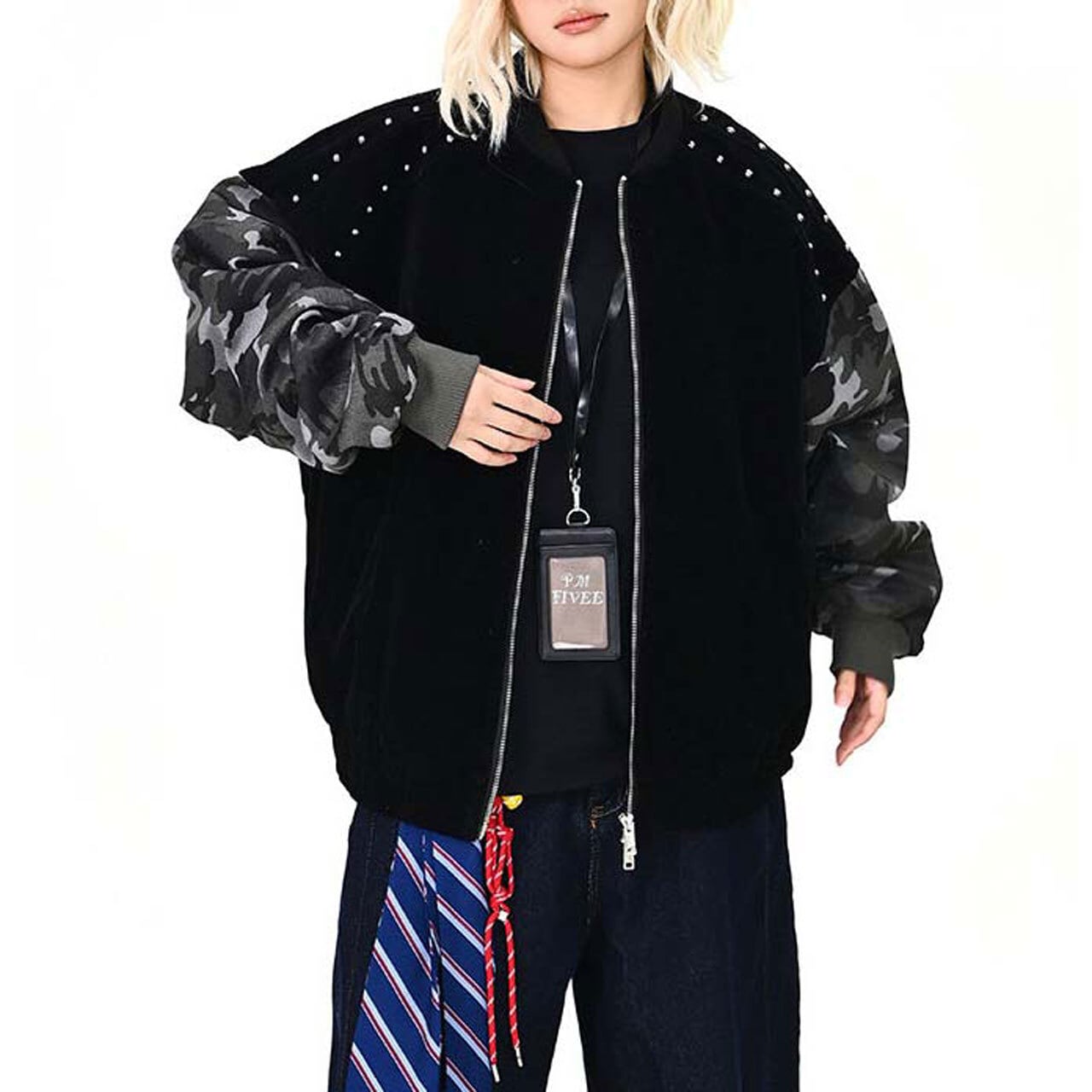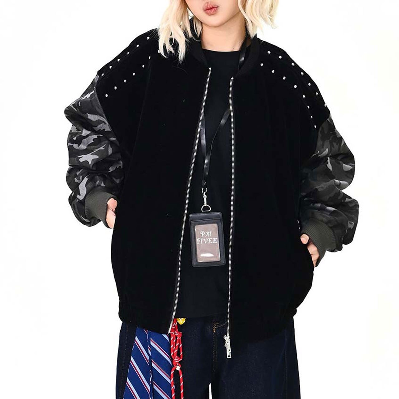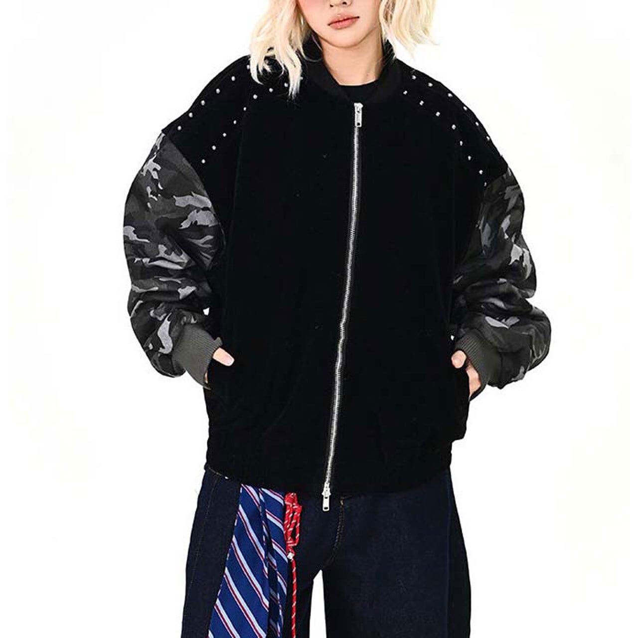 カモフラスタッズミックスブルゾン R01468