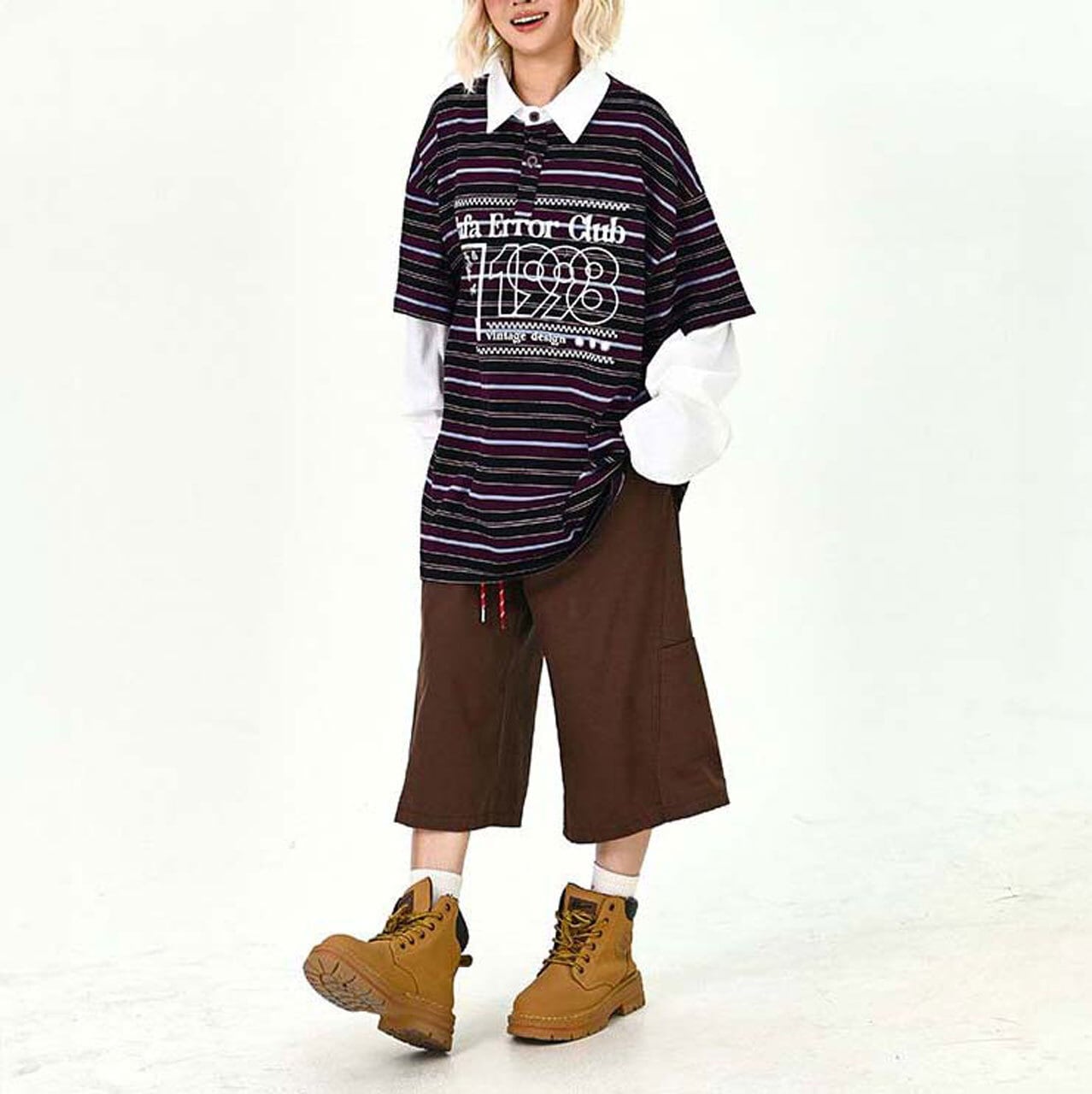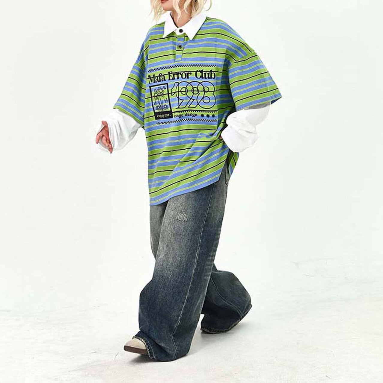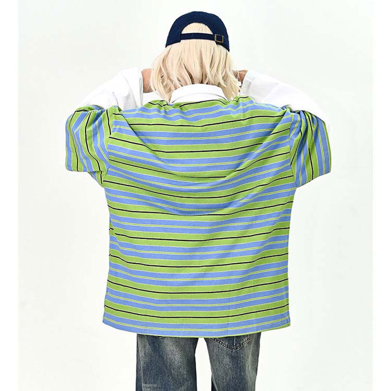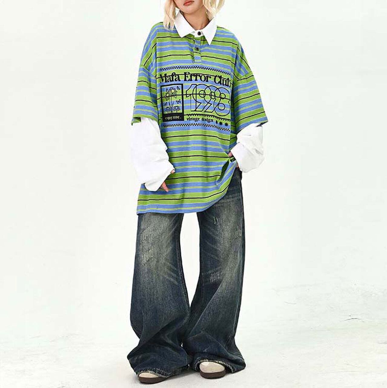 デニムやワイドパンツを合わせて、ストリート感のある着こなしがおすすめ。