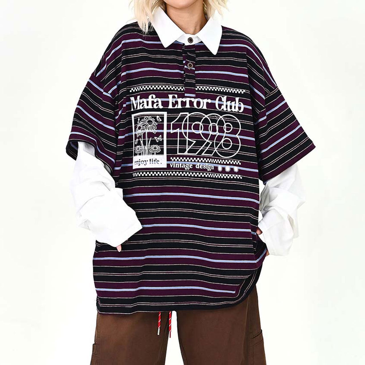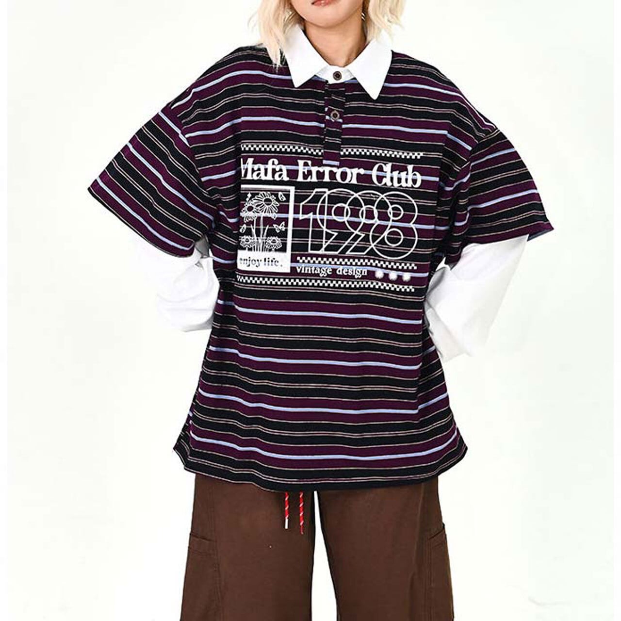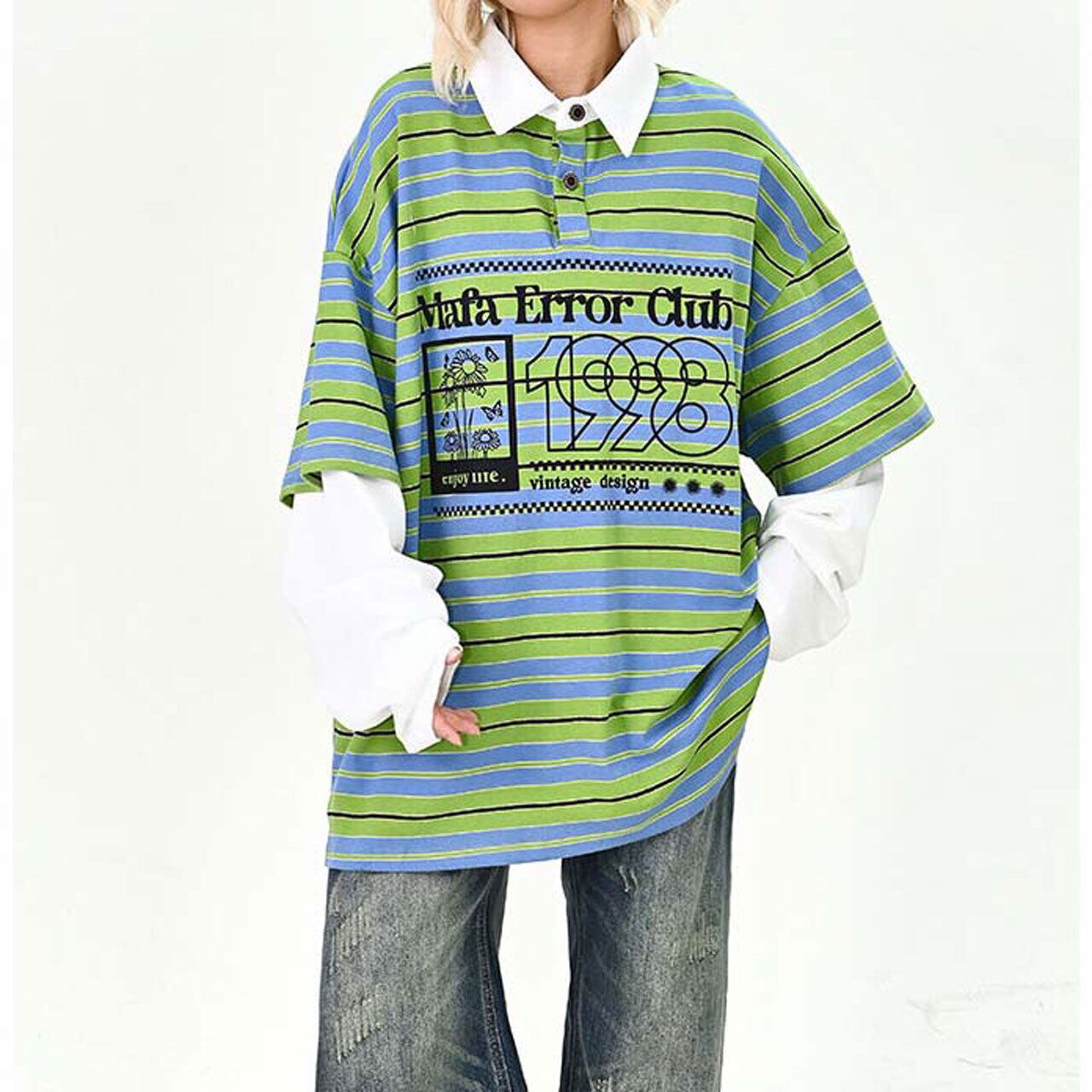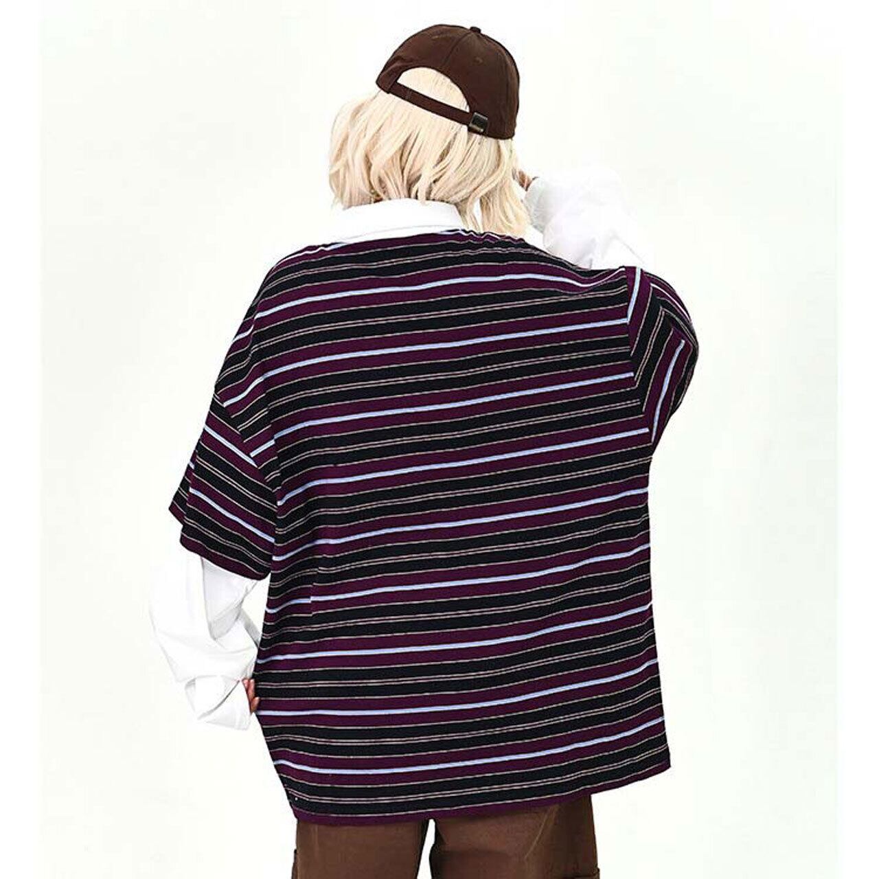 ポップなボーダー柄にロゴプリントを重ねた、存在感たっぷりのトップス。