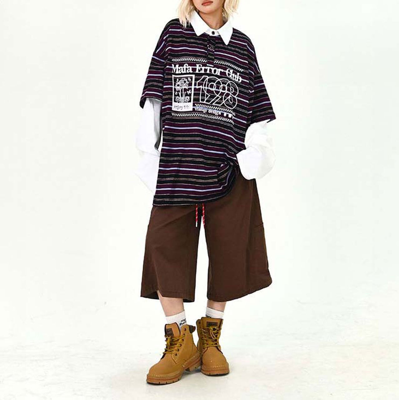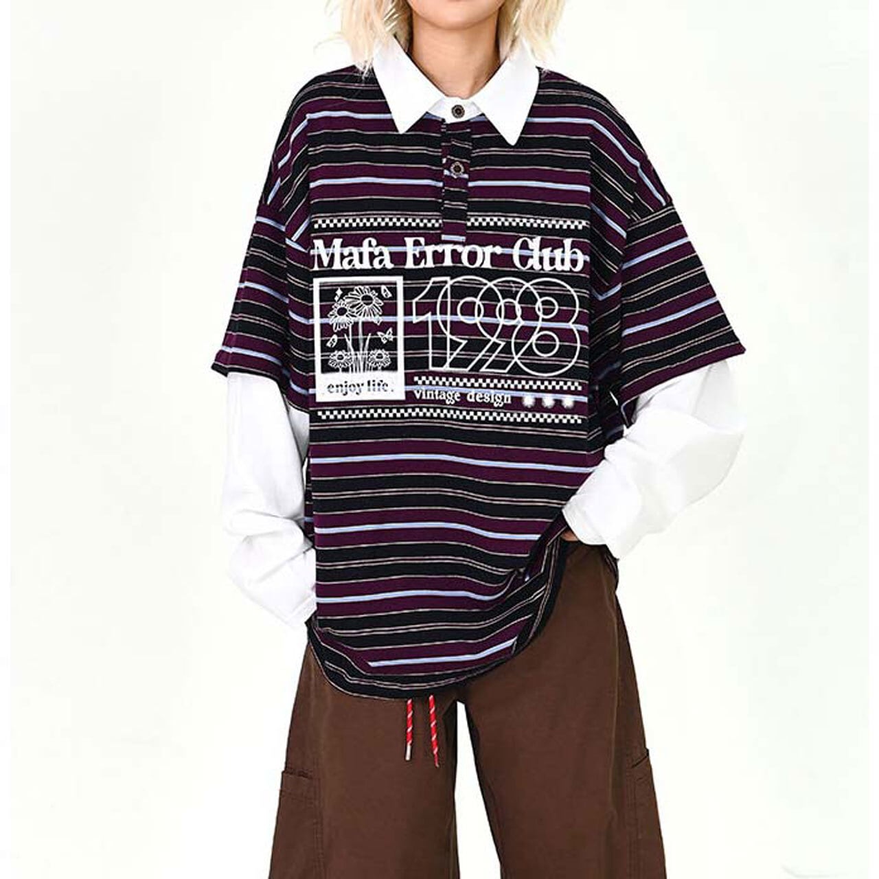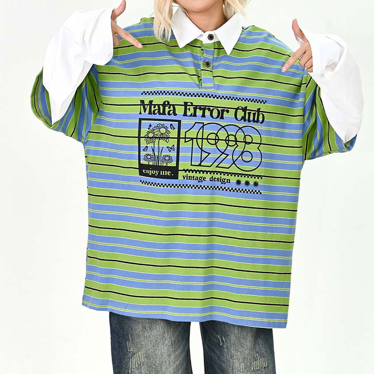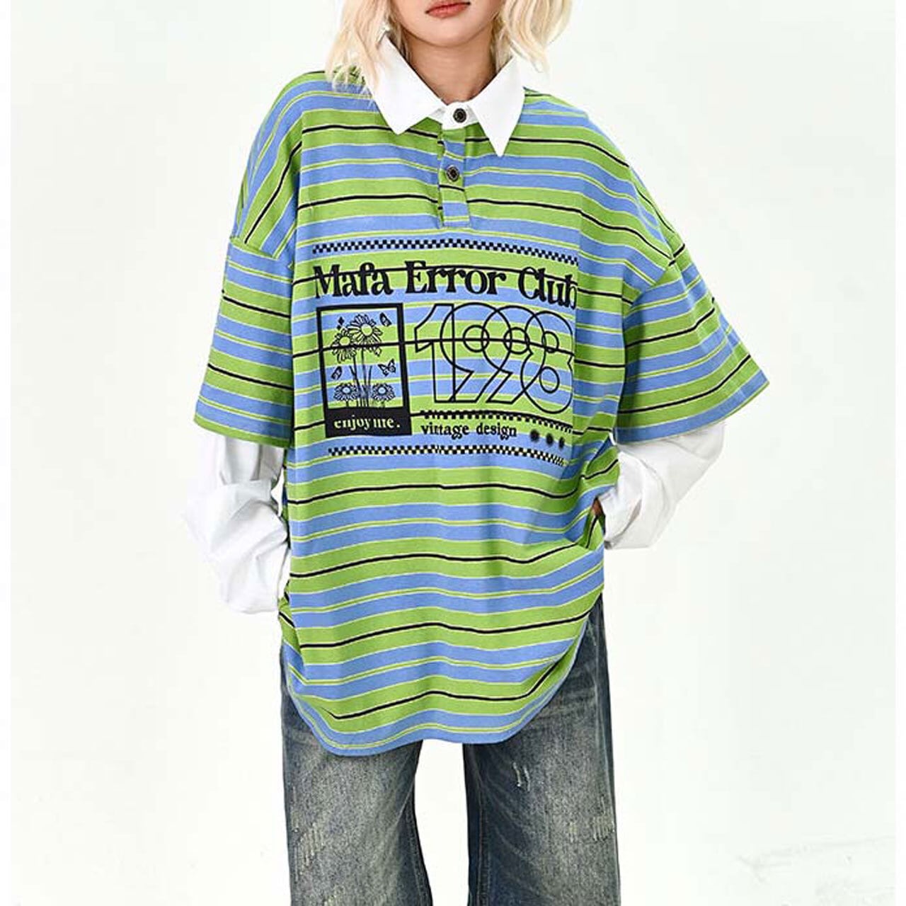 ポップなボーダー柄にロゴプリントを重ねた、存在感たっぷりのトップス。